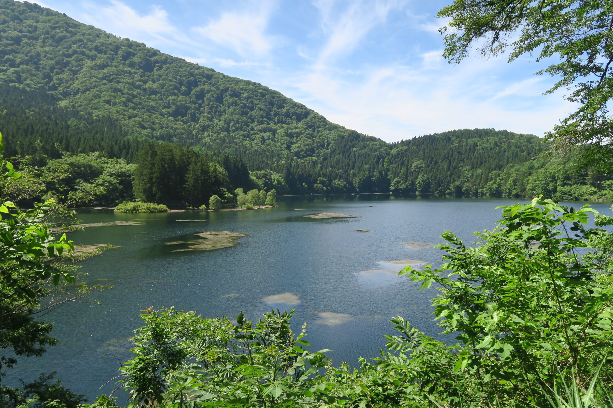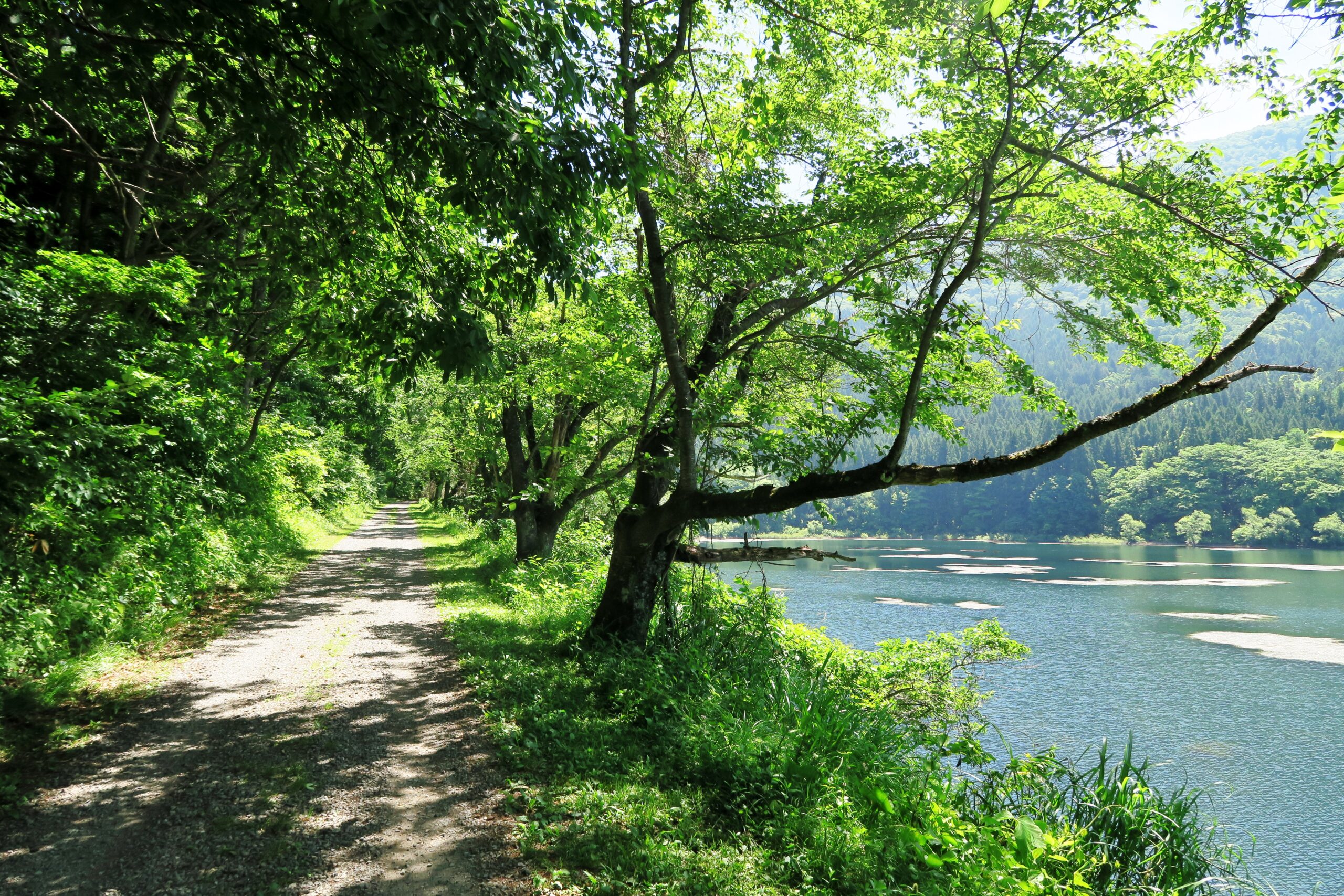 さらに50年生くらいの杉の林を未舗装の小道が縫っていて湖を一周します。林の中は約1300m、夏はひんやりとして森林浴にぴったりです。