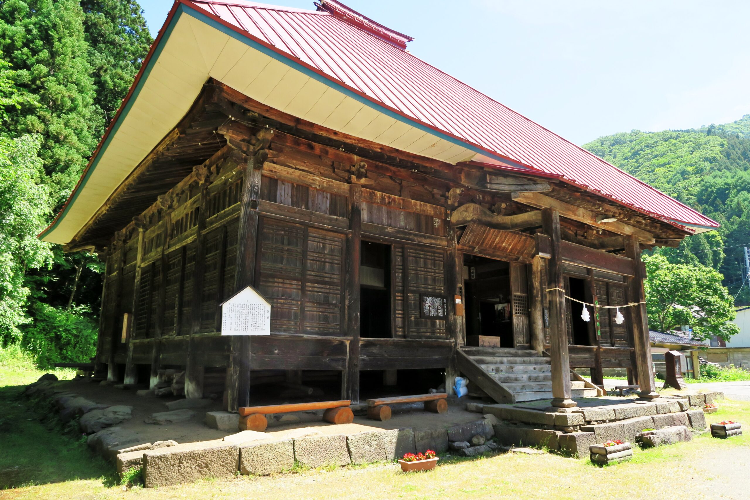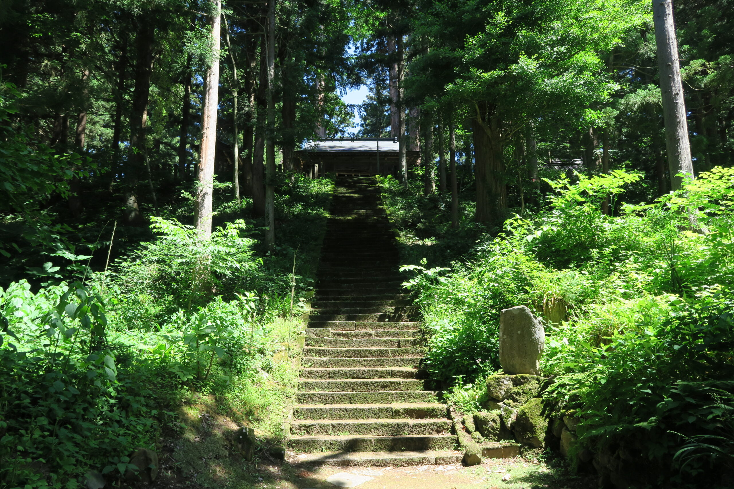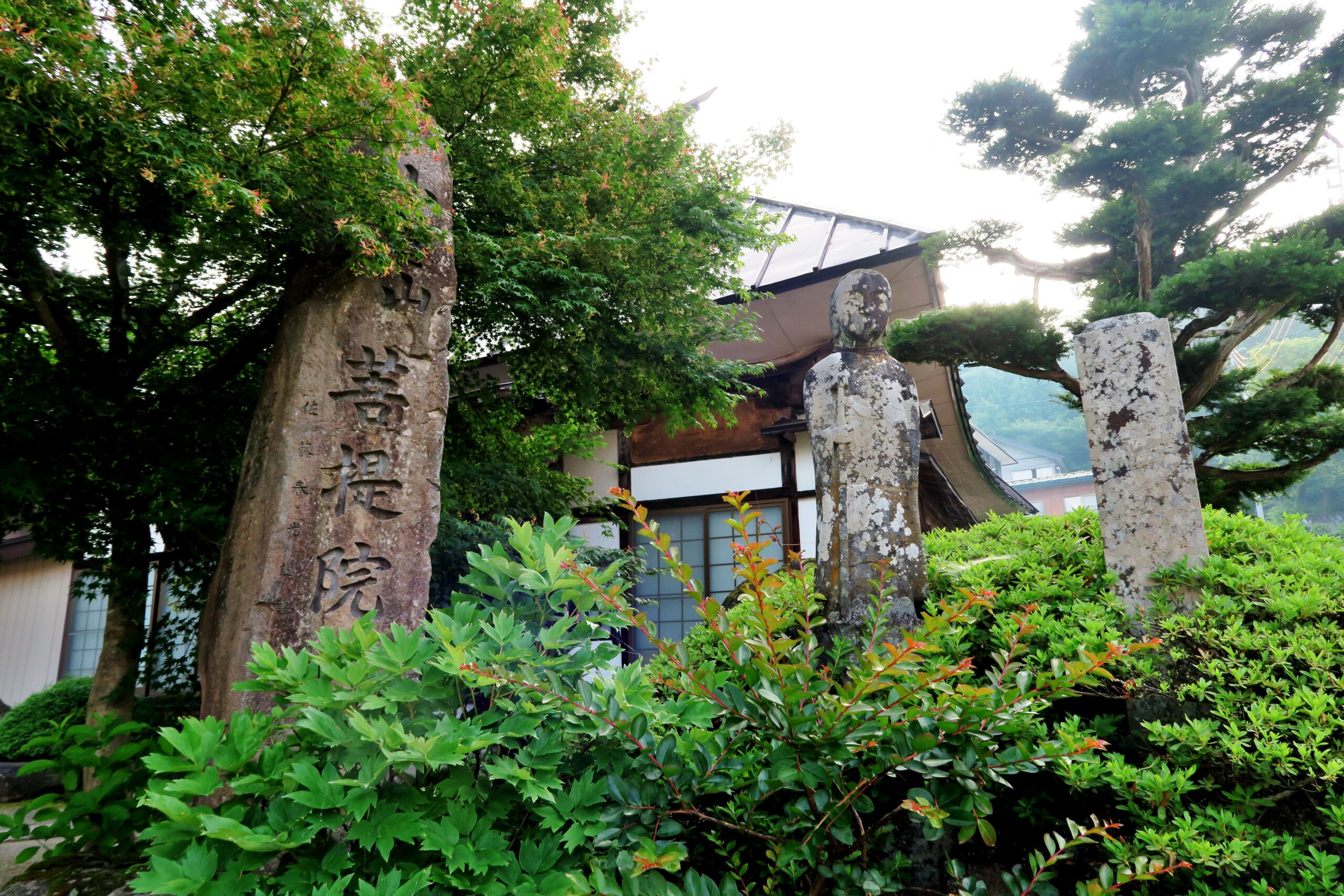 さらに坂道を150m上ると、かつては小菅神社の別当寺である小菅山元隆寺大聖院の一坊・桜本坊だった「菩提院」があります。川中島の戦いの兵火により焼失しましたが上杉氏により再建、享保年間に法印俊栄によって中興開基されたといい、真言宗豊山派の寺院で大日如来を本尊としています。