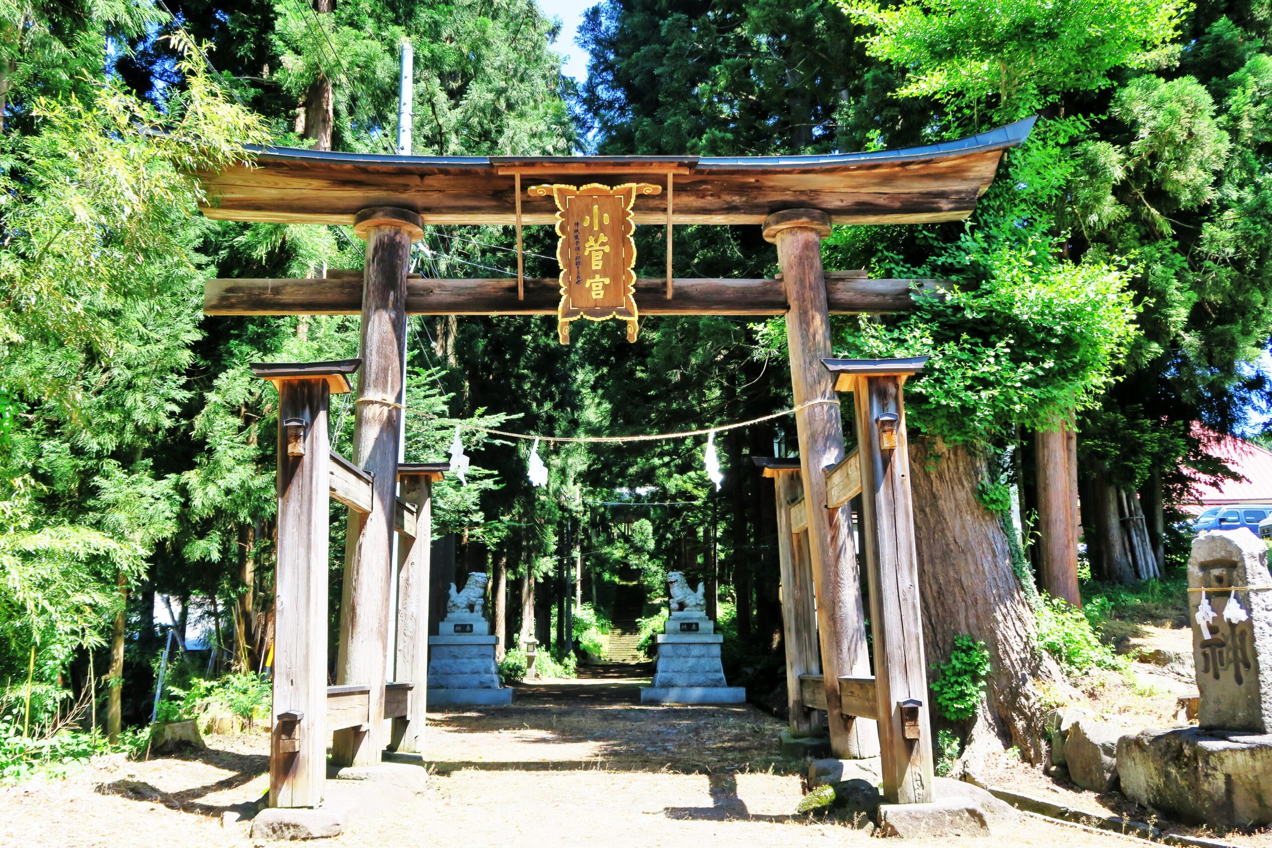 三の鳥居から50m程入って二人で写真を撮れば、映画「阿弥陀堂だより」のワンシーンそのものですよ。(寺尾聡と樋口可南子になったつもりでいかかですか)小菅神社の参道にそびえ立つ樹齢300年の杉を見上げ、昔話に耳を傾けながら悠久の時の流れに身を置けば、心はじんわりと満たされてくれます。