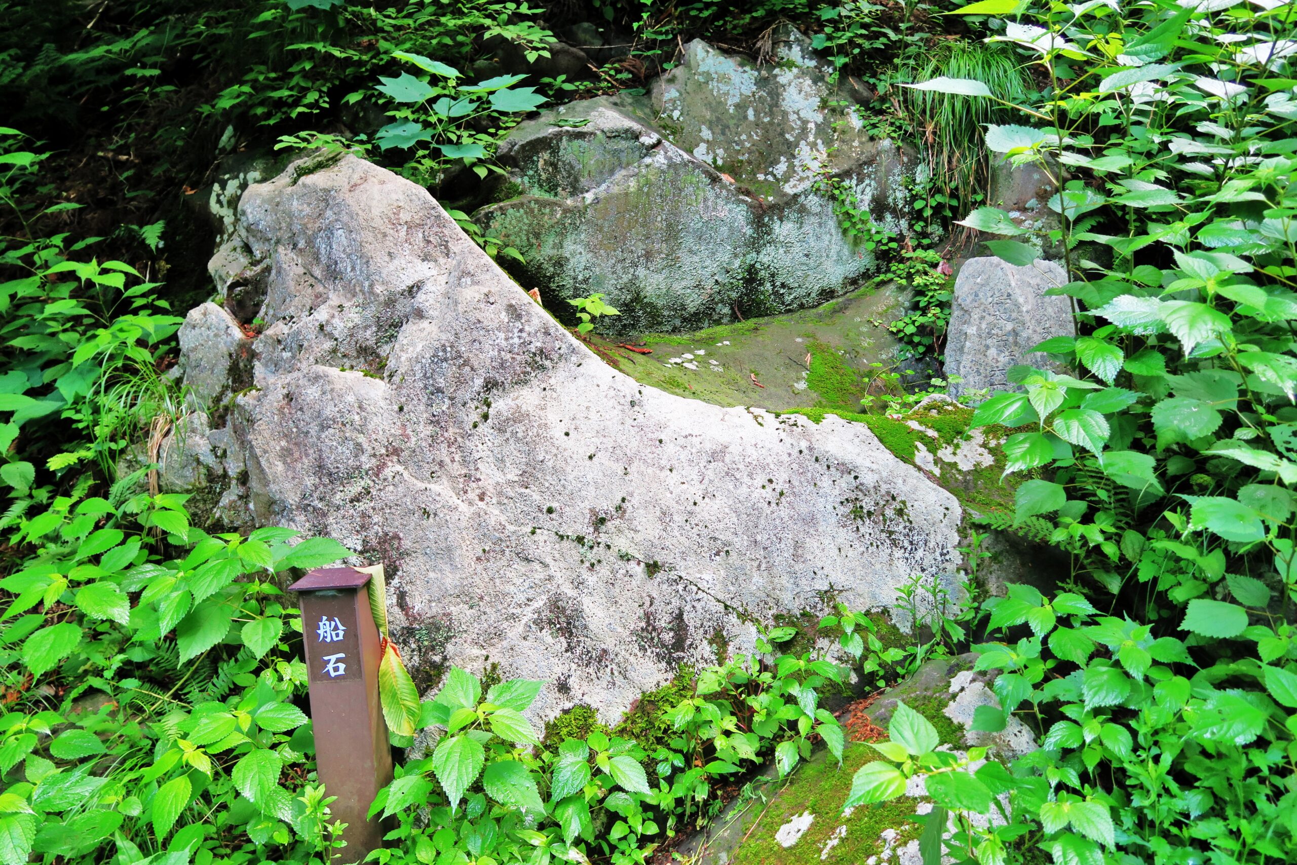 ちょうど行程の半分を過ぎたところに大海の浪頭に船が浮かんでいるようだと言われた「船石」があり、