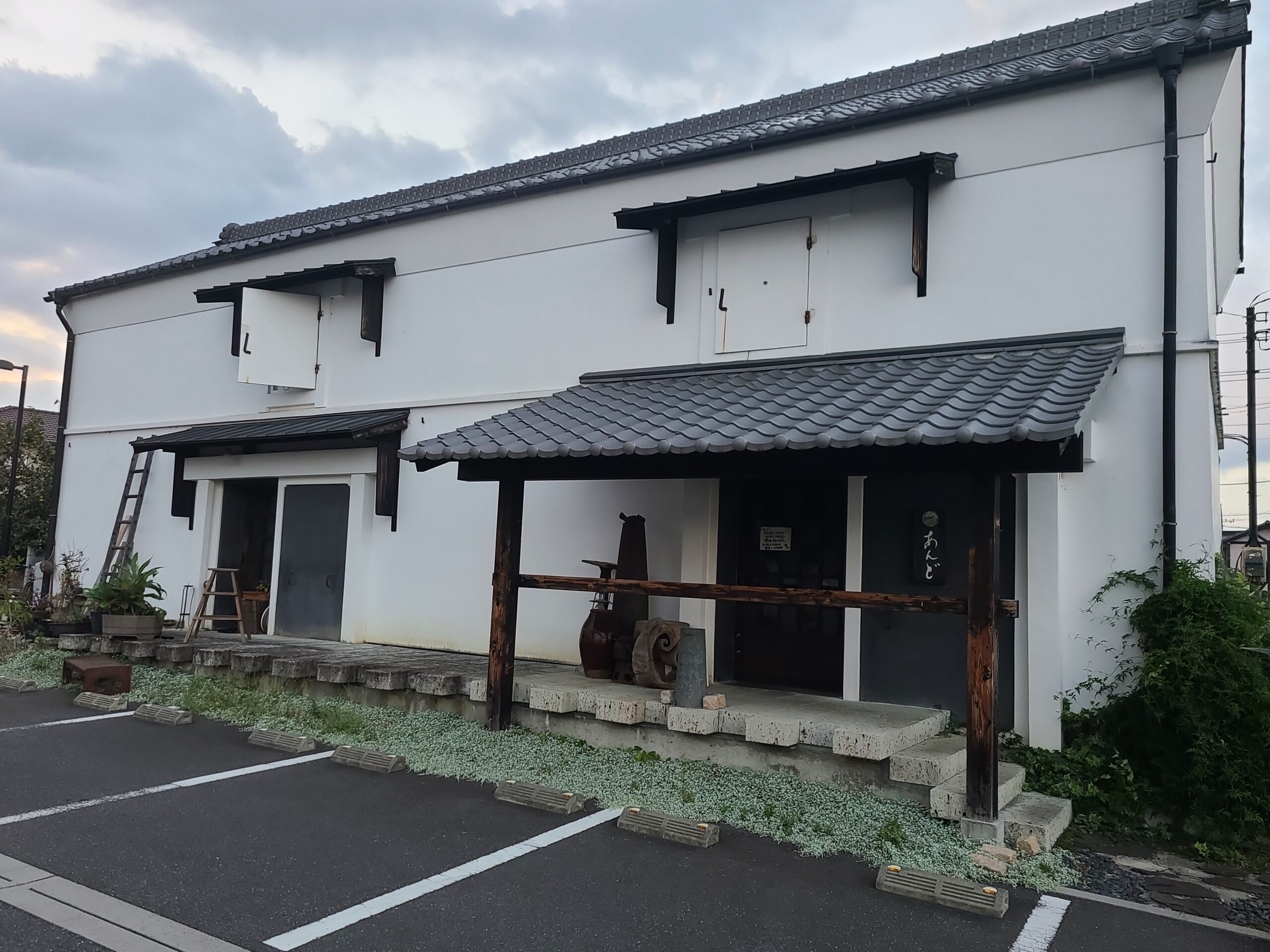 これは江戸時代、石田三成の水攻めに耐えた忍城の城下町整備が行われた際、商店は表通りに面した幅に応じて課税されたため、通りに面する幅を狭く取り、奥に細長く敷地をとる商店が多い短冊形の街並みが形成されたことに由来します。この細長い土地の表から順に店舗や住宅が築かれ、中庭に足袋工場を建設し、裏庭に足袋蔵は築かれました。江戸時代に城下の町人町だった行田には鴻巣から館林に抜ける日光脇往還の宿場町となったため、馬の世話を行う裏庭と裏庭に通じる路地が家と家の間に設けられていて、明治時代になって不要になった馬小屋や裏庭の位置に足袋工場や足袋蔵が建設されたのです。写真の奥貫蔵は元「ほうらい足袋」「栄冠足袋」の元奥貫忠吉商店が大正~昭和初期に建設した大型の土蔵造りの足袋蔵です。現在はそば店(あんど)として再利用されています。かつては周辺に足袋工場や足袋蔵が立ち並んでいましたが、その大半が姿を消してしまいました。