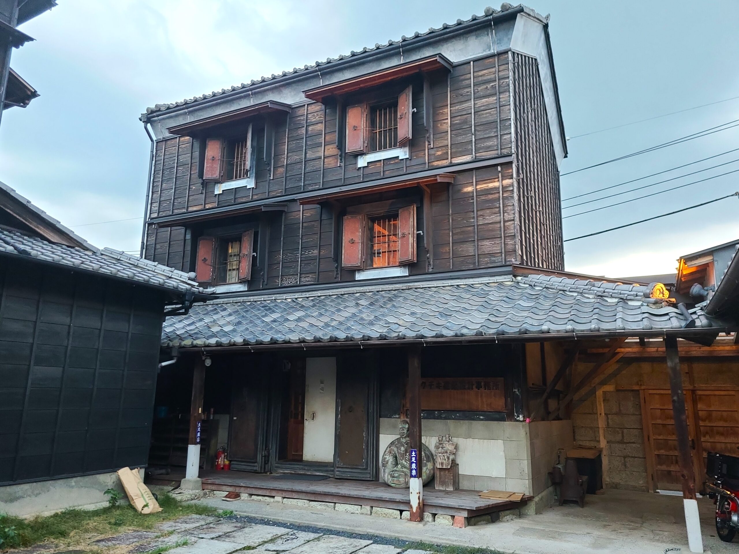 市内唯一の3階建ての蔵など現在はCafé閑居、足袋蔵ギャラリー門、パン工房KURAとして大半が再利用されています。行田市初代市長の私邸を利用しています。