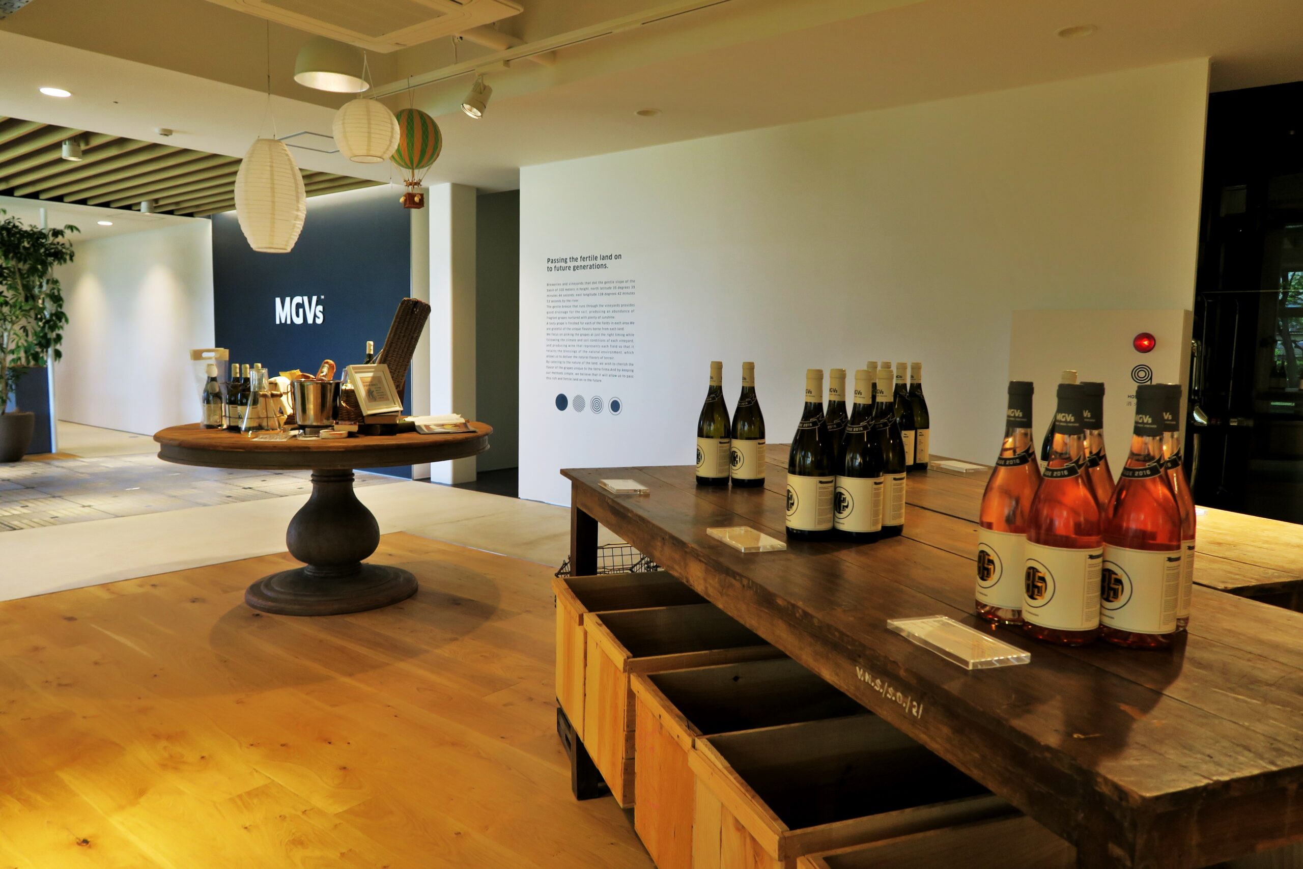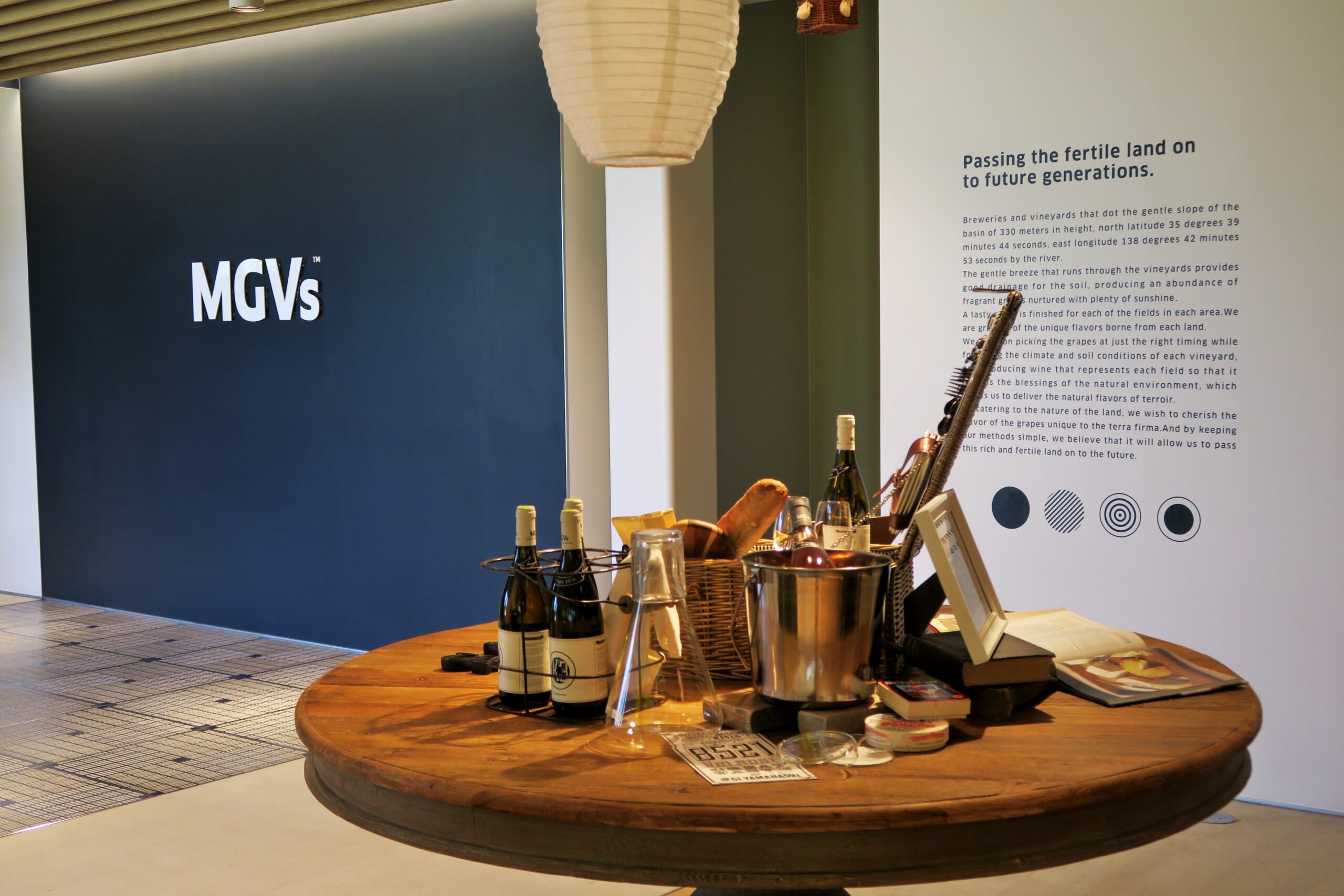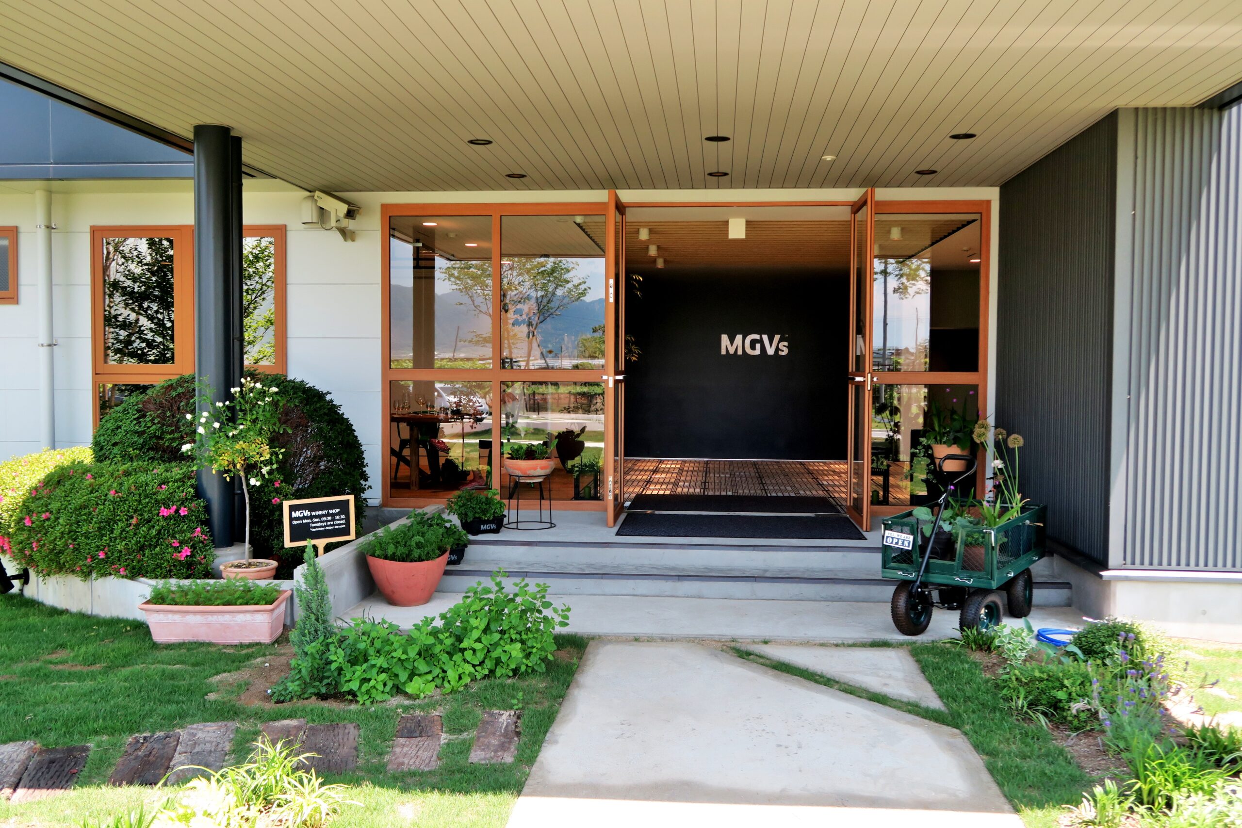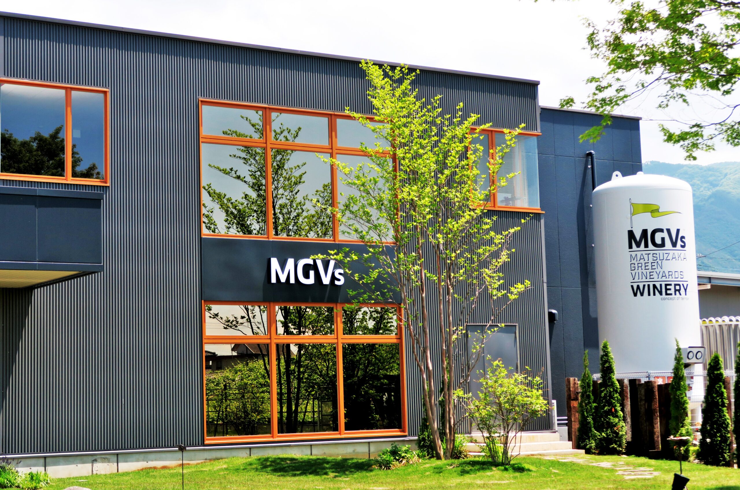 中央自動車道勝沼ICを下り、国道20号より藤井交差点を勝沼市内に入り、日川まで道なりに進むこと約3km、車で6分程走らせると、民家と果実畑が広がるのどかな風景の中に突如現れるのが、米国のシリコンバレーを思わせるような広大な緑の絨毯、ガルバリウム鋼板に覆われた黒い建物、そして「MGVs」の文字。緑の絨毯に「MGVs」の文字が躍るスタイリッシュなワイナリーなのです。