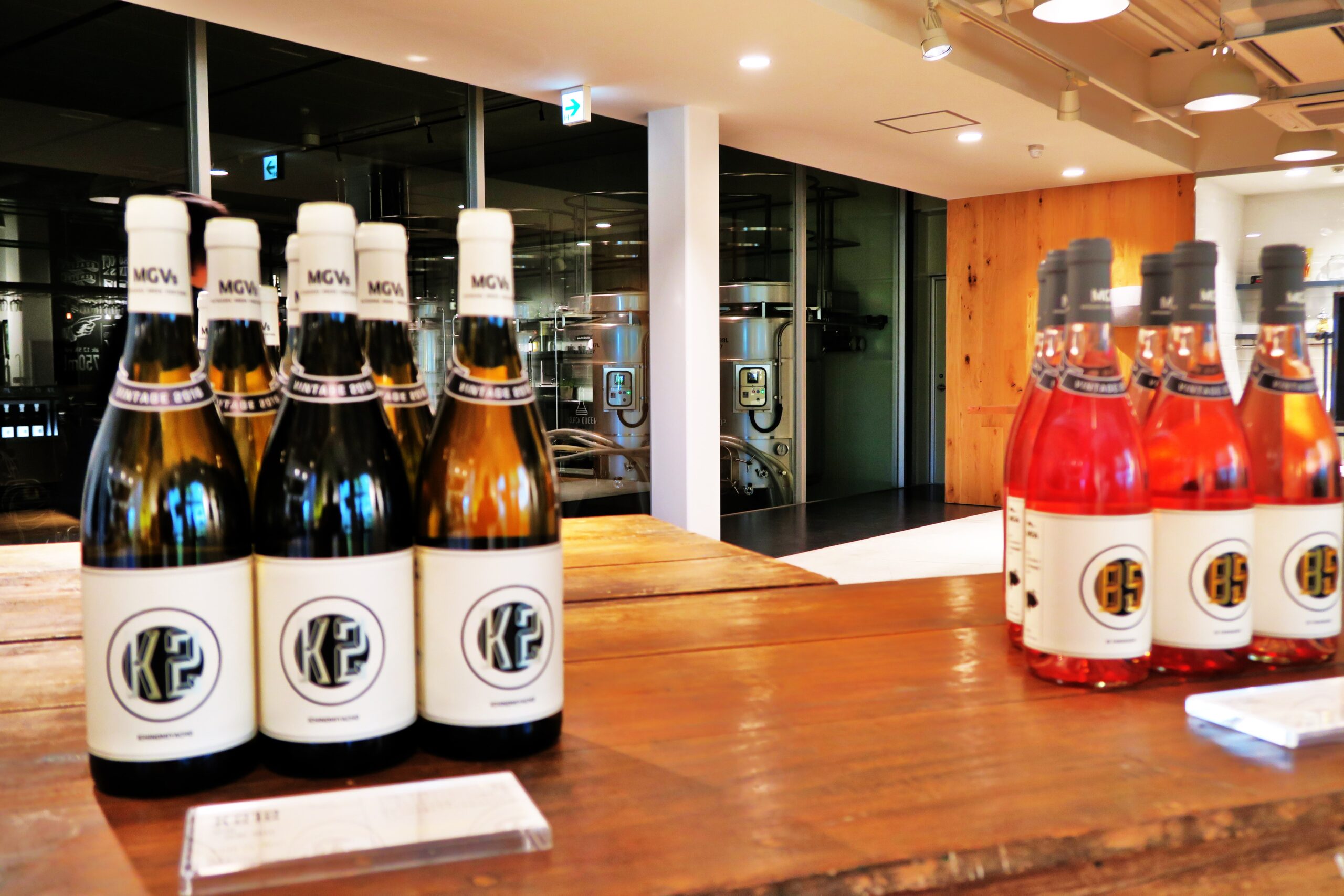 ワイナリーの名称や施設の内装、ラベルのデザインといった一連のブランド構築は、アートディレクター・デザイナーとして活躍するMTDOの田子 學さんを起用しています。お洒落なワインバーようなカウンターでガラス越しに醸造設備を眺めながらテイスティングができるほか、ゆったりとワインを選んでショッピングを楽しめるように居心地のよい店内になっています。