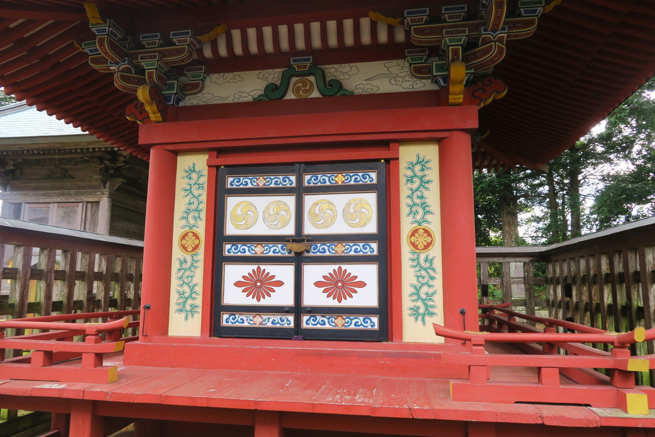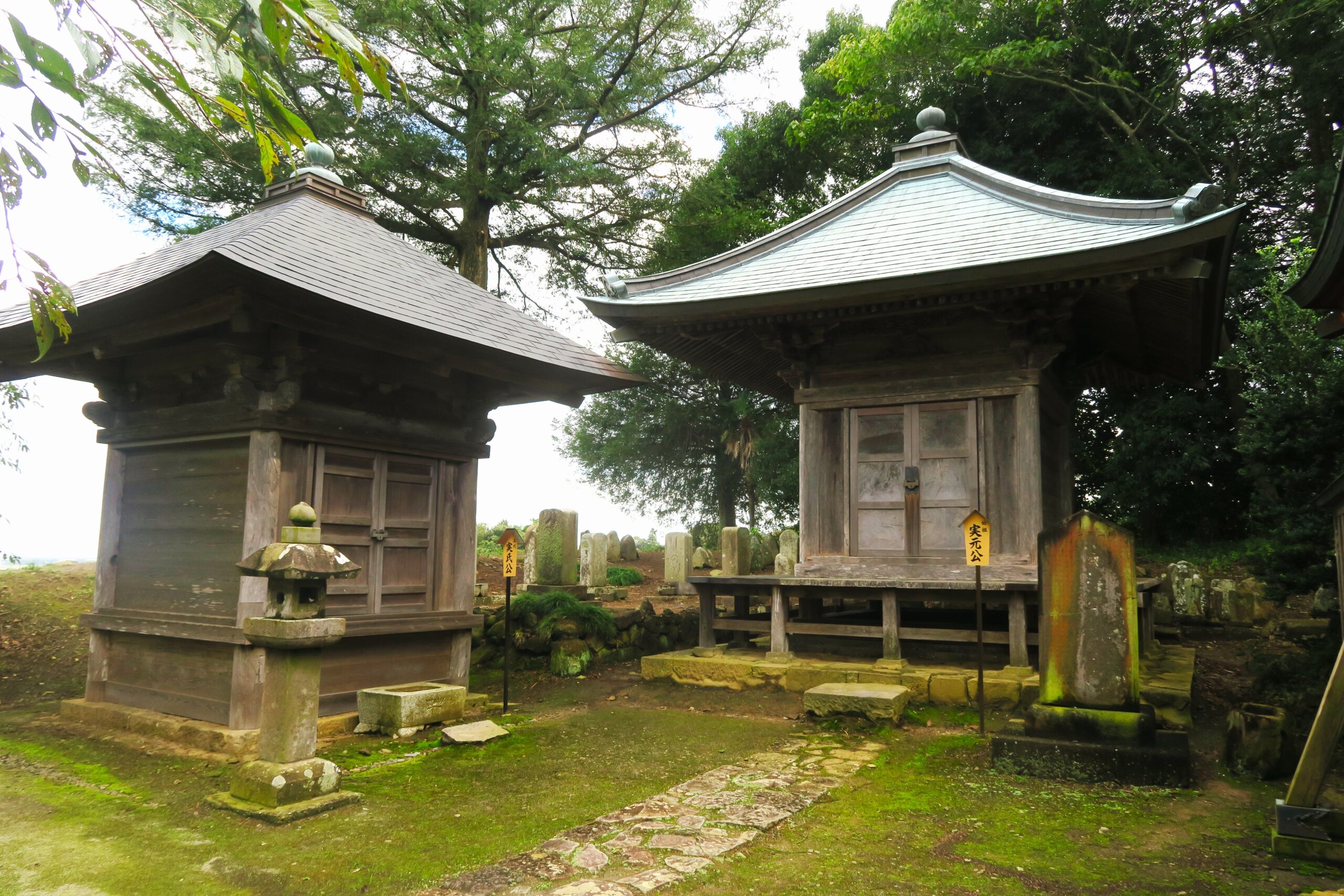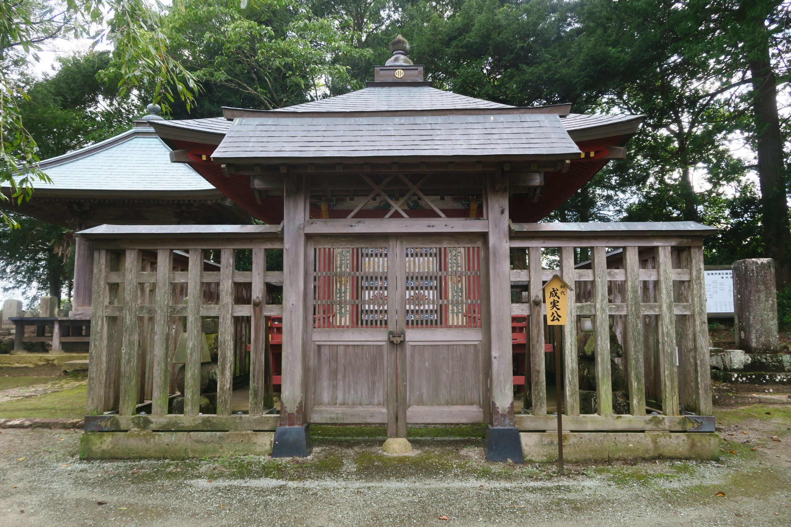 その傍らに成実の父実元、5代実氏の霊屋が並んでいます。霊屋のある場所は、境内の中でもいちばん眺めのよい場所で、そこに立つと町全体がきれいに見渡せます。