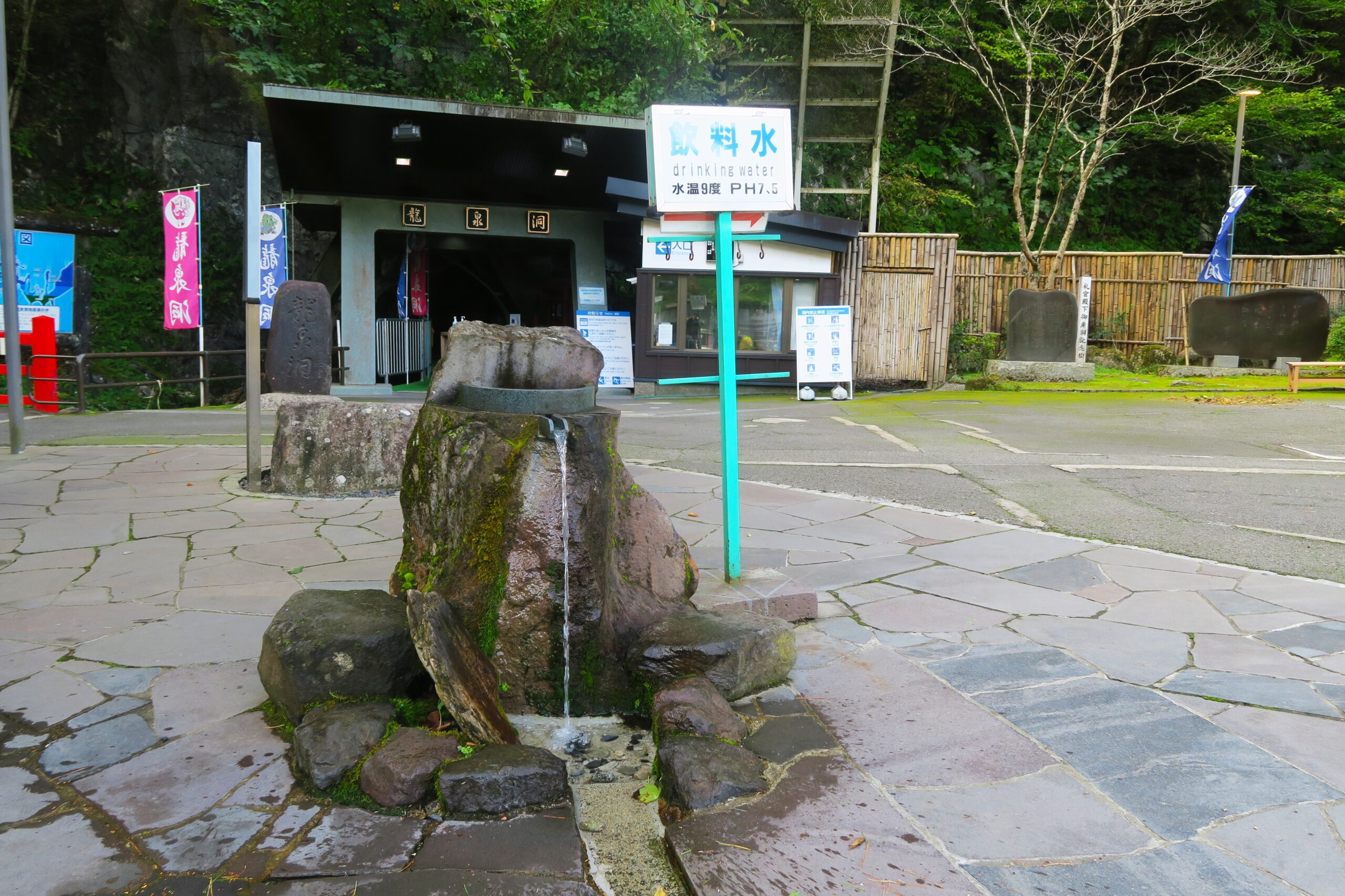 亀岩を左手にとり往路とは違う道を進みます。一口飲むと3年長生きするという伝説のある「長命の泉」