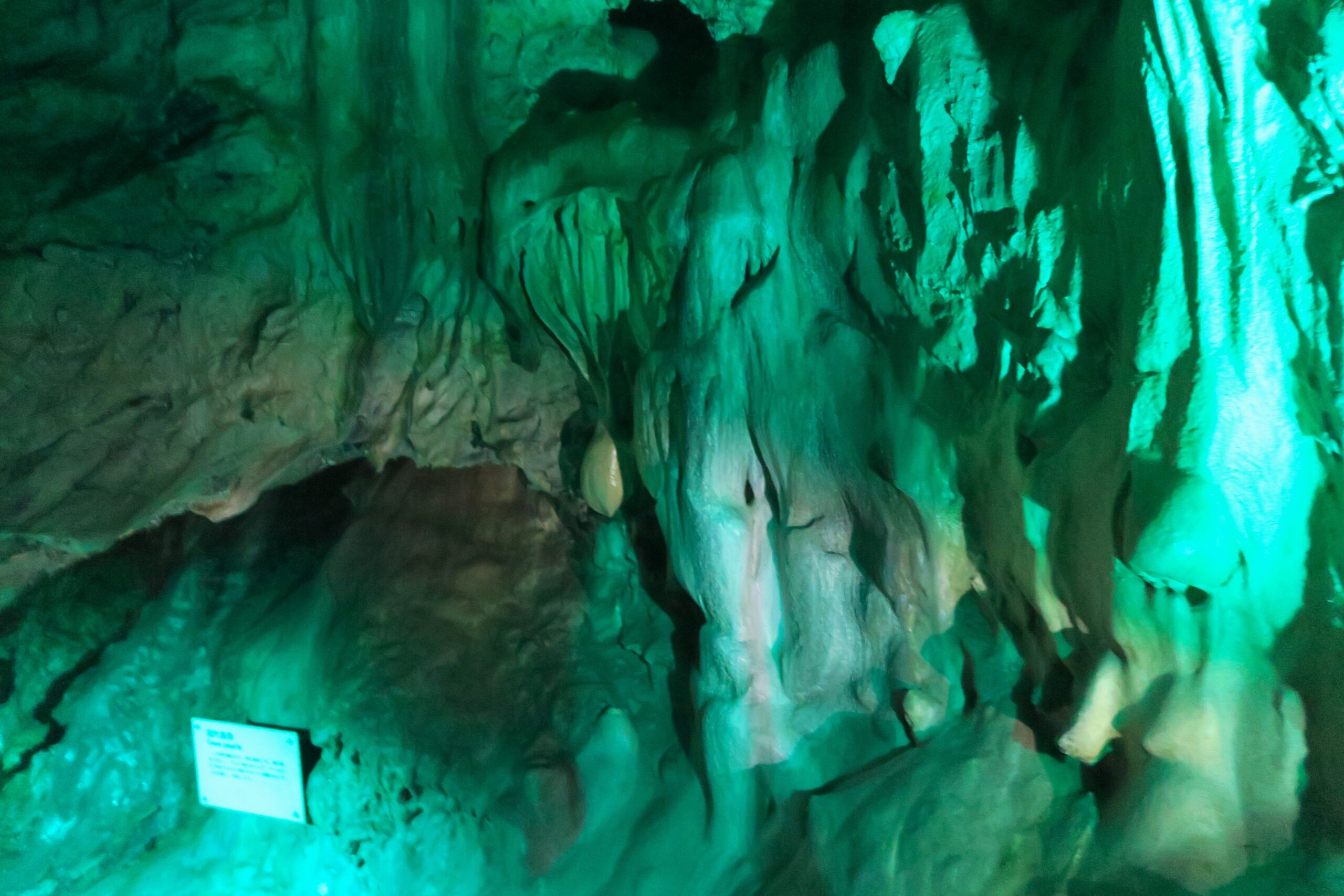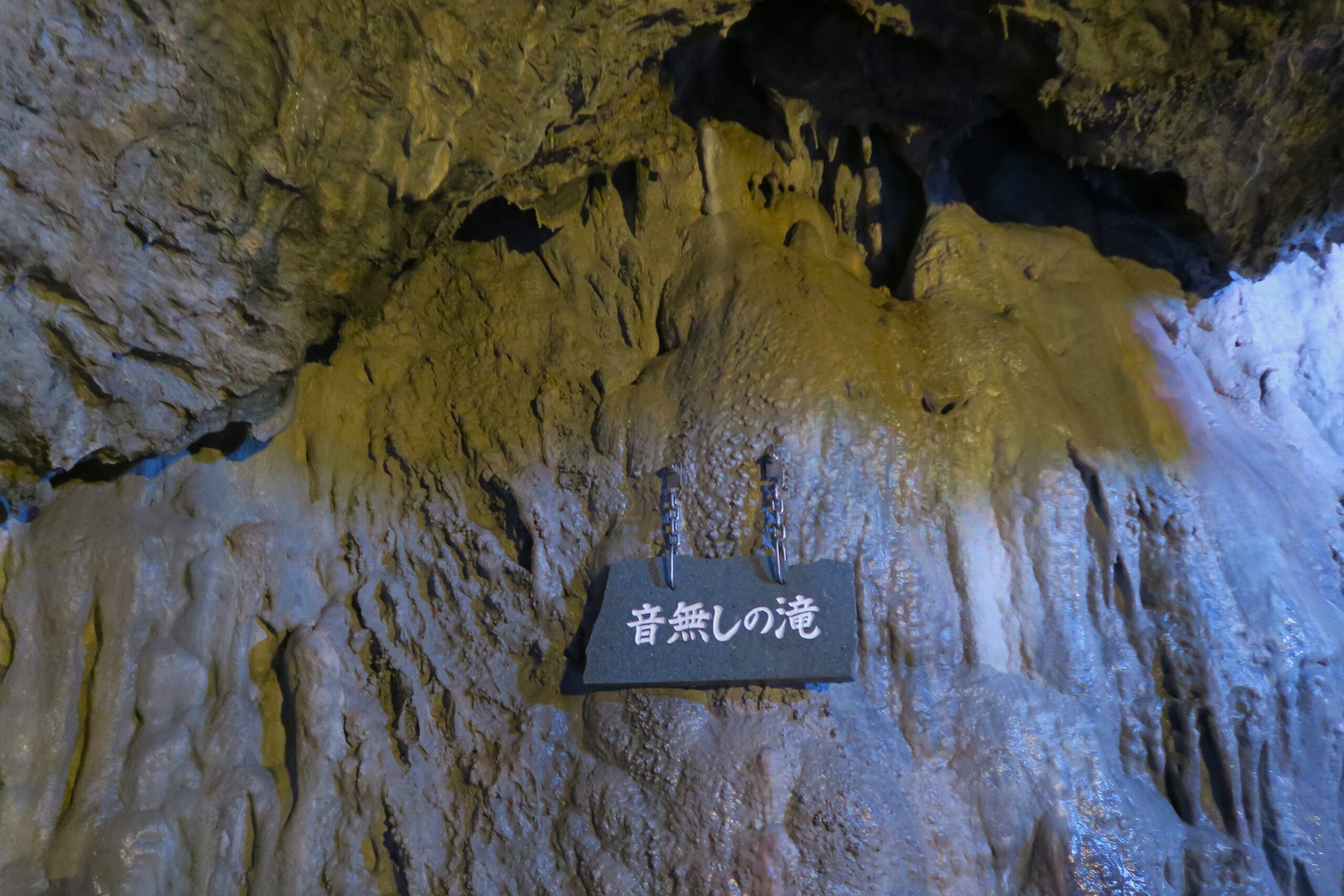 なかでも目に止まった「音無滝」は、まるで鍾乳石が壁面を壁一面を流れているかのようで、このタイプの鍾乳石は「流れ石」といって、水に含まれた石灰分が壁を伝わる間に再結晶してできたものです。