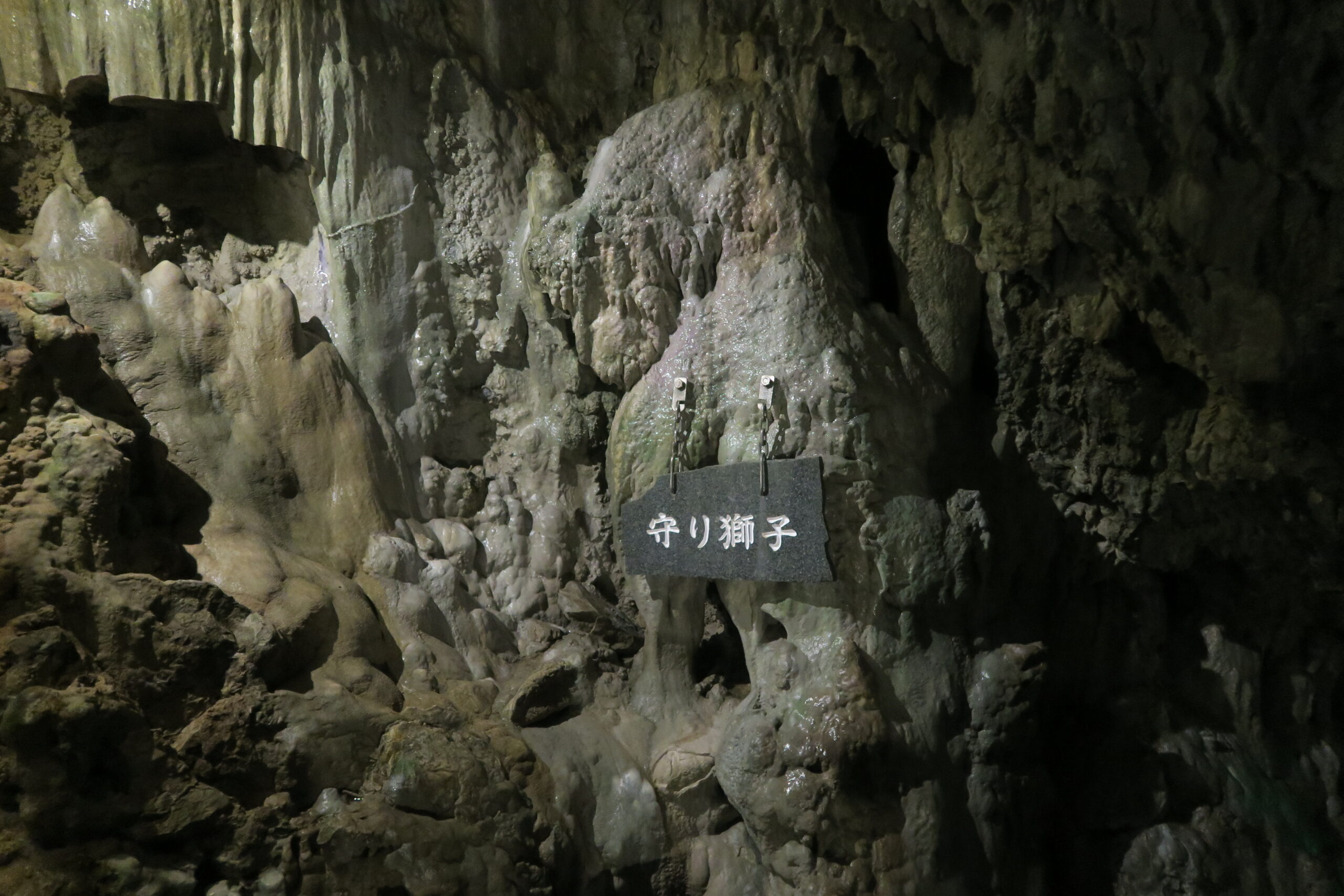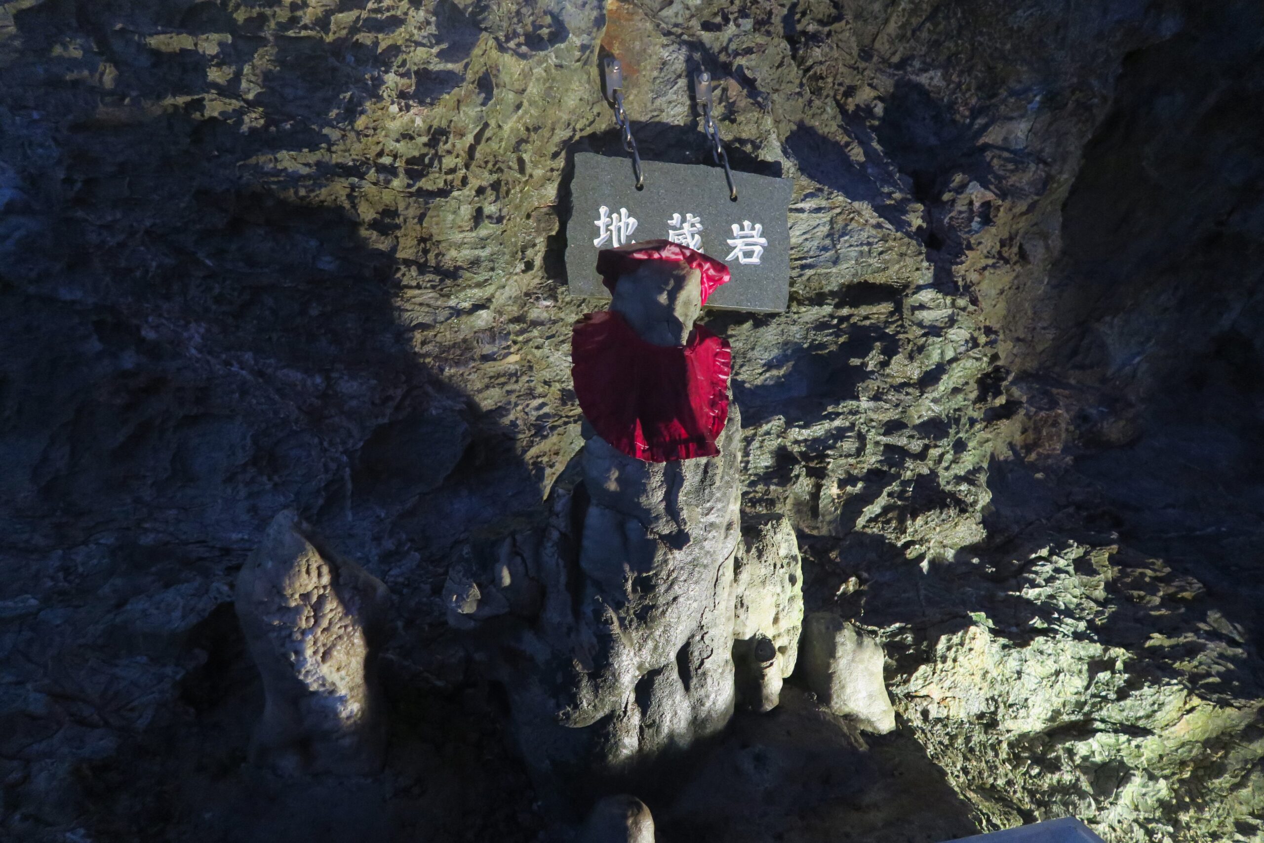 長年堆積して成長し鍾乳石の形がお地蔵様の姿に見える「地蔵岩」