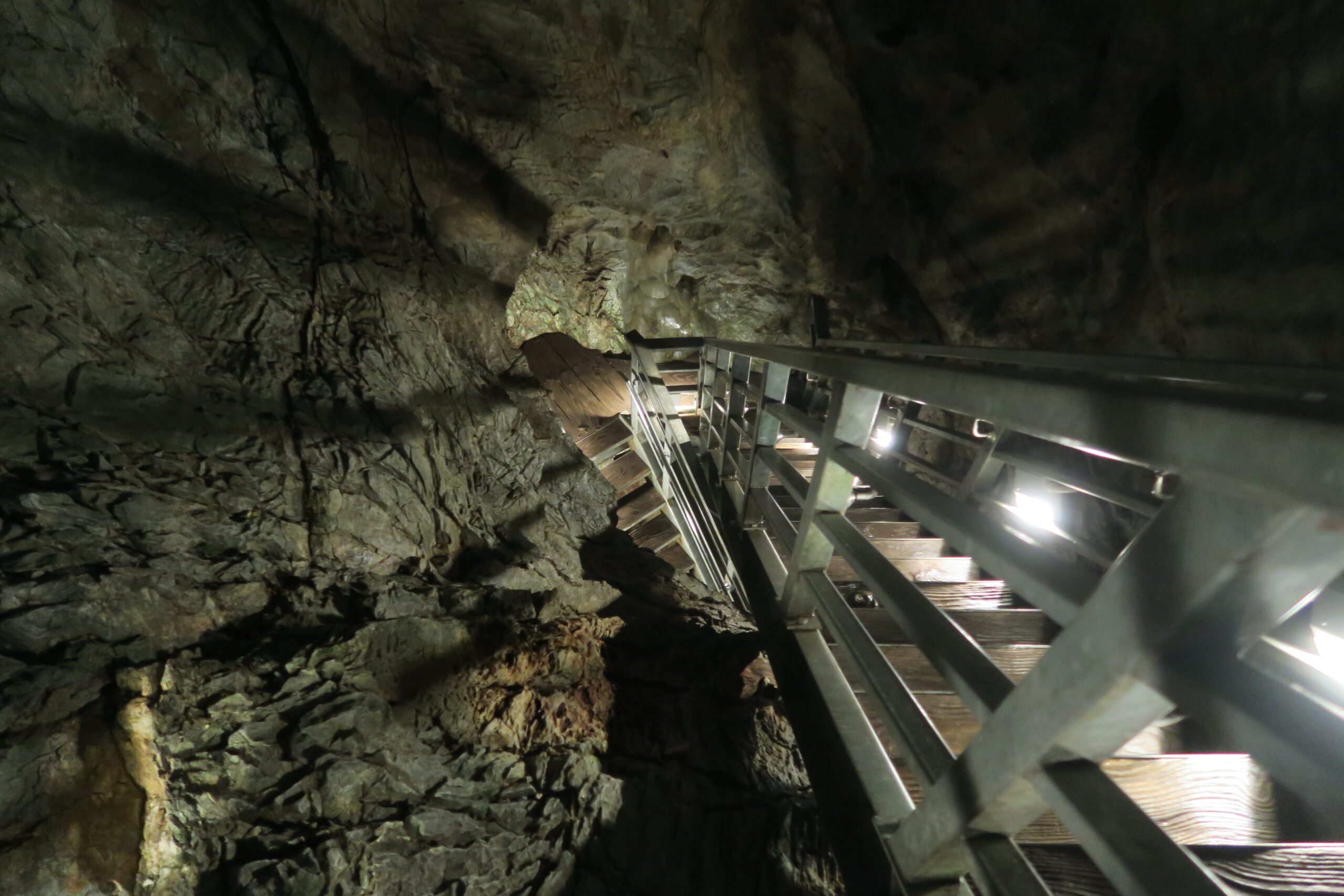 ここからは地底湖水面からおよそ35mの観光コース最高地点の三原峠まで274段の階段を登っていきます。