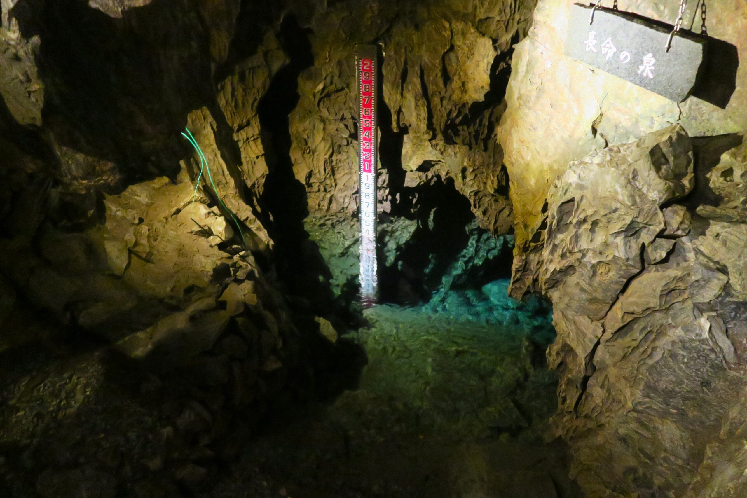 順路が一番低くなったところまで来ると、相当な水量の泉が湧き出しています。この水は龍泉洞から清水川の下を50分かけて通って来ているとのこと。