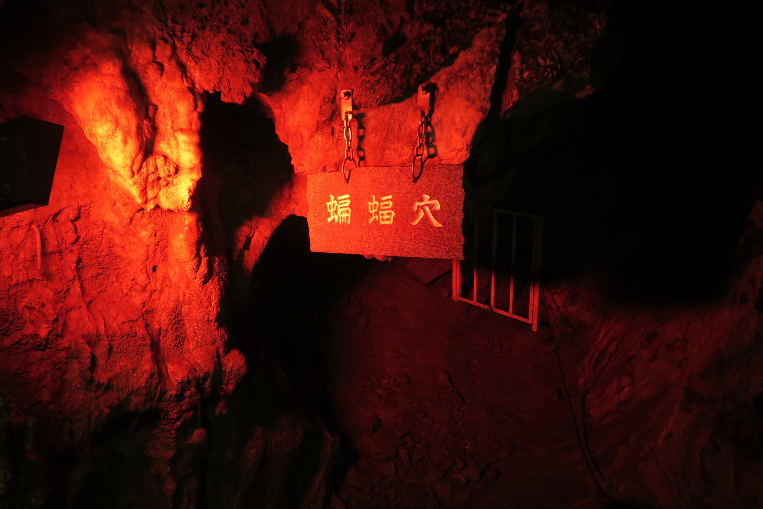 「蝙蝠穴」は、1つの洞窟に5種類の蝙蝠が生息する珍しい洞穴です。国の天然記念物に指定され、洞窟に棲む“キクガシラコウモリ”が良く見られるほか、越冬ために洞窟を訪れる“コキクガシラコウモリ”“ニホンウサギコウモリ”“テングコウモリ”“モモジロコウモリ”が確認されています。コウモリにドキドキしながら百閒廊下を戻り外に出ます。