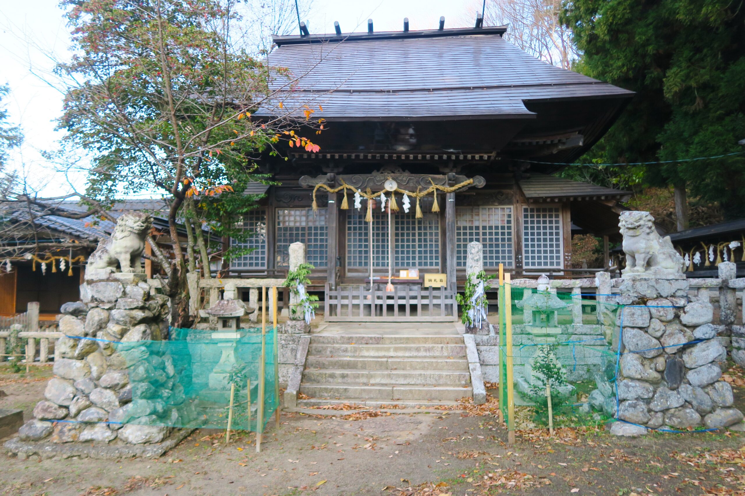 本殿は正面三間側面二間、切妻造で茅葺屋根をトタンで覆っています。棟に千木二組、鰹魚木六本を置き、表側には棟持柱、鞭掛けがあり、扠首組を妻飾りに用いるなど、神明造の特徴が良く表れています。元禄元年(1688)火災により焼失後残されている棟札から、明和8年(1771)に越後の出雲埼の大工和田七によって造られたものと思われます。