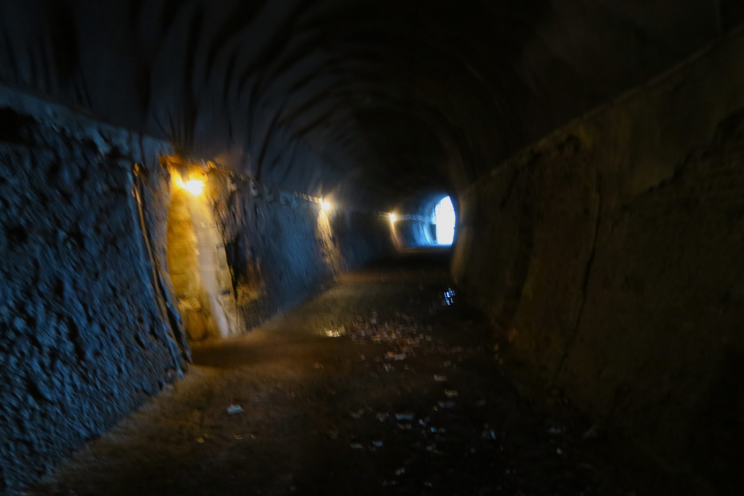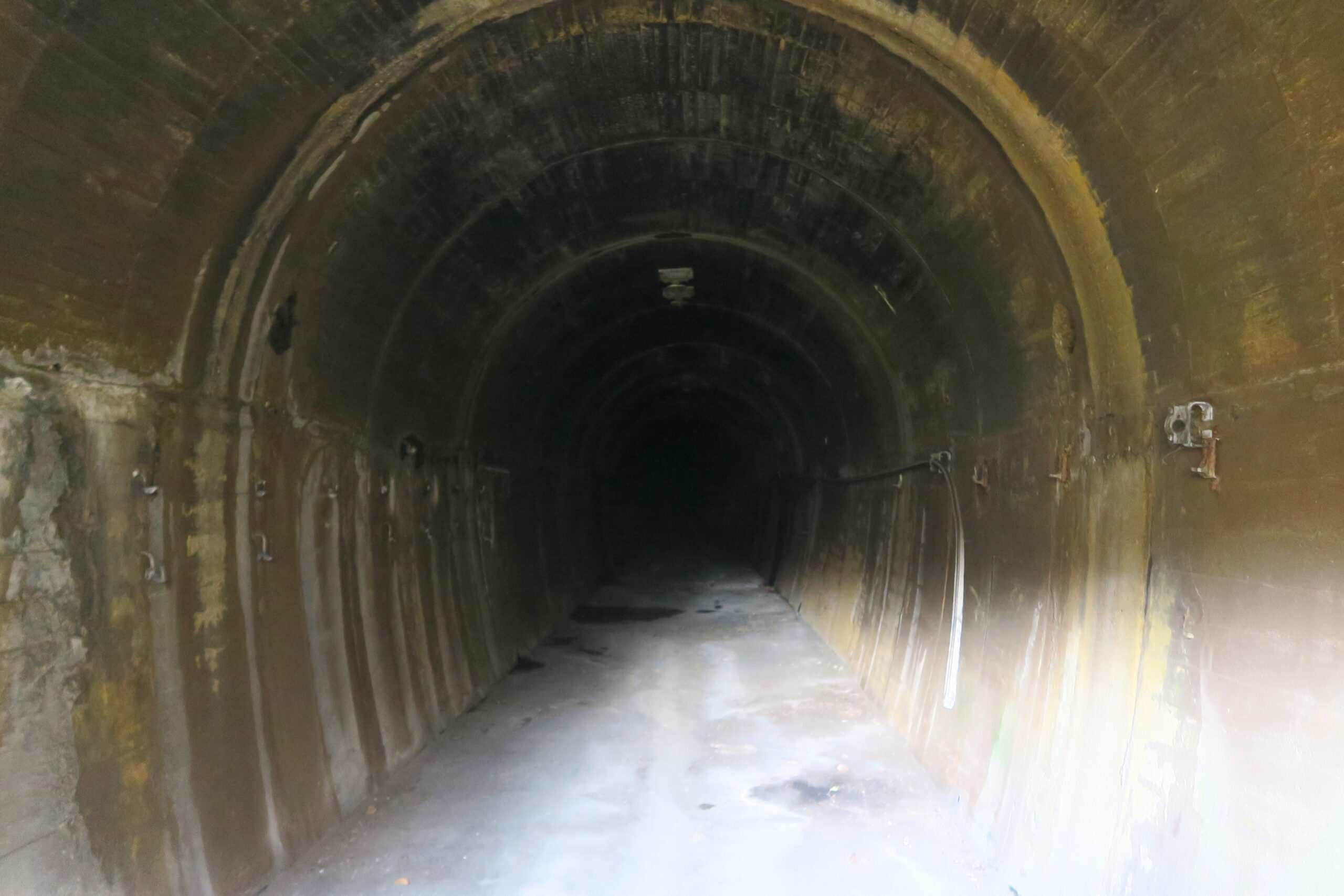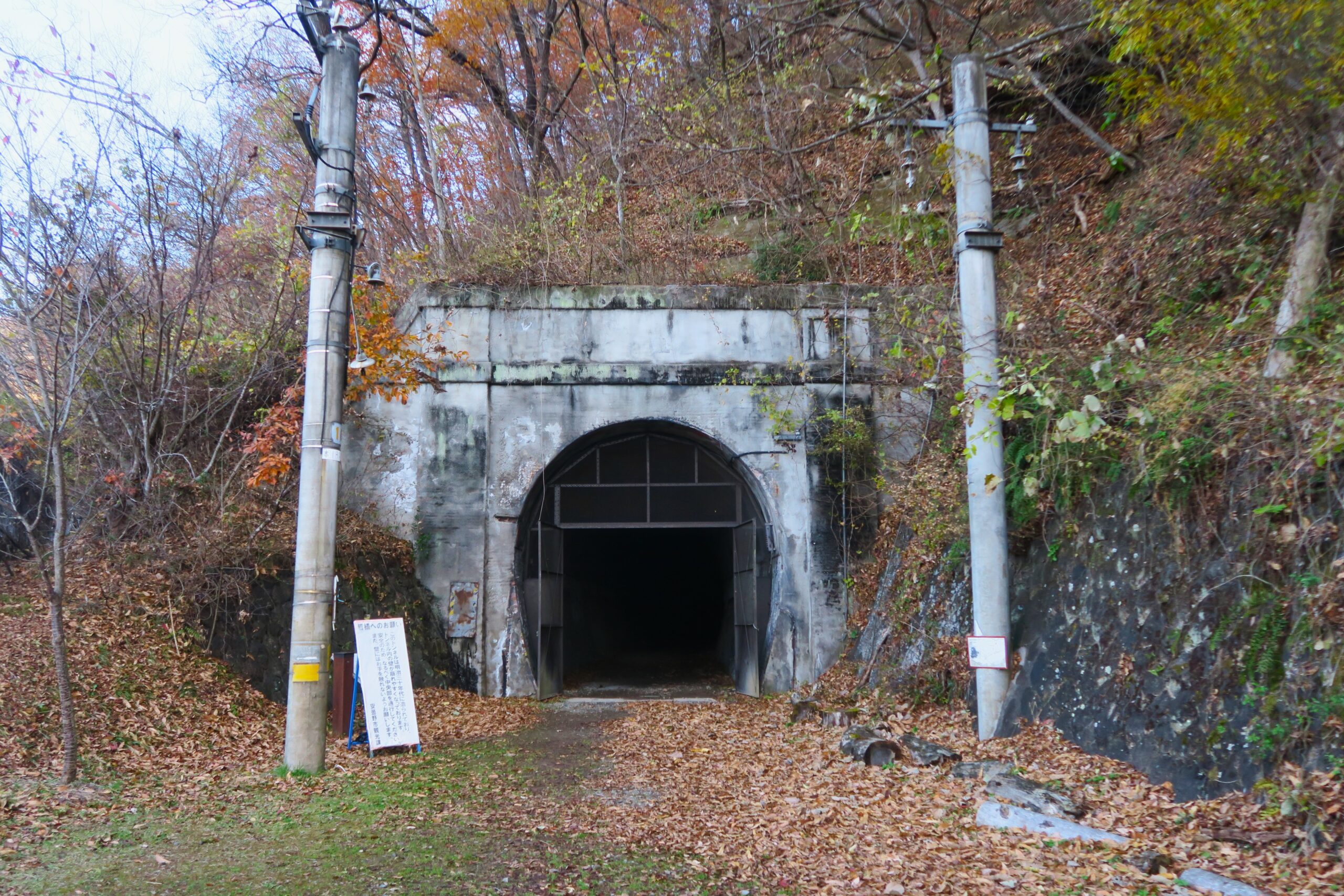 全長125mで待避所となる窪みも当時のまま。カーブになっているため入口付近から出口の光は見えませんがレトロなランプのが点り、怖くはない。当時は真っ暗だったそうです。天井のモルタル部分は、旧篠ノ井線が電化される直前(昭和46年頃)水滴が電線に付着するのを防ぐために吹き付けによる補修工事を施したもので、そのため当時のレンガ部分を確認できるのは側面下方だけとなっています。