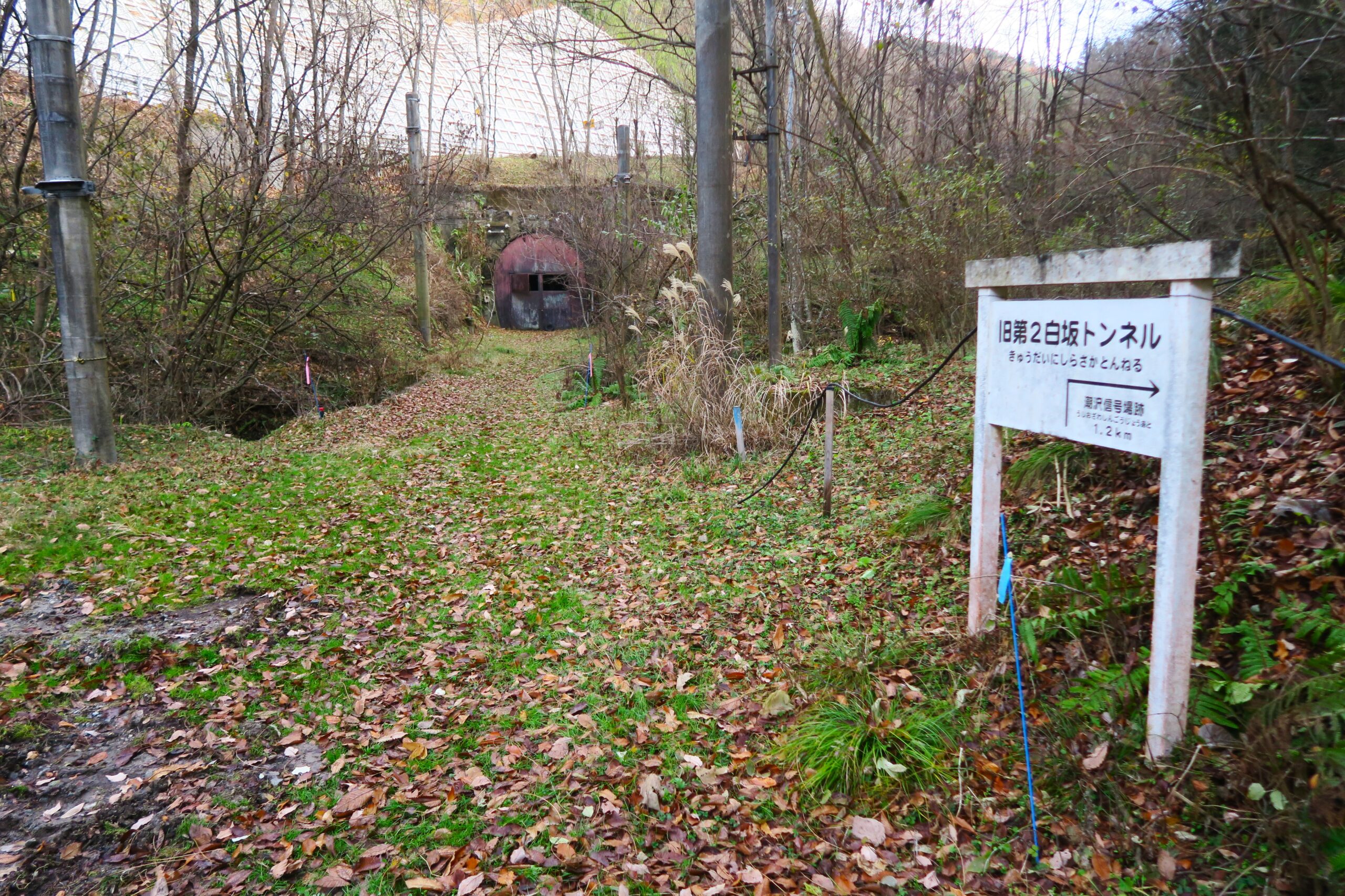 旧国鉄篠ノ井線廃線敷遊歩道は旧第2白坂トンネルで終わりですが、廃線跡は西条駅近くまで続いているそうで、トンネルが中心となる筑北村側の旧第2白坂トンネル~西条駅間の約3.8kmは未整備のままです。筑北村が管理するトンネルは小仁熊トンネル(365m)と第1白坂トンネル(2094m)、安曇野市境の第2白坂トンネル(2094m)になります。実際JR東日本長野支社は、筑北村に観光活用の相談をしており、将来的に整備が実現すれば明科駅~西条駅間をどちらかの駅近くに駐車し、廃線敷を約10km歩いて電車を利用して出発地点に戻るという理想的な廃線跡ハイキングコースが生まれることになります。早期に実現することを期待したいところです。