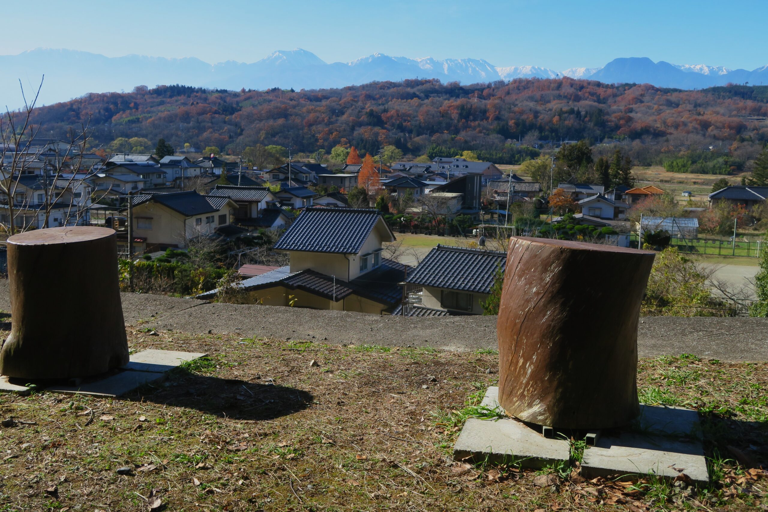 しばらく進むと眺望が開け、廃線敷一の景色が現れます。明科の町の東側の高台に位置し、北側に鹿島槍ヶ岳や爺ヶ岳、南側には常念岳や有明山と北アルプスの絶景を望める。