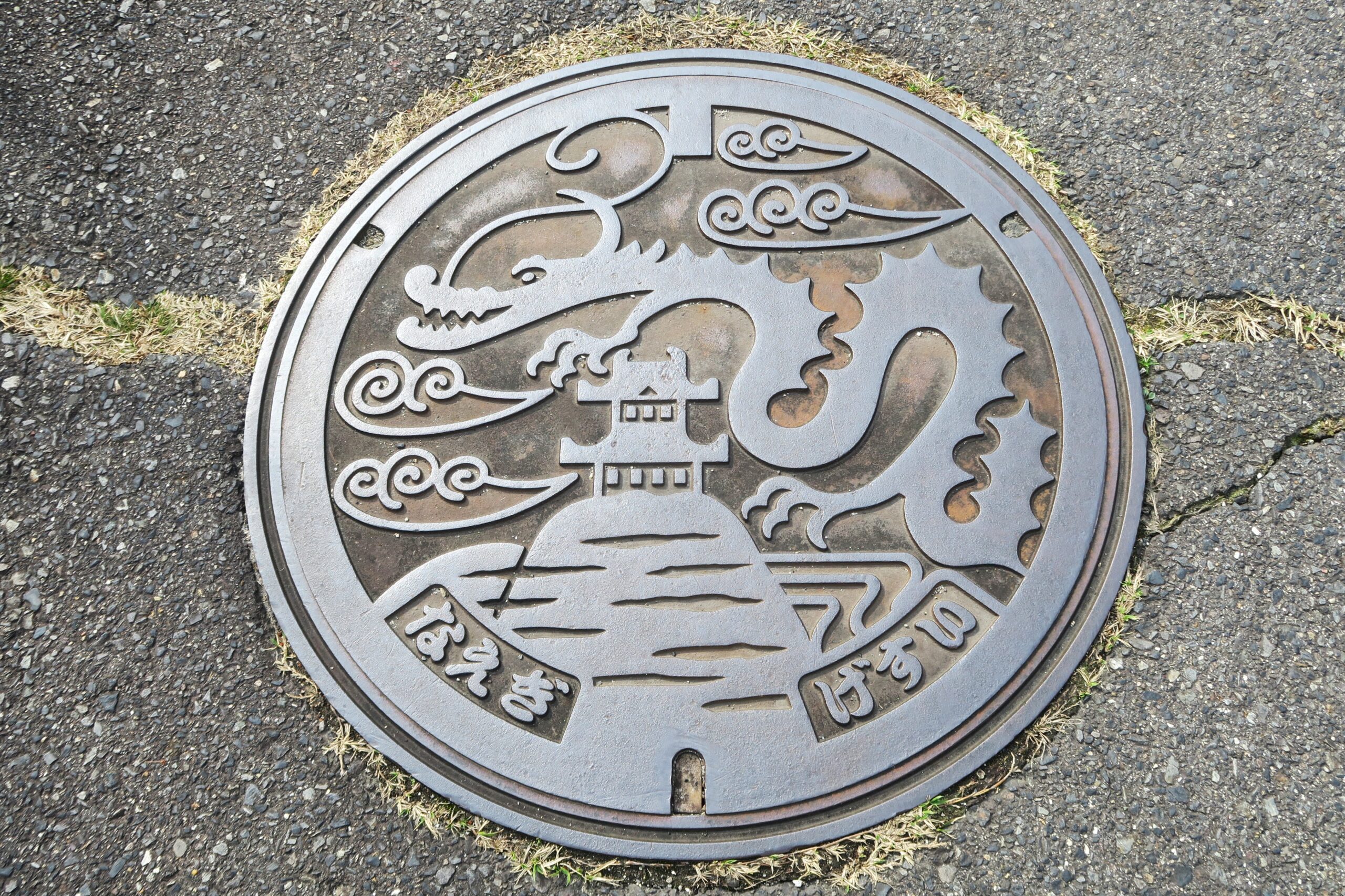 その昔、赤土の壁だった苗木城は『赤壁城』とも呼ばれ、幾度、白壁に塗っても木曽川の龍が嵐を起こして鋭い爪でガリガリと白壁を剥ぎとって赤土の壁に戻ってしまうという“赤壁城伝説”が残っています。伝説をモチーフにしたマンホール