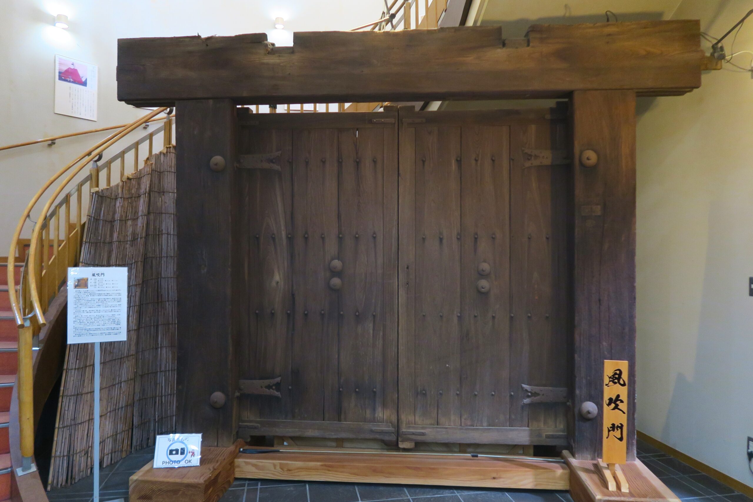 二の丸と天守への分かれ道を天守方向へ進みます。正面には2階が「飼葉蔵」として使われていた風吹門がありました。大手門と呼ばれ城下から三の丸への出入り口で、門の南側に門番所が併置され、昼夜を問わず人の通行を監視していました。城主の在城の時は開門していましたが、江戸詰で留守の時は締め切られ、潜り戸が利用されていました。