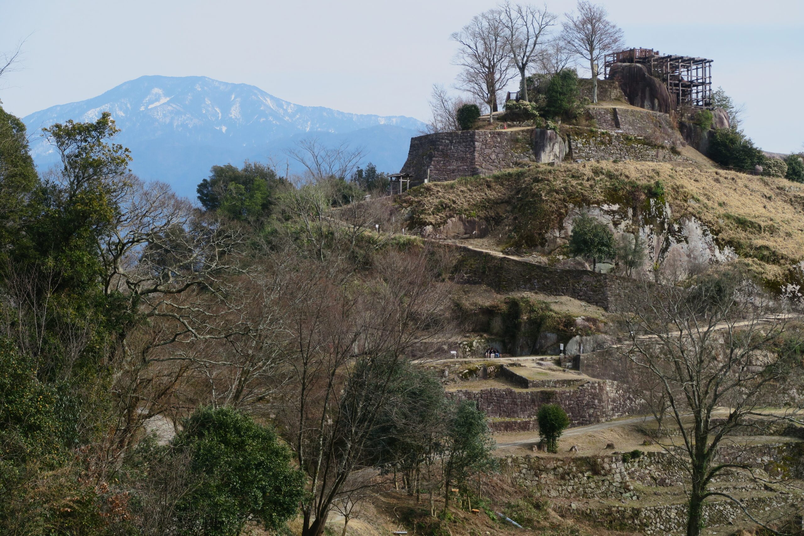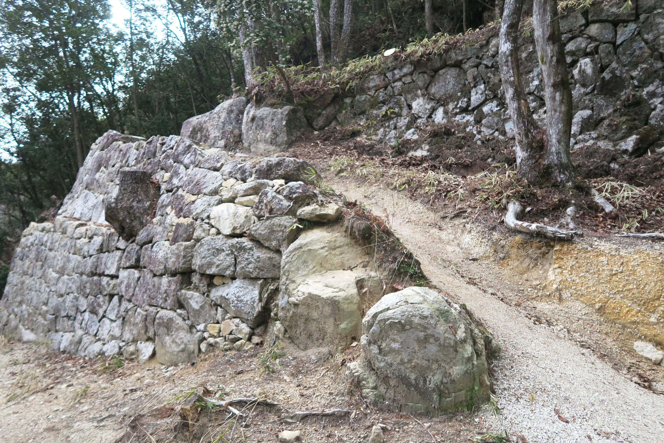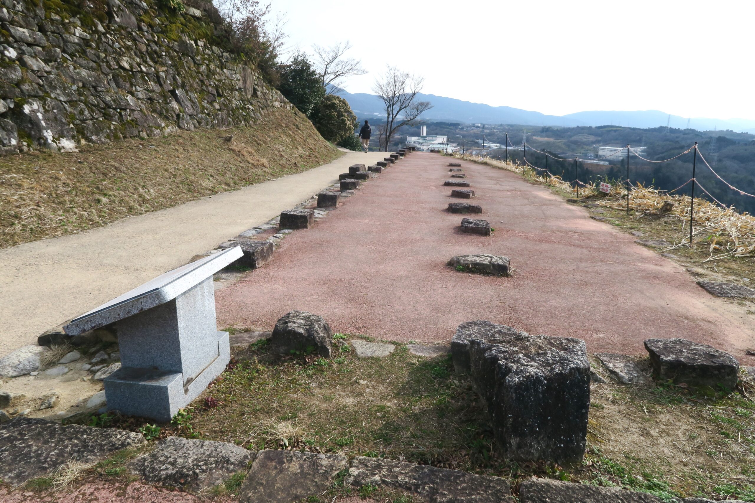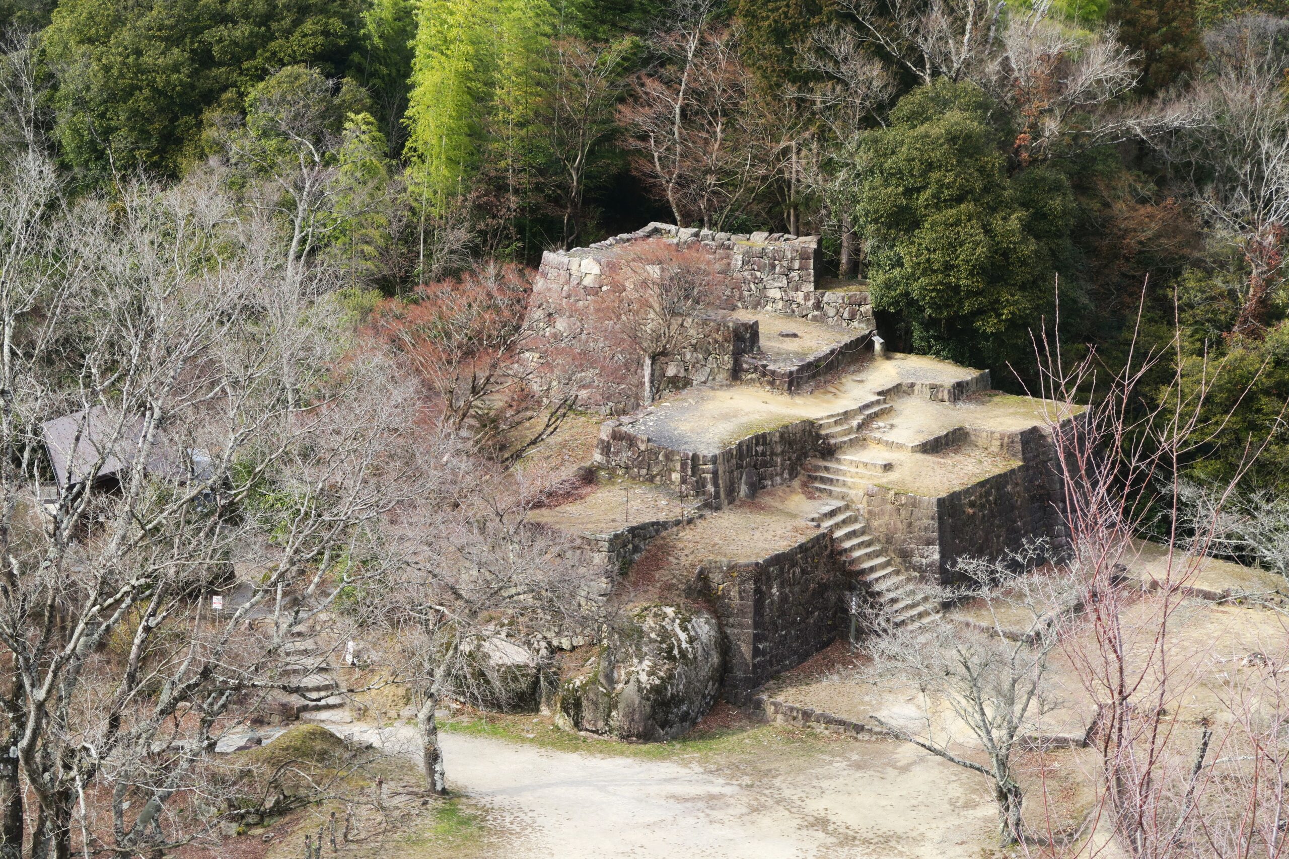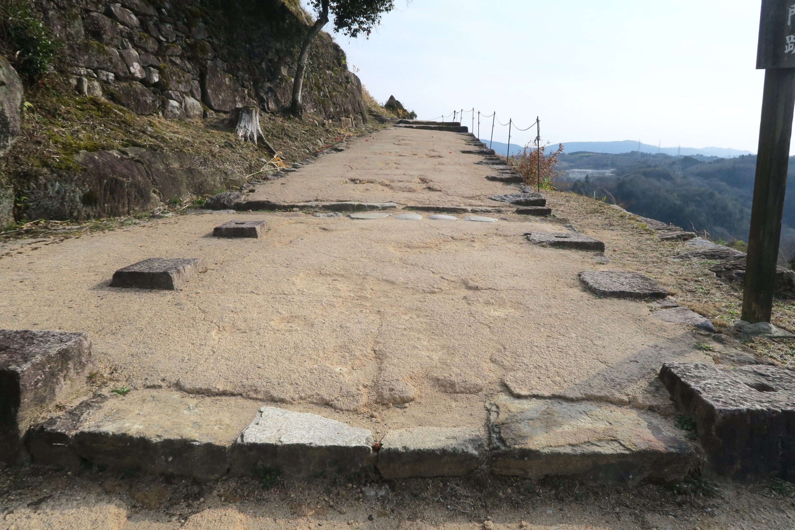 天守台へ向かうつづら折りの坂の途中で振り返ると、大矢倉跡を見下ろすことができます。まさしく現代のマチュピチュのようです。