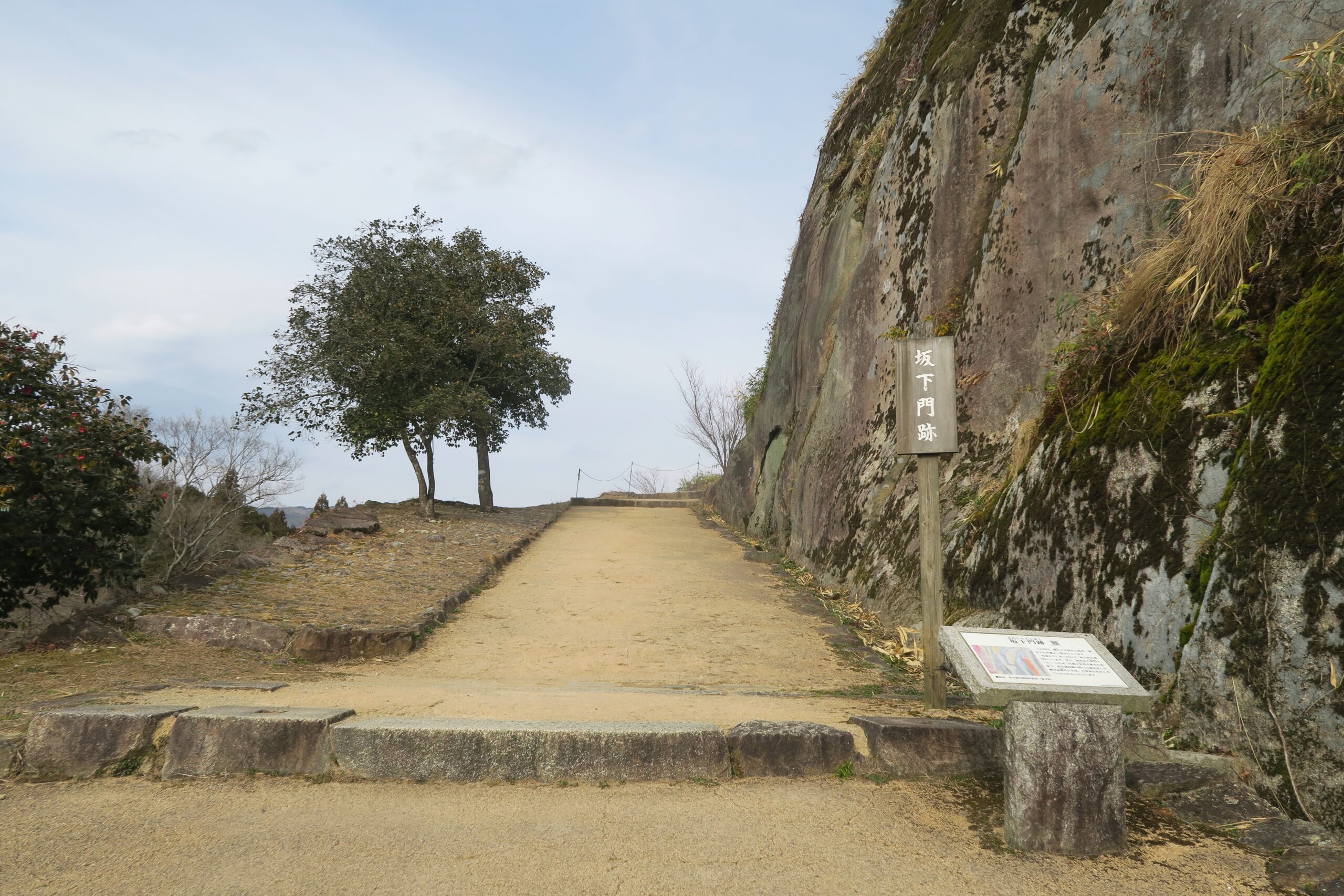 錦蔵門を越えると道が左に180度折れ曲がる本丸へ上る坂道の下にあったので坂下門と呼ばれています。別名を久世門といい、これは三代友貞の奥方の実家で、苗木城改修の際に力添えをした徳川譜代の名家、久世家の名からきていると伝えられています。礎石と手前の石段が状態よく残されています。