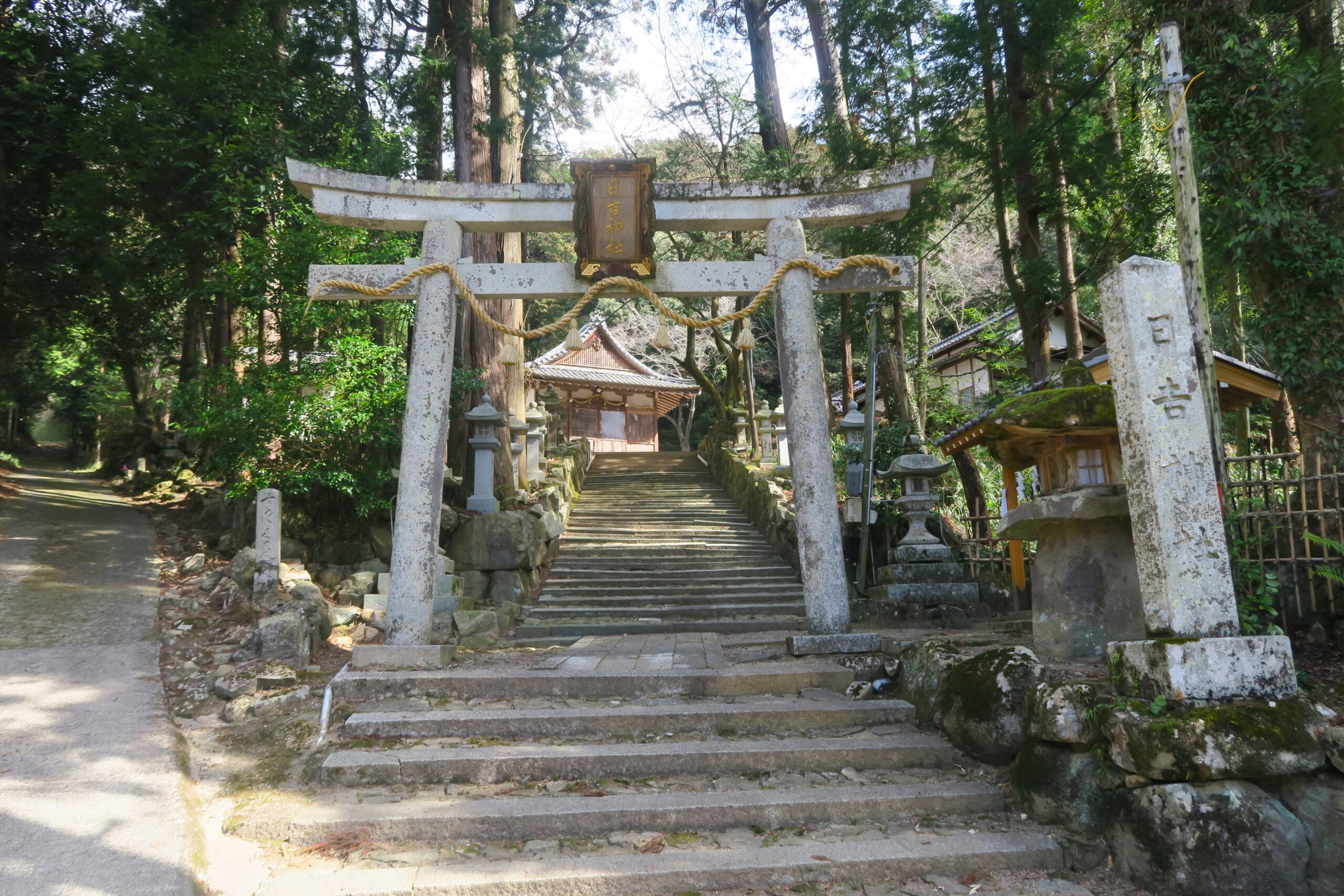 下街道と参道(赤坂道)が交差する地点からは繖山が見える。繖山に向かって坂道を上って行くと日吉神社があります。