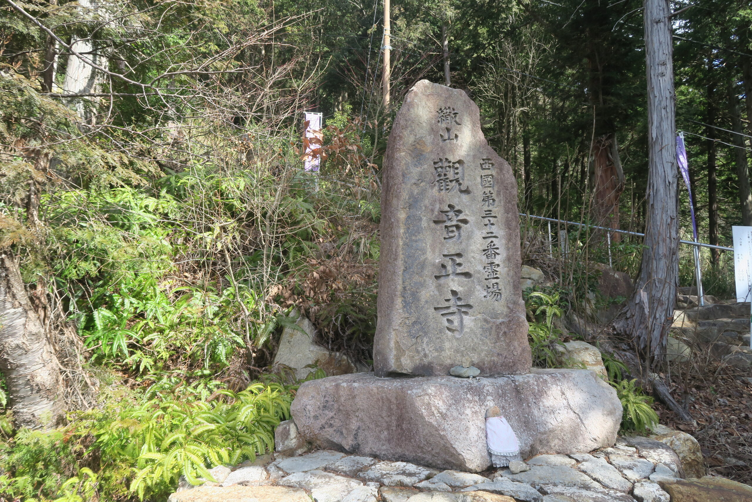 標高は400mほどで山頂まで18丁ぐらいしかないがくたくたになりますが、曲がり角毎に現れる景色は美しく、蒲生野の中を新幹線が玩具のように滑り走っていく。ここは観音正寺への巡礼道で、上りきると観音正寺の境内へ。