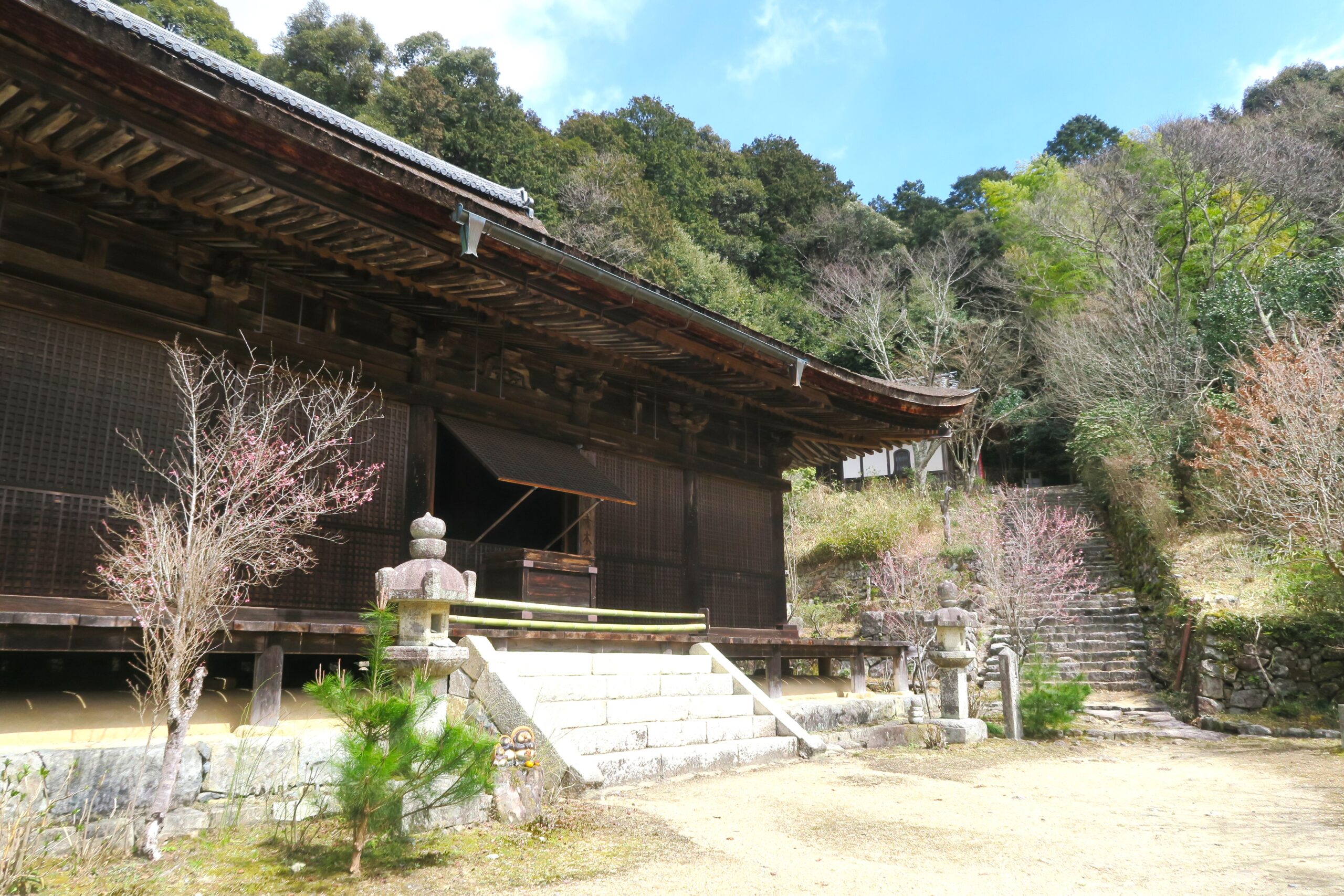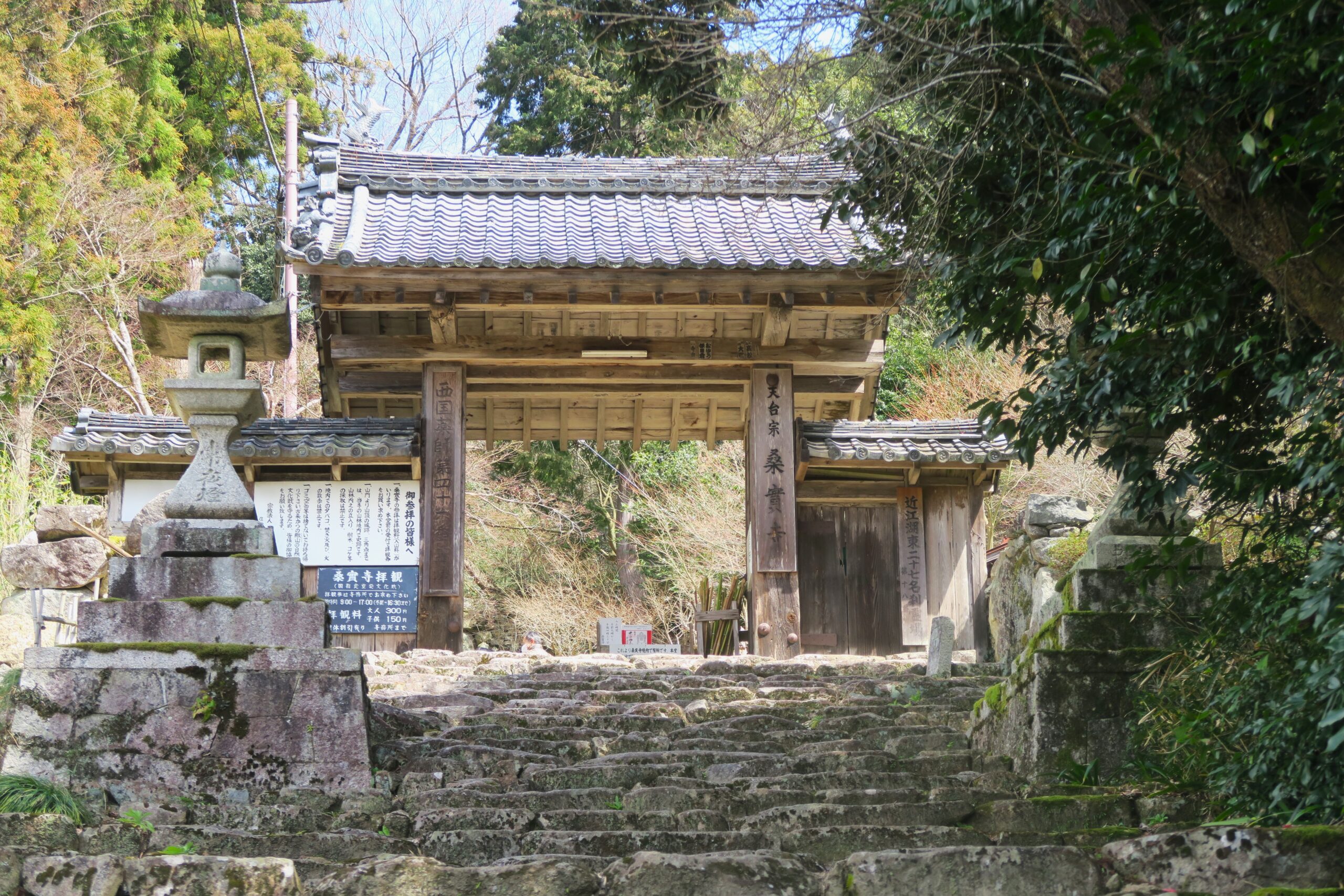 桑實寺方面に城跡から下っていきます。本丸食い違い虎口からは桑実寺の境内になるため、本堂で入山料300円を払うことになります。