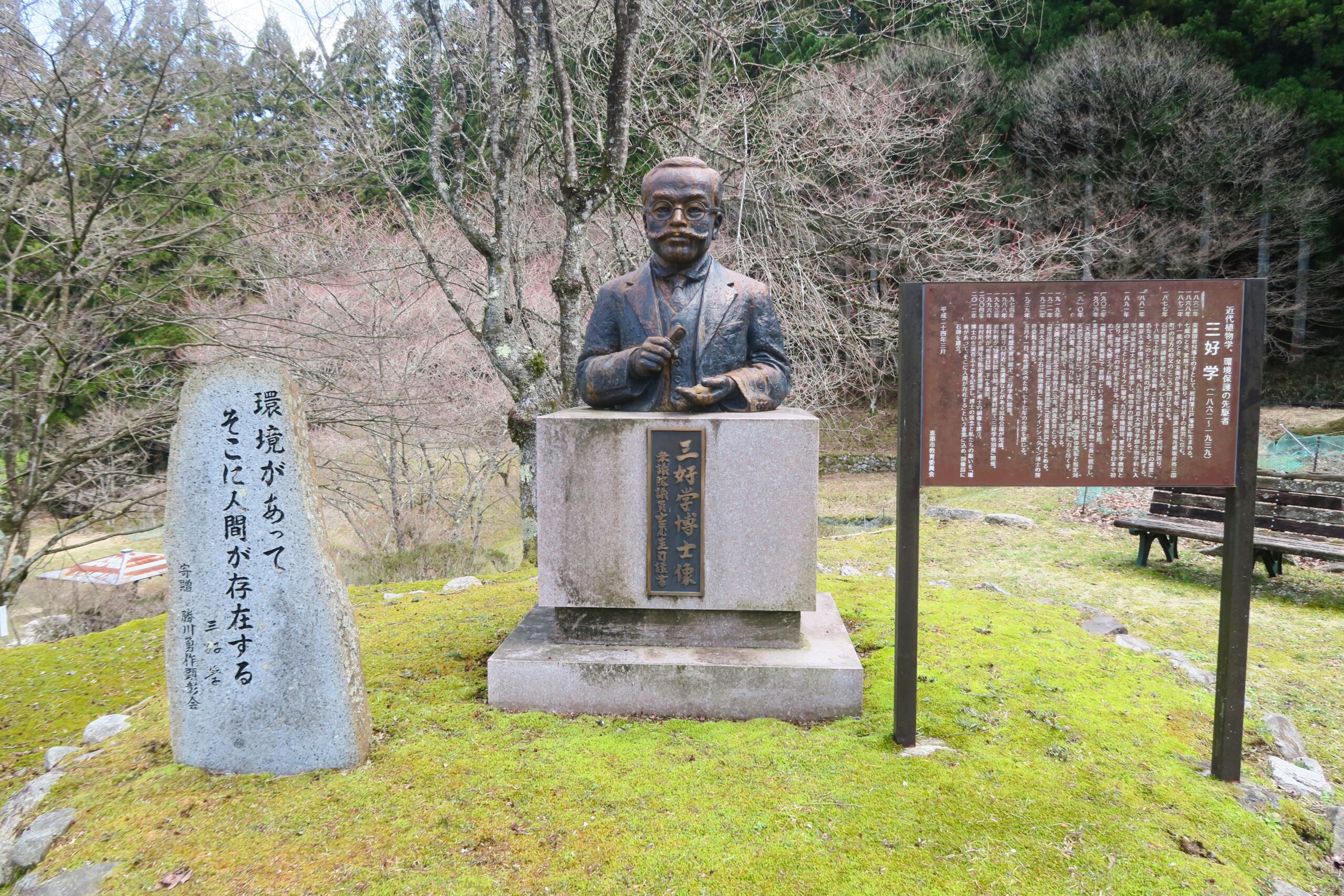 また我が国の植物学の基礎を築き、桜と花菖蒲の研究における世界的な第一人者の三好学の銅像が向かいに立っています。天然記念物の制度を最初に提唱し、著書で「環境があってそこに人間が存する」と自然保護を提唱しています。“景観”という言葉を最初に著しています。