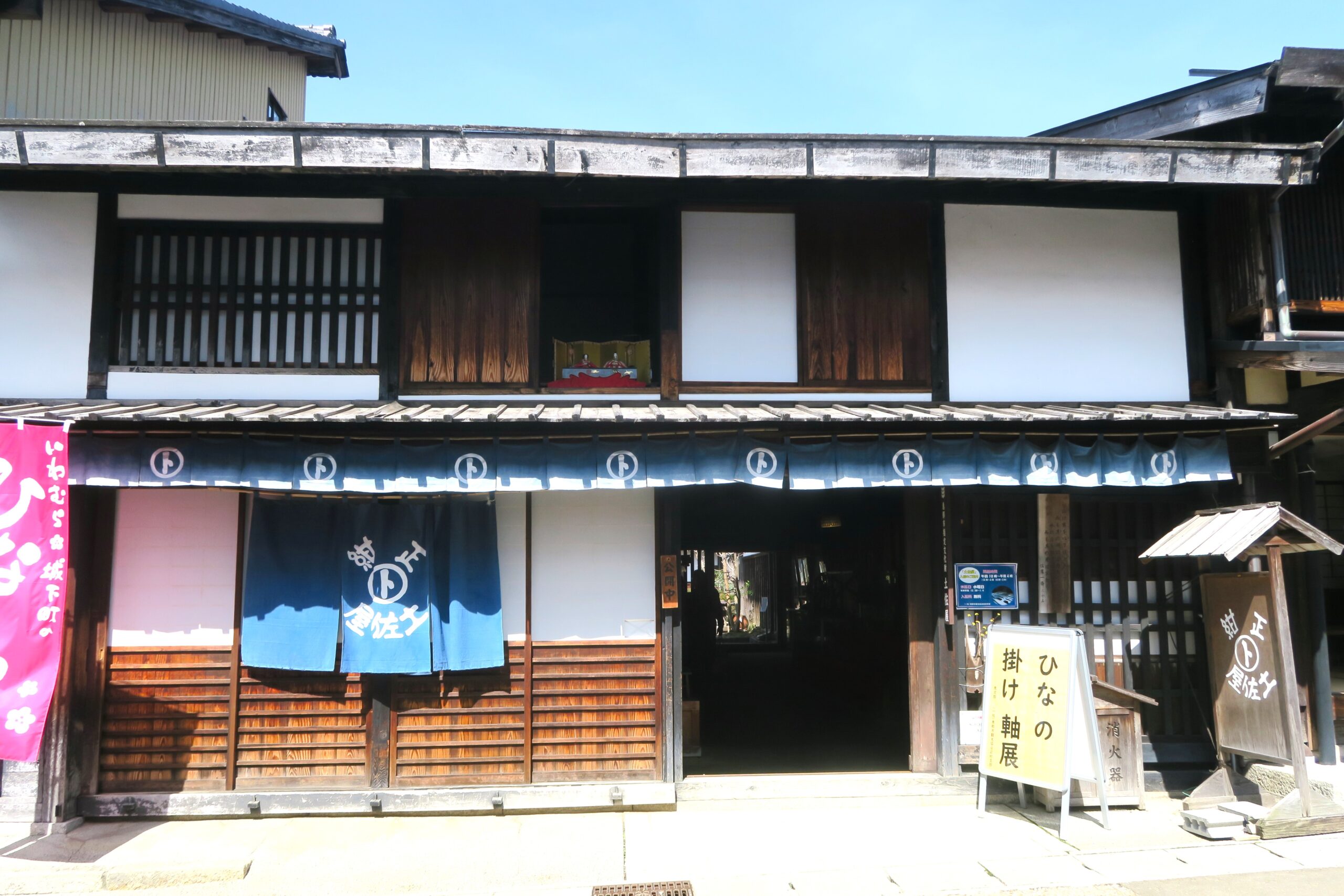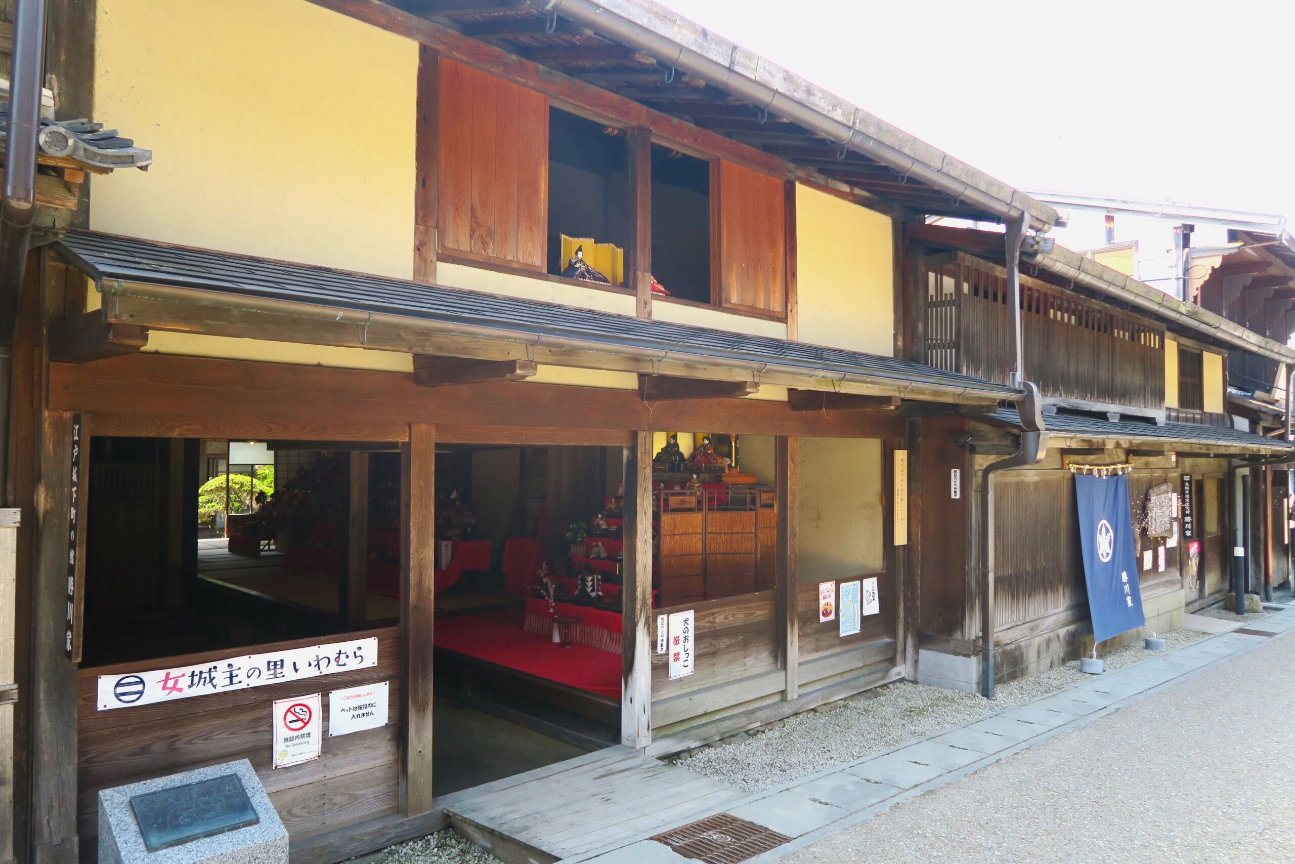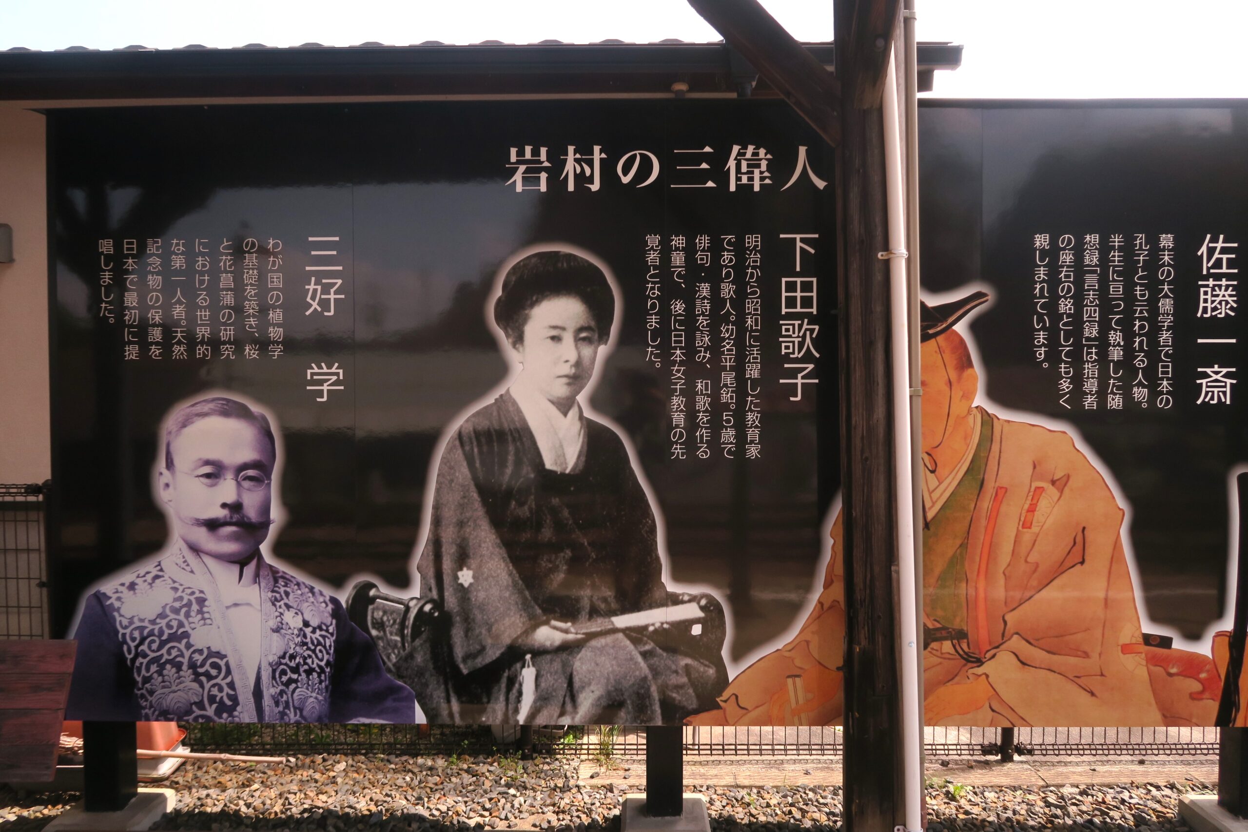 旧柴田家住宅は明治時代の典型的な建物で、明治から大正の頃に建てられ、昭和初期には寒天事業を営んでいた柴田家の事務所兼店舗として使われていました。整備工事によって平成15年に「いわむら美術の館」としてオープン。郷土の肖像画家・原田芳洲の絵画が常設されています。女城主の里にちなみ、家の軒先の青い暖簾には、その家の女性の名前書かれてあり、また家々の軒下には佐藤一斎の『言志四録』を刻んだ木板が掛けられています。