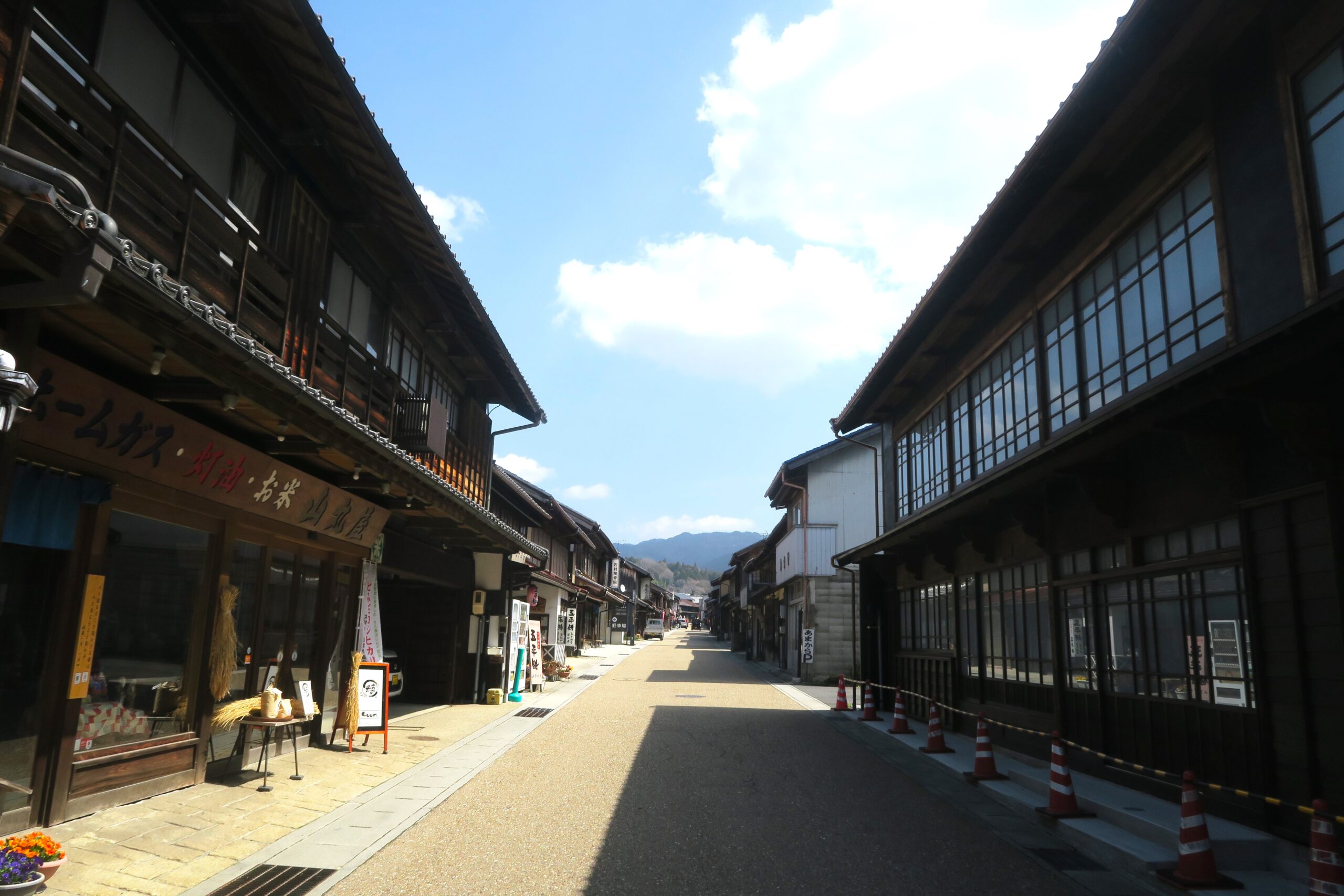 岩村は江戸時代に東濃地方の政治・経済・文化の中心として栄えた城下町で、保存地区は城下町の町家地区として形成された町の形態と近代の発展課程を伝える町家群が周辺の環境と一体となった東濃地方の商家町として、特色ある歴史的景観を良好に伝えています。現在も、保存地区内では地元の商店街として商いが営まれており、人の息遣いが感じられる生活感のある町並みが来訪者を穏やかな空気で包んでくれており、当時の面影に触れることができることから「美しい日本の歴史的風土100選」に選ばれています。ゆっくり歩いても20分ほどの保存地区内には、問屋として藩の財政を担っていた木村邸や染物屋を営んでいた土佐屋、材木や年貢米を扱っていた勝川家、火縄銃や槍を造っていた加納家そして原田芳洲の作品を展示している柴田家といった旧家が見応え充分で、いずれも無料で一般公開(一部施設は有料)されています。NHK朝の連続テレビ小説「半分、青い。」や映画『銀河鉄道の父』のロケ地にもなっています。