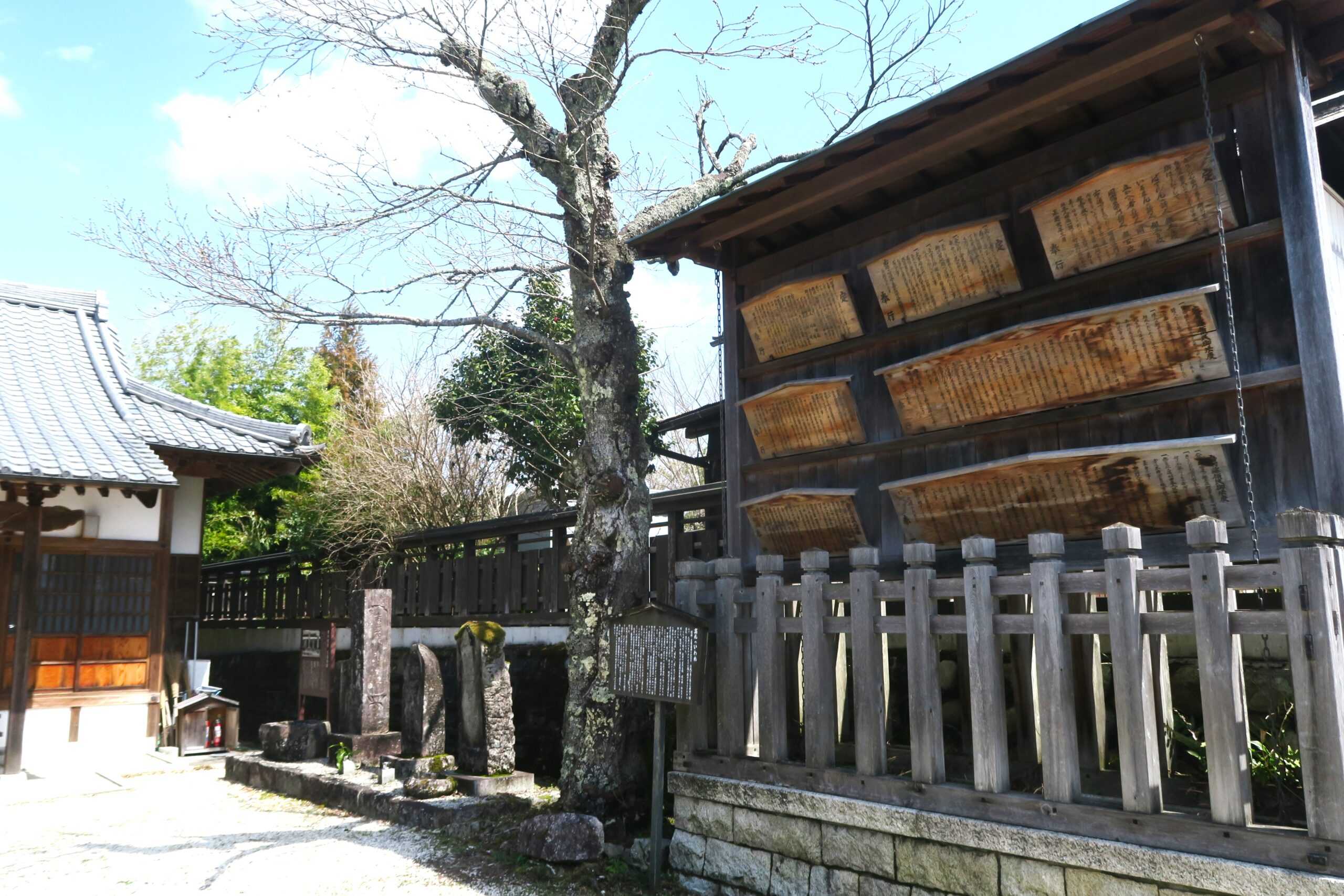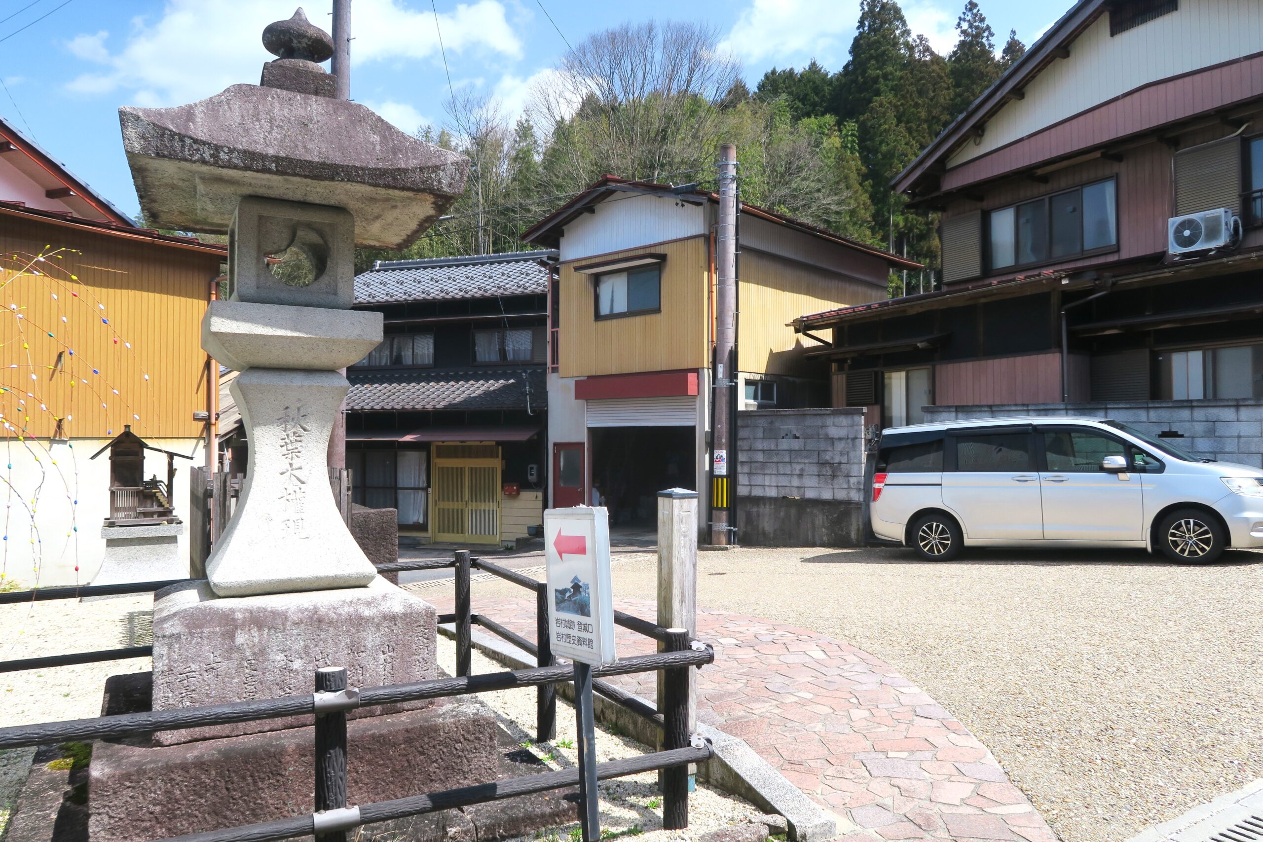 山に向かってのびる坂道と軒を連ねる古民家の風景は木曽路の宿場町に似ています。高札場があった枡形の前後で町並みが変わります。高札場は藩主が領民取締りの各種ご法度を公布し領内に知らせたもので、左手奥の祥雲寺(西町庚申堂)は盛巌寺の付属で元和年間(1615~1624)の創建と伝わります。藩主丹羽家の家中より庚申の本尊青面金剛像の寄進があり庚申堂となったものです。お堂の前を西町に向かって流れる石組みの水路を「天正疎水」といい、商家や民家の裏庭にこうした水路が縦断しているのもこの町の特徴。江戸時代に造られたものですが風情たっぷりです。