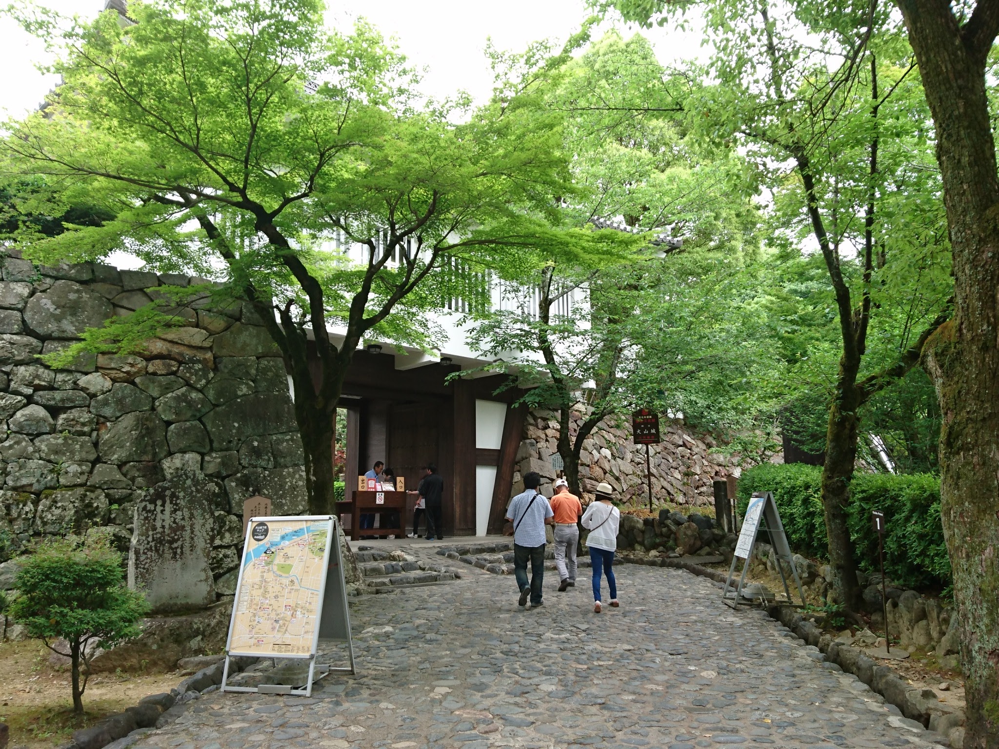 戦国時代の城は相手が簡単に本丸まで到着できないようにつくられている。表門に続く道は、曲がりくねっていて、敵が直進できないようになっている。しばらく、坂道を登っていくと入城窓口があり、入城料を払って表門をくぐると国宝犬山城が威厳をもって出迎えてくれるのです。