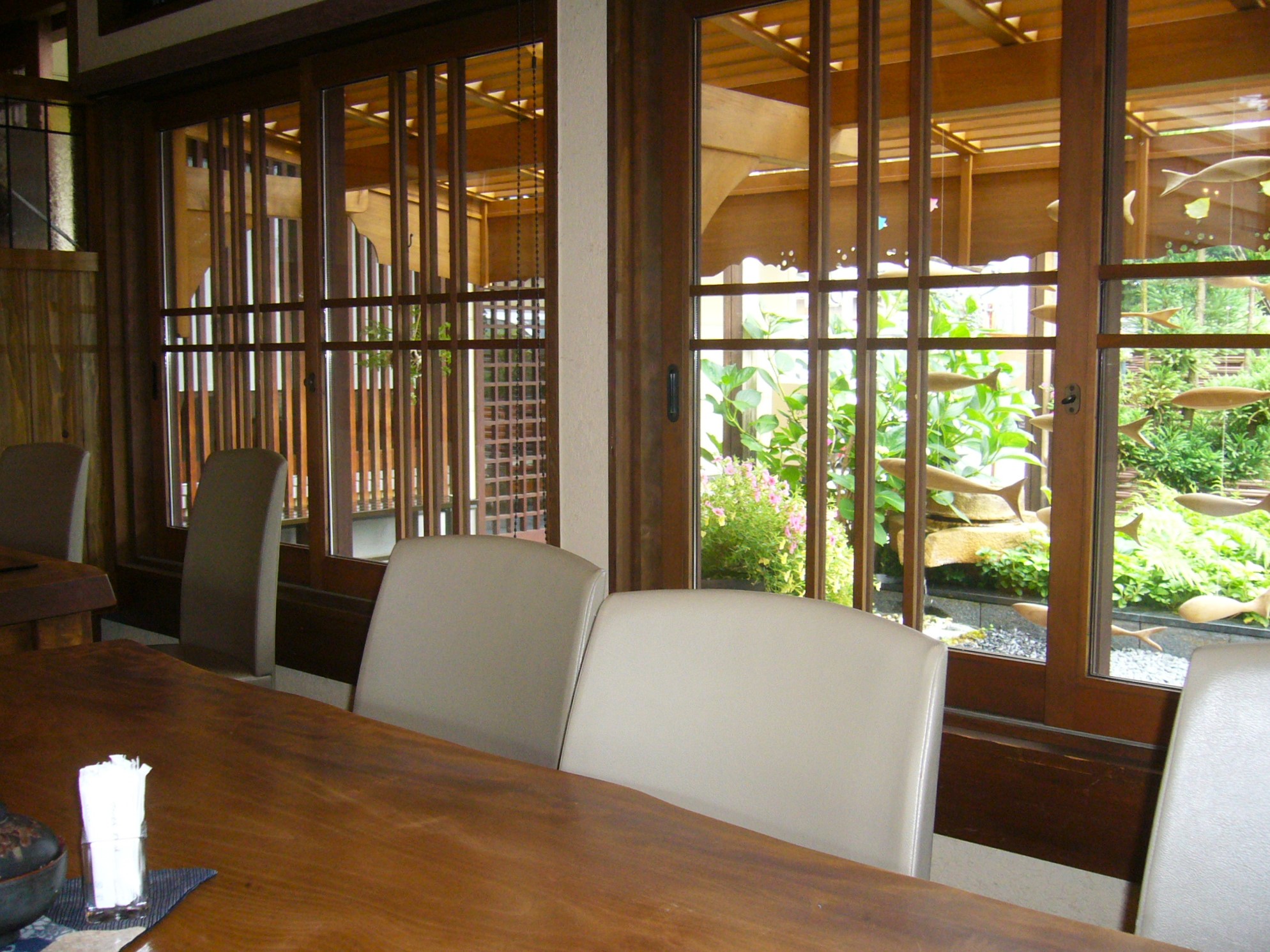 古い町並みから少し外れた、本町通りの裏手、郷瀬川を渡った閑静な住宅街にあるのが、和と洋が溶け合ったおしゃれなカフェ「豆腐かふぇ 浦嶌」。店名「浦嶌」は犬山祭伝統の車山の名前で、センスのいい小物が配された窓から差し込む心地良い光と和の空間で、ゆったりと寛げます。