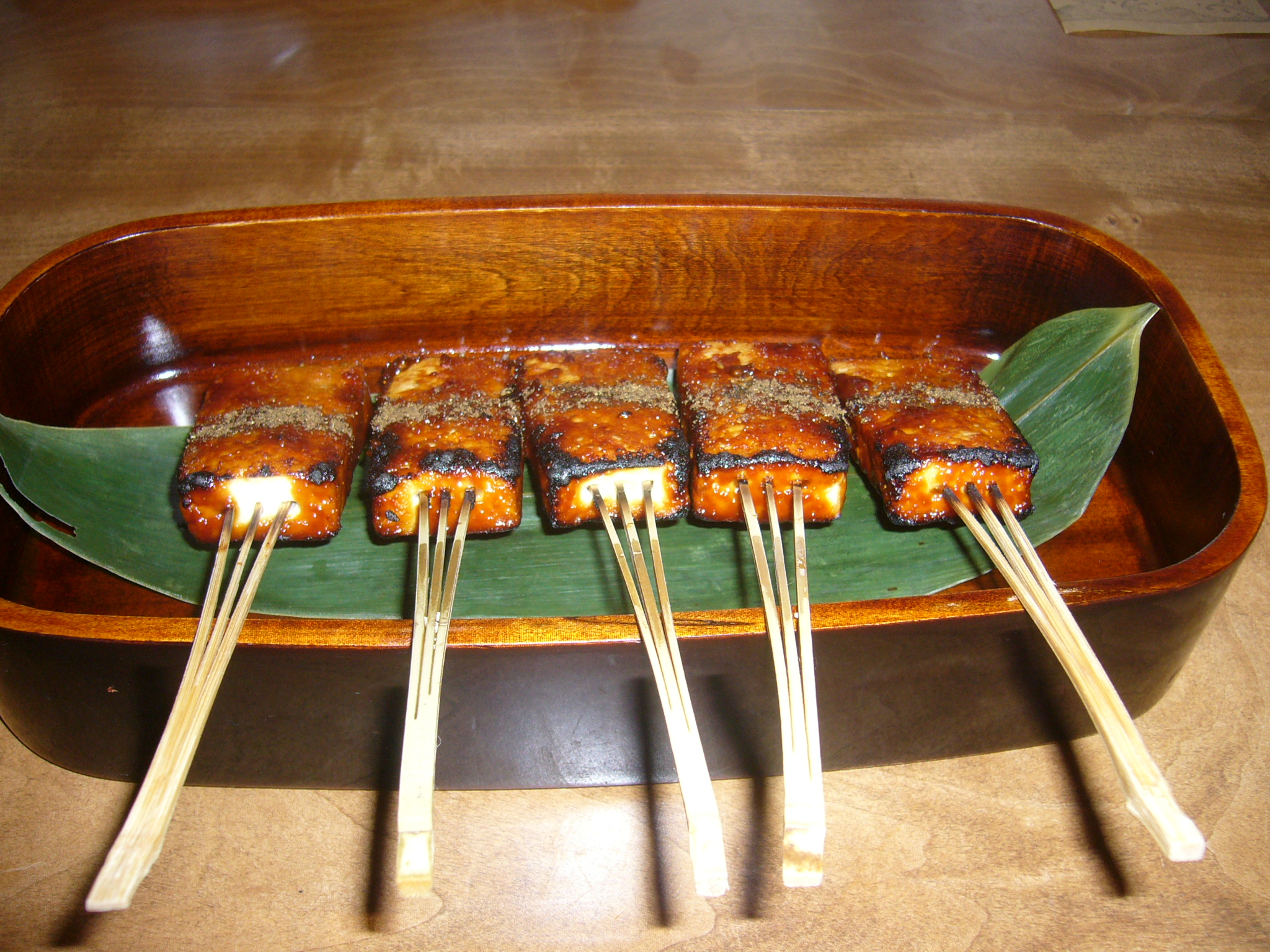 オーナーの家族が経営する老舗豆腐店が製造する豆腐を使ったヘルシーな料理が味わえます。串に刺した固めの豆腐に自家製の赤味噌だれえを付けて香ばしく両面をじっくり焼きあげた犬山の名物「でんがく」は「玉手箱ランチ」のほかにも単品でも提供しています。