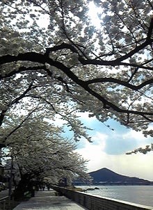 名鉄犬山遊園駅から犬山城までの木曽川沿いの木曽川遊歩道は犬山遊園駅から犬山城までお花見をしながらの散歩道で満開の桜並木が続きます。