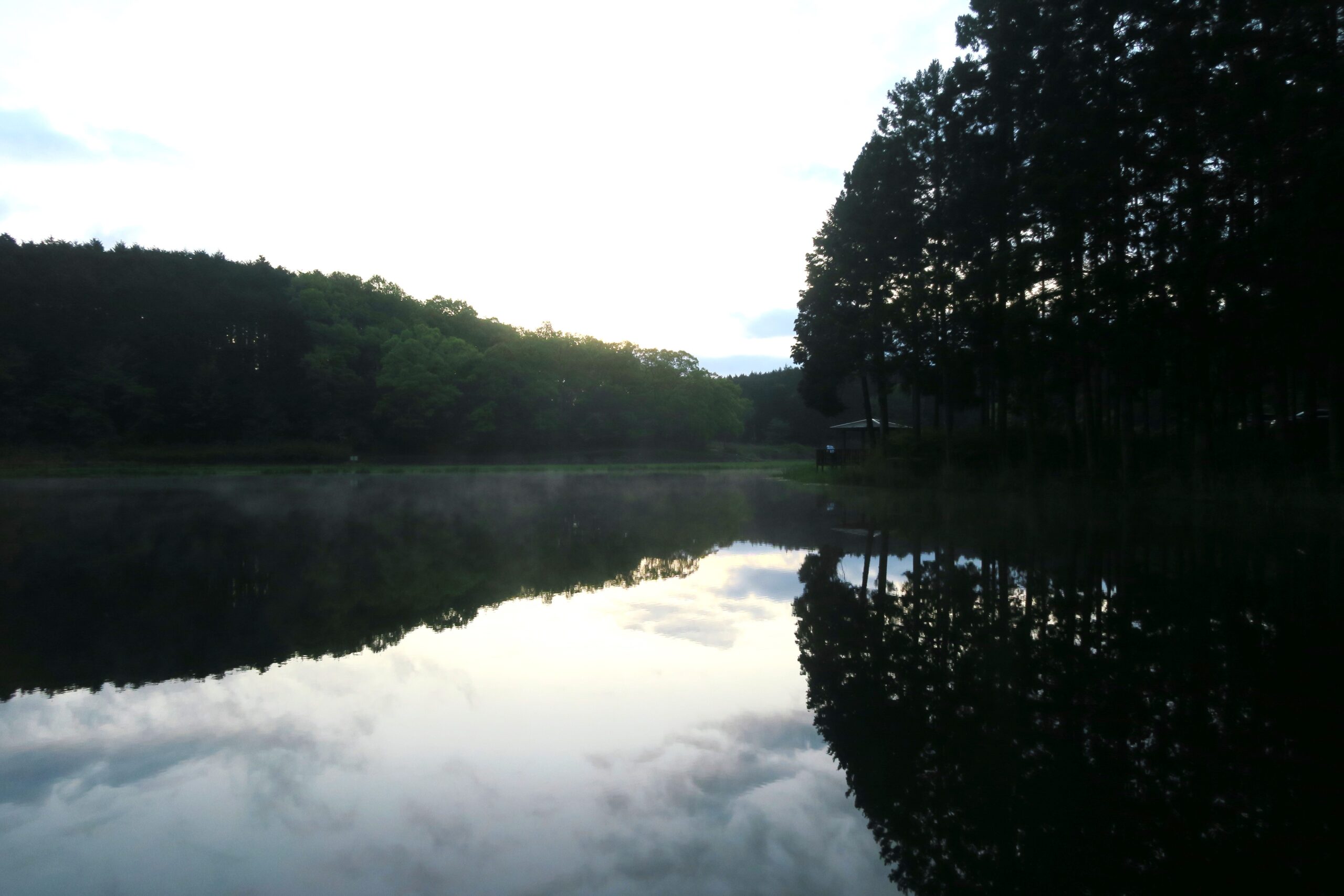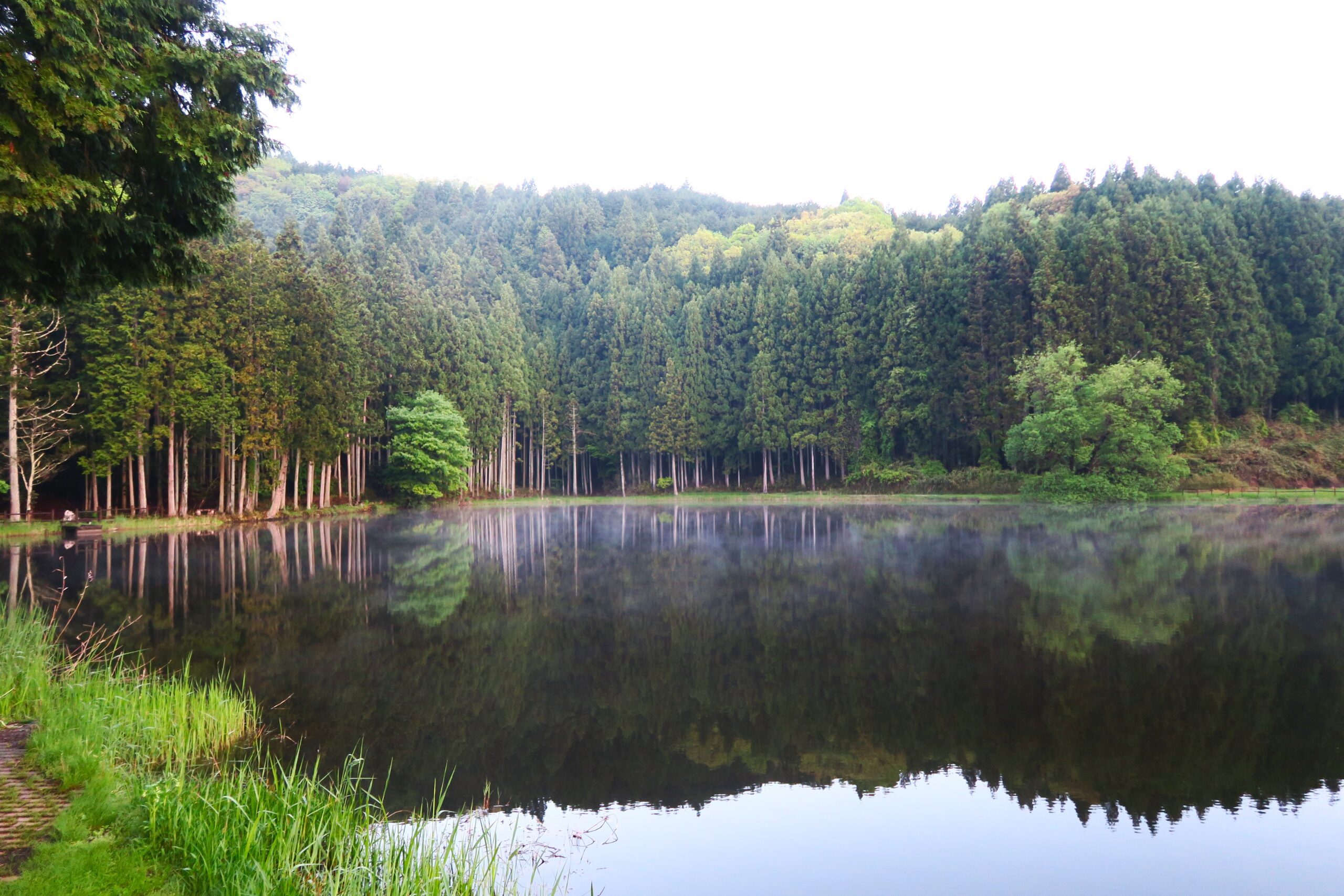 しんと静まりかえった空気の中、湖面が周囲の風景を映し出す水鏡の景色は、水面に朝霧が立ち込み神秘的です。池の周囲には遊歩道があり、龍の気配を感じながらゆっくりと歩いてみます。