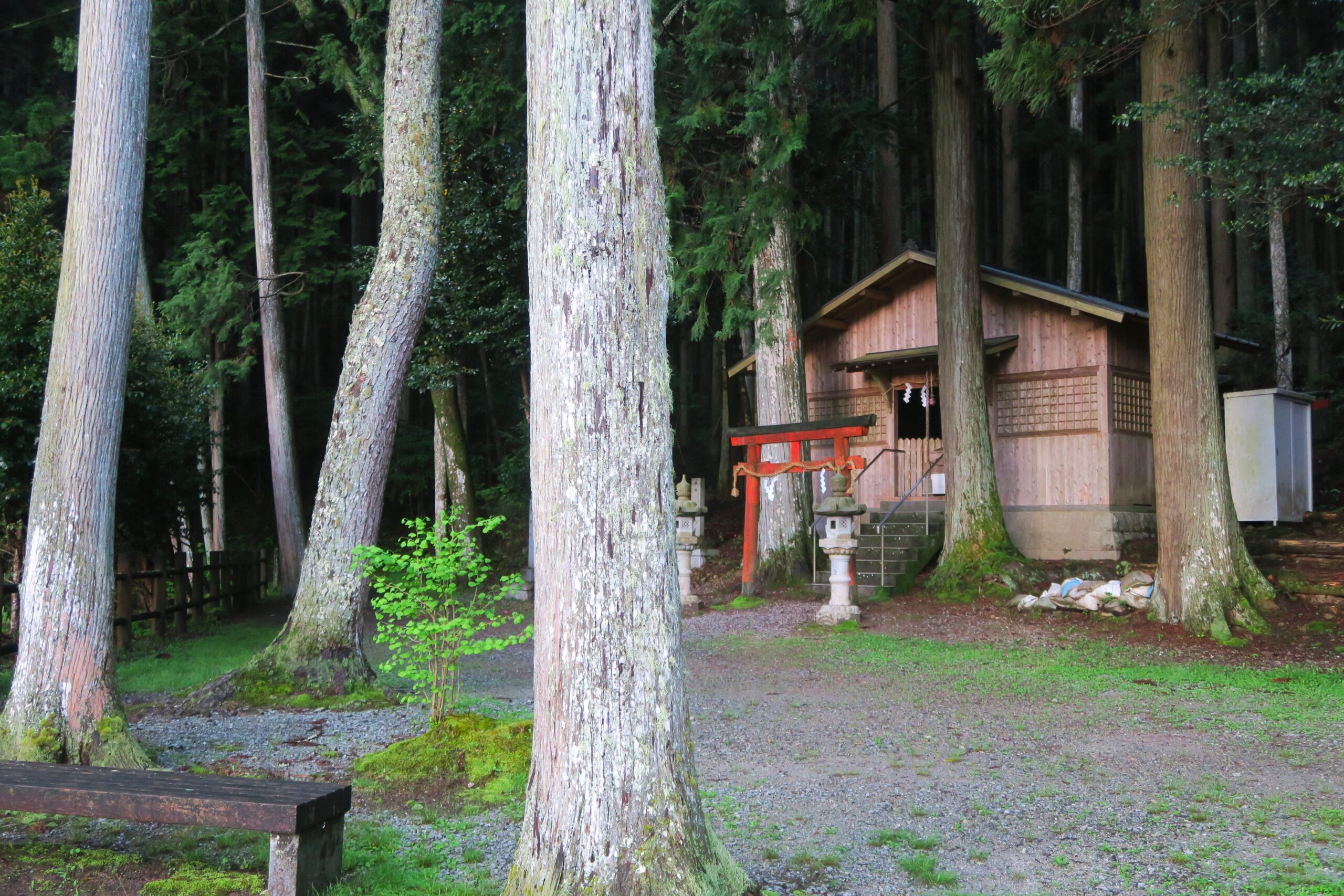 龍鎮神社は、同じ宇陀市にある海神社が雨乞い祈祷の為に、約500年前の安土桃山時代に創建した境外摂社と伝えられていますが、その前から神聖視されていたようです。境内には川を挟んで拝殿と本殿があり、ご祭神は高龗神です。ダムができてアクセスがよくなりましたが、もとは人の侵入を拒むかのような山奧の秘境に存在し、祈祷を行う聖域にはうってつけの場所でした。この龍鎮神社の祈雨行事とは、古の人々が村人挙って参拝し、壷かえと称して、滝壺の水を汲みだす行事を行い、日没を待って古大野岳の峰上へ松明を持って上り、頂上に祀る善女龍王に降雨を祈願します。そして下山しては海神社に勢ぞろいし、いさめ踊りを奉納して祈雨の神事を奉祀するのが恒例と伝わります。