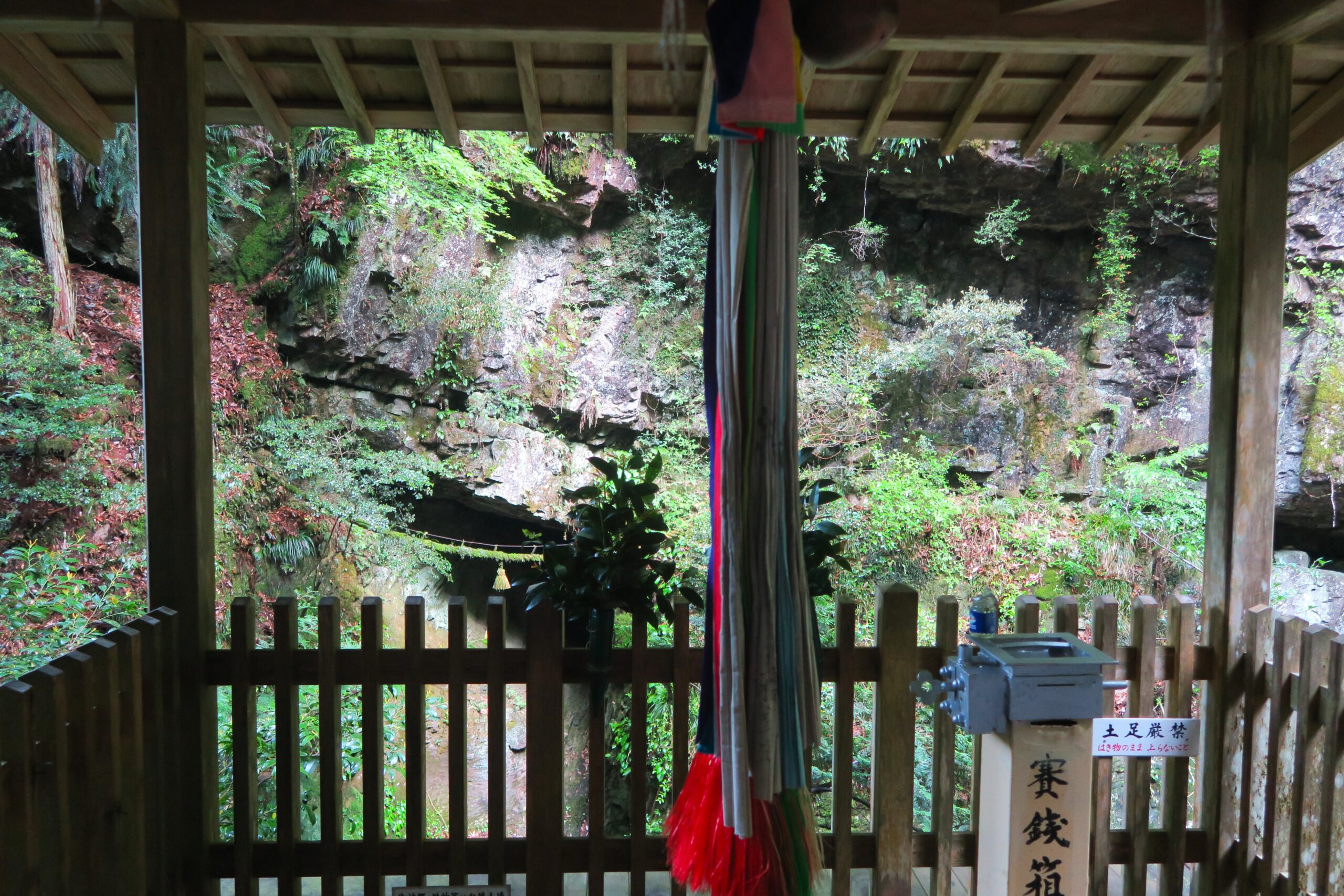 ご神体の妙吉祥龍穴は日本三大龍穴(京都・貴船神社奥宮と岡山・備前龍穴)のひとつで、実際に目にすることのできる龍穴はここだけです。神社から県道28号を400m、さらに林道を800m(車で約6分、徒歩約30分)ほどの渓谷の中に同社の奥宮として祀られています。室生には、総じて「九穴八海」と呼ばれる山々に囲まれた3つの龍穴、6つの岩室、3つの池、5つの渕を指す数多く伝承が残り、妙吉祥龍穴もそのひとつですが、途中には6つの岩室のひとつ天の岩戸があります。天照大御神が籠った伝承が伝わる日本神話でも有名な岩戸。室生龍穴神社の裏手側に現在も残る巨石です。真ん中から綺麗に割れている巨石で、間に立つとその大きさに圧倒されます。
