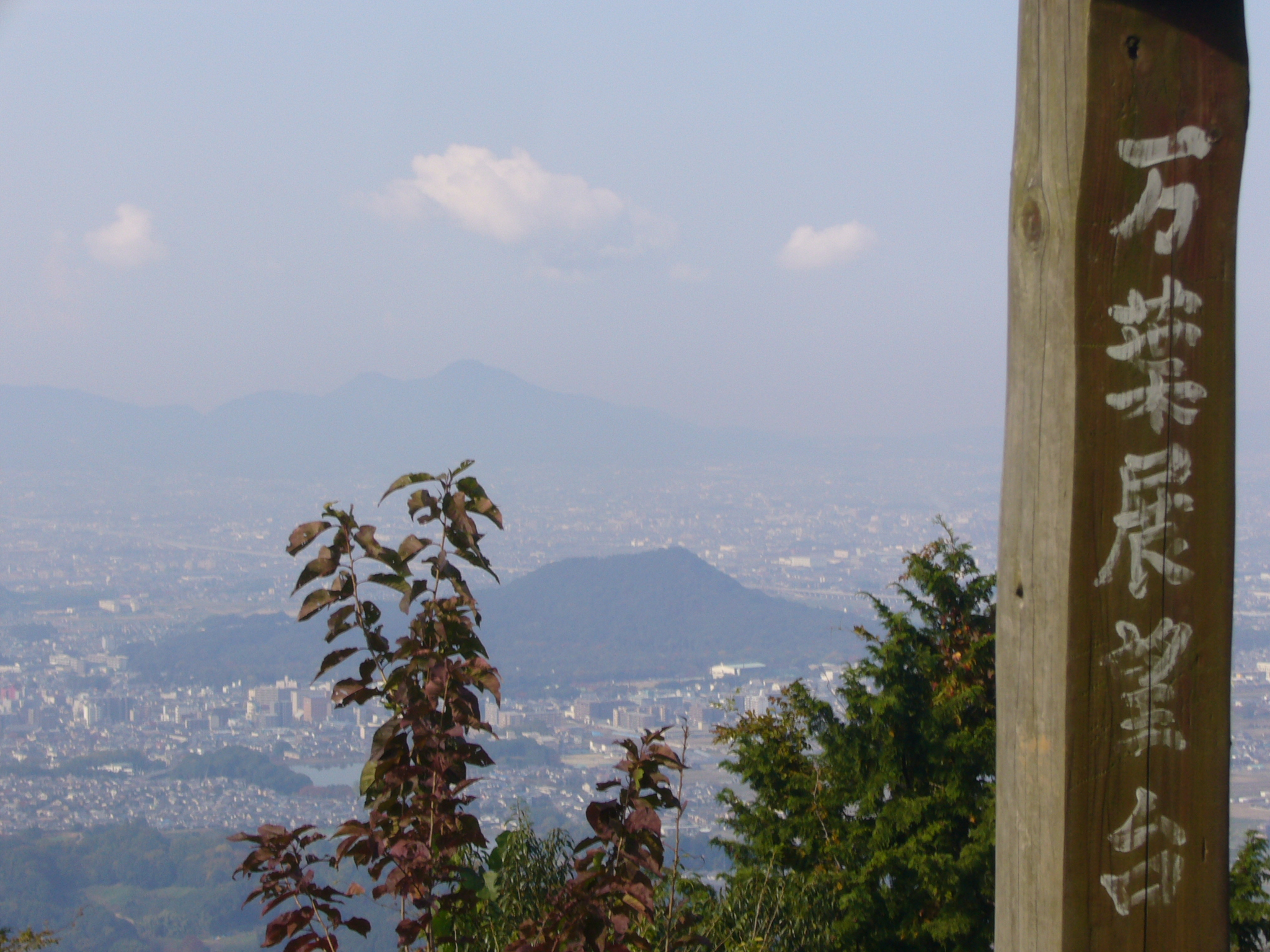 音羽山(852m)「万葉展望台」からはまほろばの国大和、大和三山はもちろん、飛鳥の里も眼下に広がるパノラマを一望でき、遠くに金剛山・葛城山・二上山なども見えます。最高のビューポイントを満喫しながらここで昼食をとることにします。万葉集では倉橋山と呼ばれていて、「梯立の倉橋山に立てる白雲見まく欲り我がするなへに立てる白雲」万葉集:作者不明の旋頭歌ひとつ