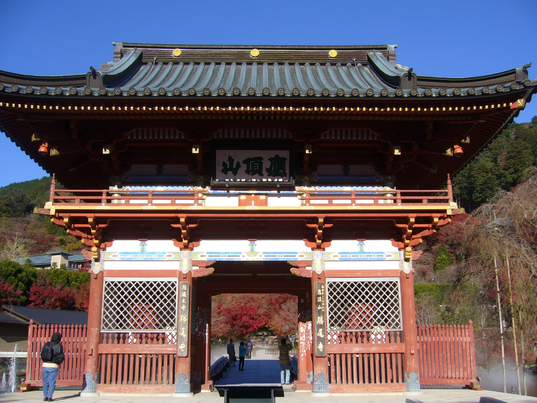 入山料400円を払い山門をくぐると約8万坪の境内に紅葉が真っ盛りである。王に勝つ寺として清和帝が勝王寺と号した「勝尾寺」は源氏・足利氏等各時代の覇者達が当山に勝ち運を祈り、以来「勝運の寺」「勝ちダルマの寺」として勝運信仰の歴史をたどっている。