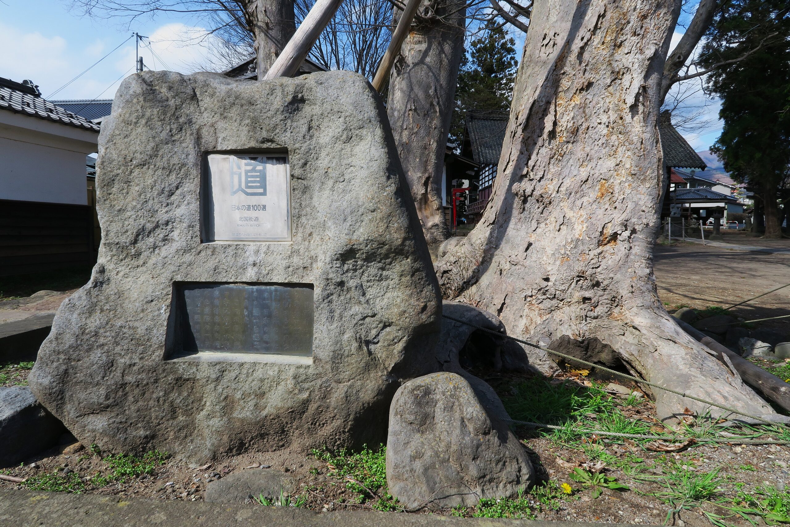 まずは海野宿の産土神である「白鳥神社」境内近くの駐車場に停める。海野宿の東端に位置し、戦国武将真田氏、そして真田氏の祖とされる豪族。海野氏の氏神。「源平盛衰記」に記される木曽義仲挙兵のくだりにあることから、すでに平安時代にこの地に鎮座していたとされます。社叢は神社の歴史を物語り、拝殿前の中央にあるけやきの御神木は樹齢七百年を超え、胸高周囲5.8m、樹高30mにもおよぶ大木。けやき、杉など大木が生い茂り鎮守の森になっている。毎年4月の例祭には街道に12本の大のぼりが立ち並ぶなど、昔ながらの風習が今も受け継がれている。拝殿は明治14年(1881)、本殿は寛永3年(1791)築。寛永元年(1624)真田信之により松代舞鶴山へも分祀されています。