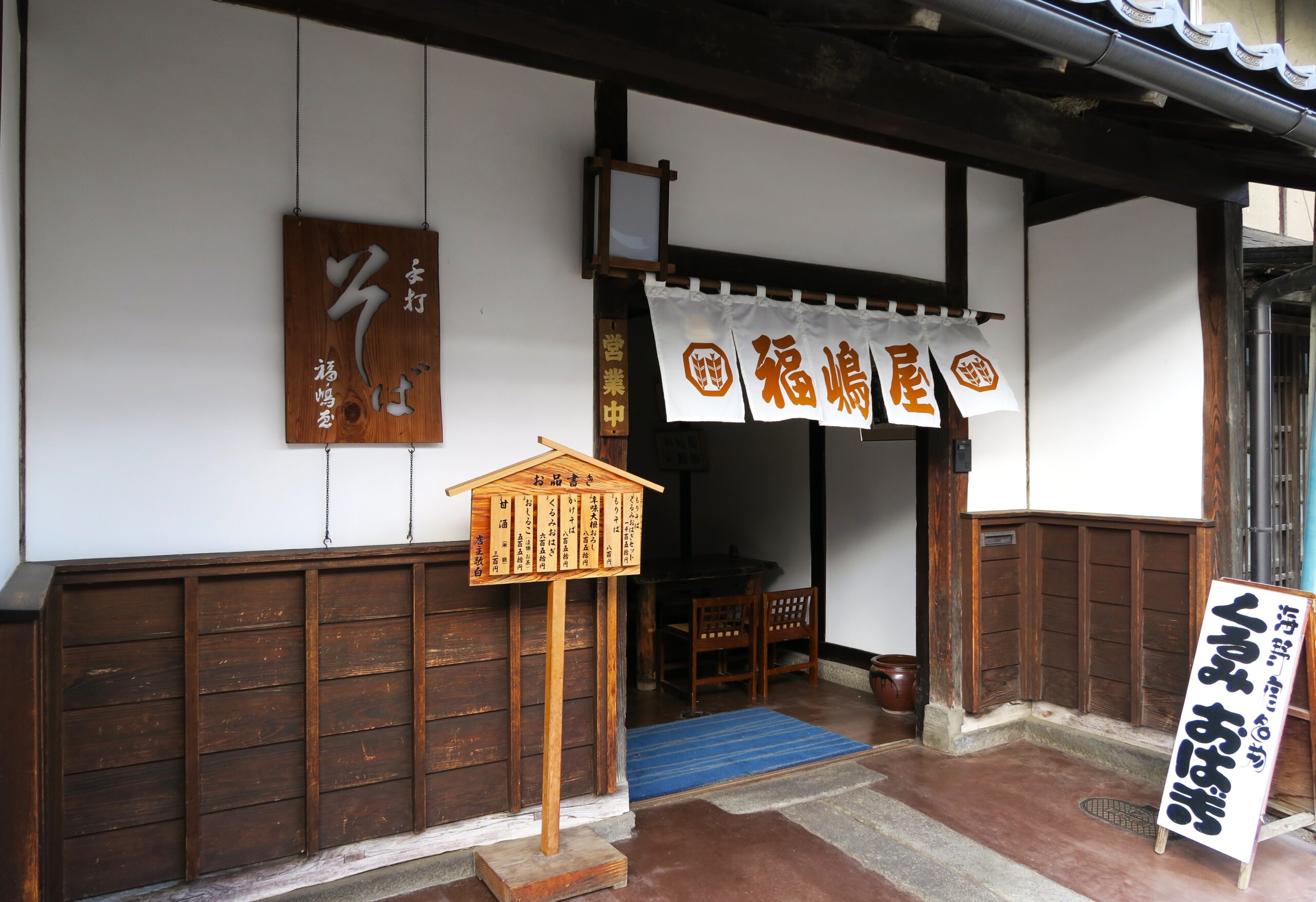 歩き始めてすぐ、右手におはぎとくるみそばの店“福嶋屋”と左手にはくるみそばの店“かじや”がある。福嶋屋は石臼挽きで、こだわりの二八そばを出してくれる店。そばと一緒に食べたのが、くるみ醤油ダレと大根おろしの二種類がある手作りのおはぎ。大根おろしは、砂糖と隠し味の塩がきいていて、びっくりするほどまろやか。自家製の奈良漬、カミナリと呼ばれるお惣菜も美味しい。