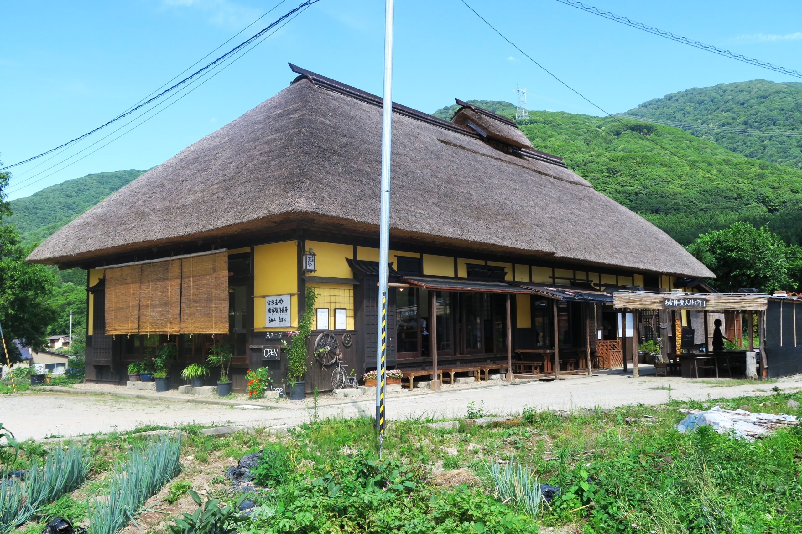 大内宿駐車場からすぐのところにあるカフェ「分家 玉屋」は、会津若松や会津美里の古民家、寺の古材を移築。器に会津本郷焼を使う他、地の食材をいかしたスイーツが充実しています。下郷のホオズキを使うケーキはフルーツトマトのように甘酸っぱく、福島市の加藤ファームの玄米粉で作るお米ロールはふんわり。会津若松の高橋庄作酒造店の酒と酒粕を使ったお酒ケーキも考案。