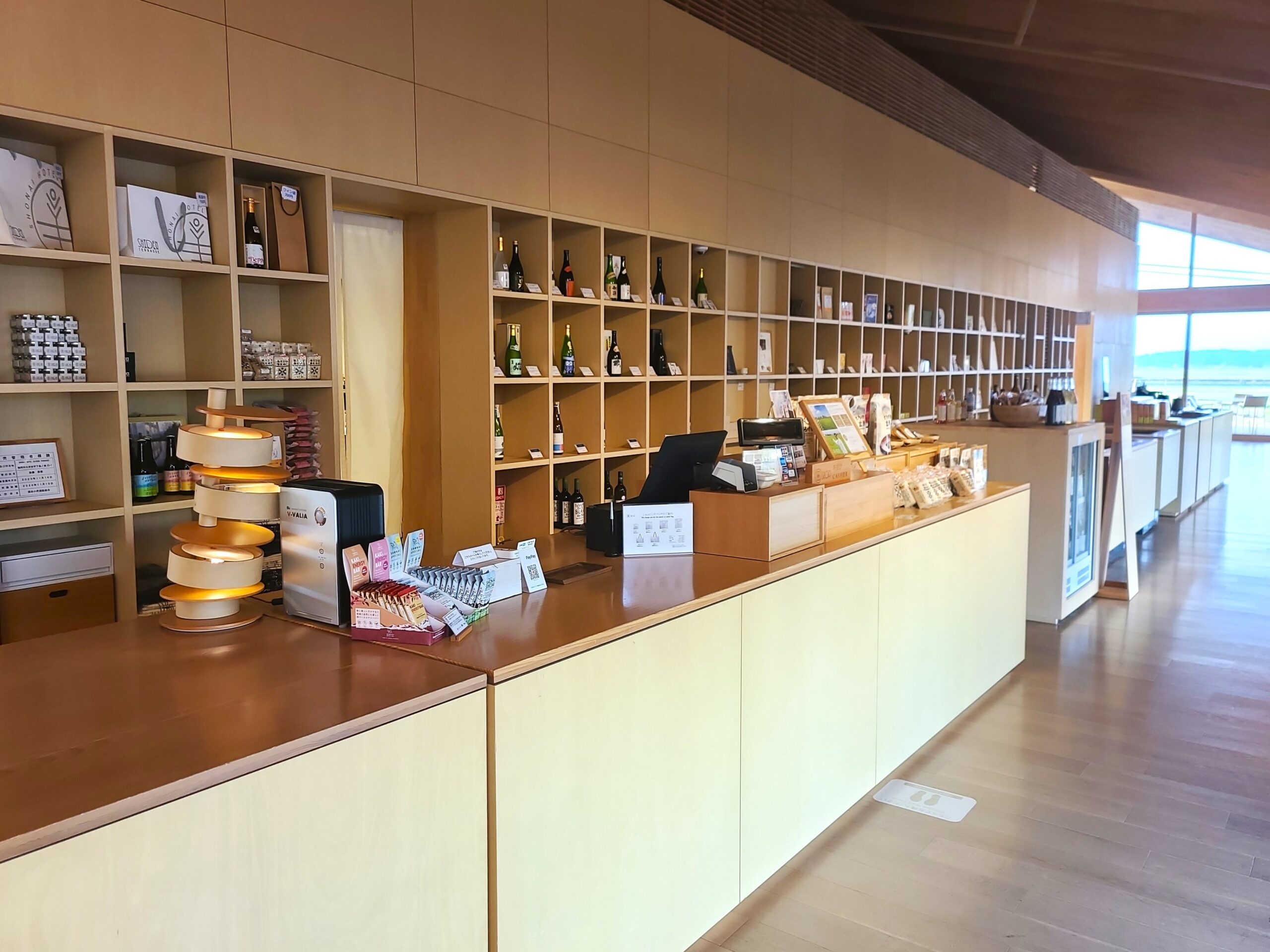 フロントを挟んで奥には右手にSHOP左手にLIBRARYがあります。SHOPでは、お土産探しにぴったりの山形庄内の風土が育んだこだわりの品を紹介していています。海、山、川、平野など豊かな自然に恵まれ、食の宝庫として知られる山形庄内で、この地ならではの「おいしいもの」のセレクトSHOPです。また食品以外に伝統工芸のクラフト作品、器などの日用品といったデザインがおしゃれなものも取り揃えています。