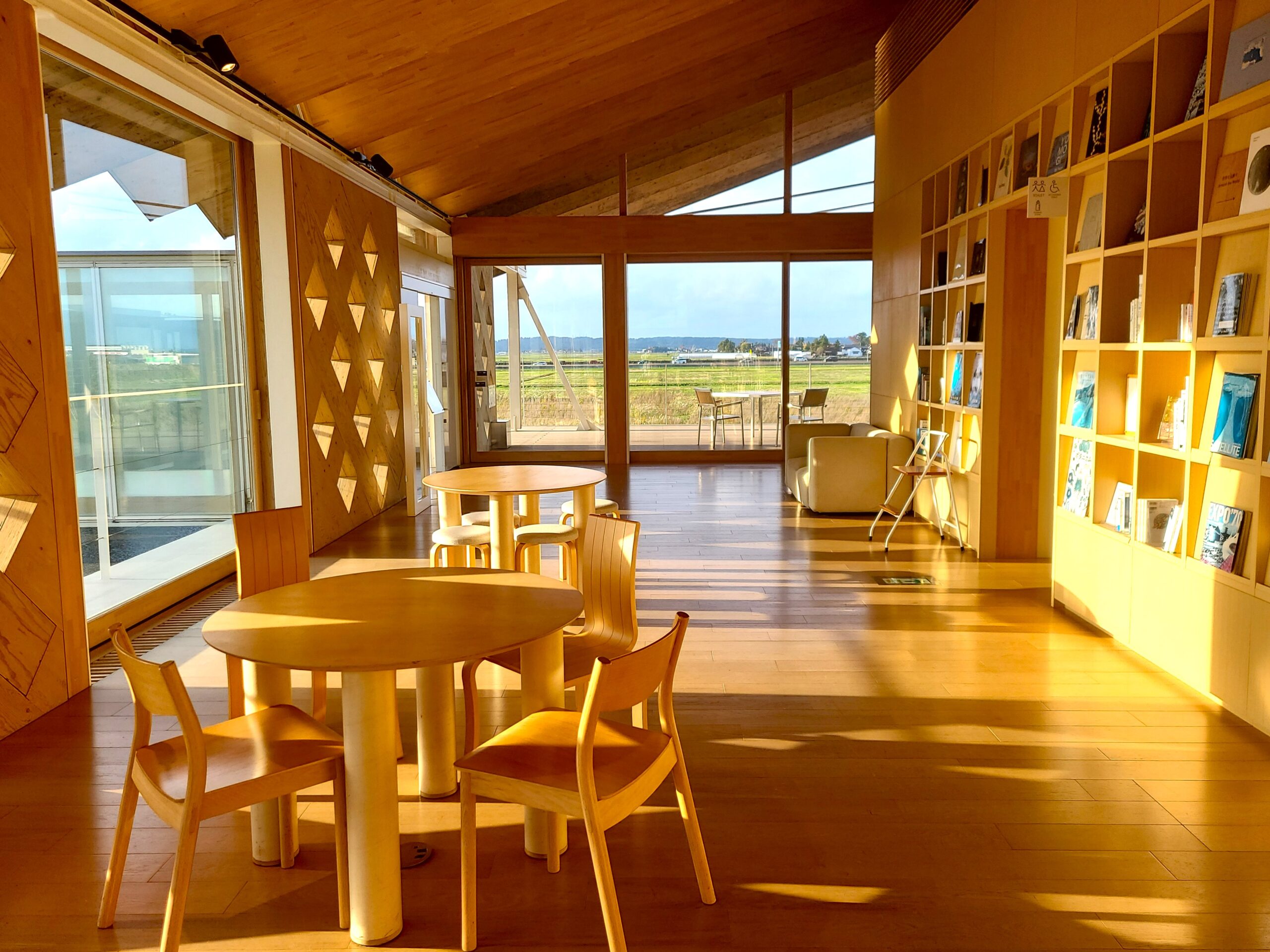 スイデンテラスには、2つのライブラリーがあり、2000冊の中からピンとくる本を手に取って、晴耕雨読の時を過ごします。誰でも利用できる共用棟ライブラリーには、10のテーマを元に並ぶ約1000冊の本棚があり、その先には、一面に広がる田園風景。開放的で心地よい空間で読書を楽しむことができます。