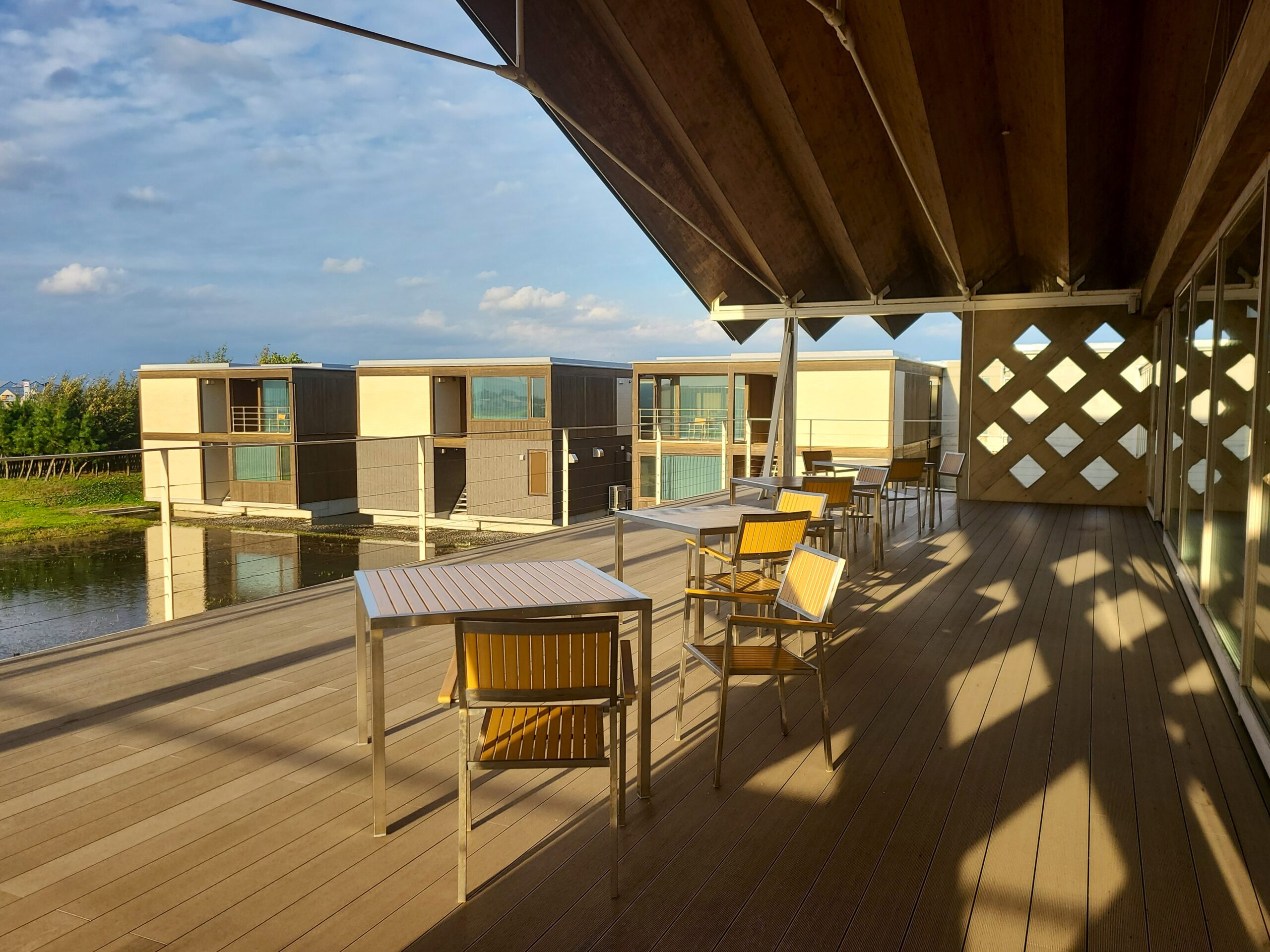 山形県鶴岡市にあり、JR鶴岡駅からタクシーで10分、車の場合は鶴岡ICから約10分のところに田園風景と調和し、田んぼに浮かぶように建つSUIDEN TERRASSEは、この土地ならではの文脈を紐解き、「空間・本・農・地域・癒」の6つのキーワードで、特別な時間を提供できるよう、木のぬくもりを生かしたシンプルで居心地よい空間に設計されています。設計を手掛けたのは、サスティナビリティを意識した紙管を使った建築で、災害時の復興住宅や静岡県富士山世界遺産センターなどでも知られる建築家 坂 茂氏です。滞在を通して、坂 茂氏による“田んぼに浮かぶホテル”を体感します。