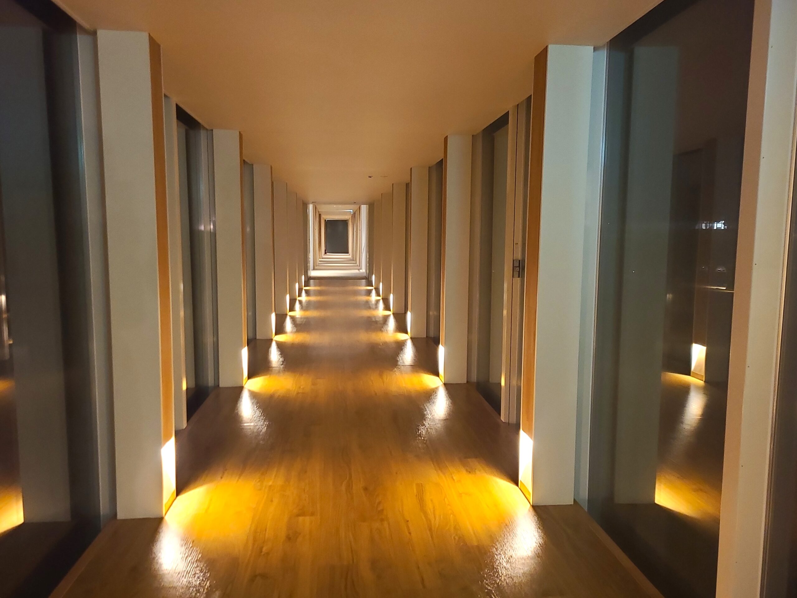 宿泊棟は共用棟の3ヶ所の入口からガラス張りのブリッジで結ばれたデザインの異なるG棟とH棟、Y棟になります。G棟には、浴室、ライブラリー、ラウンジがあります。