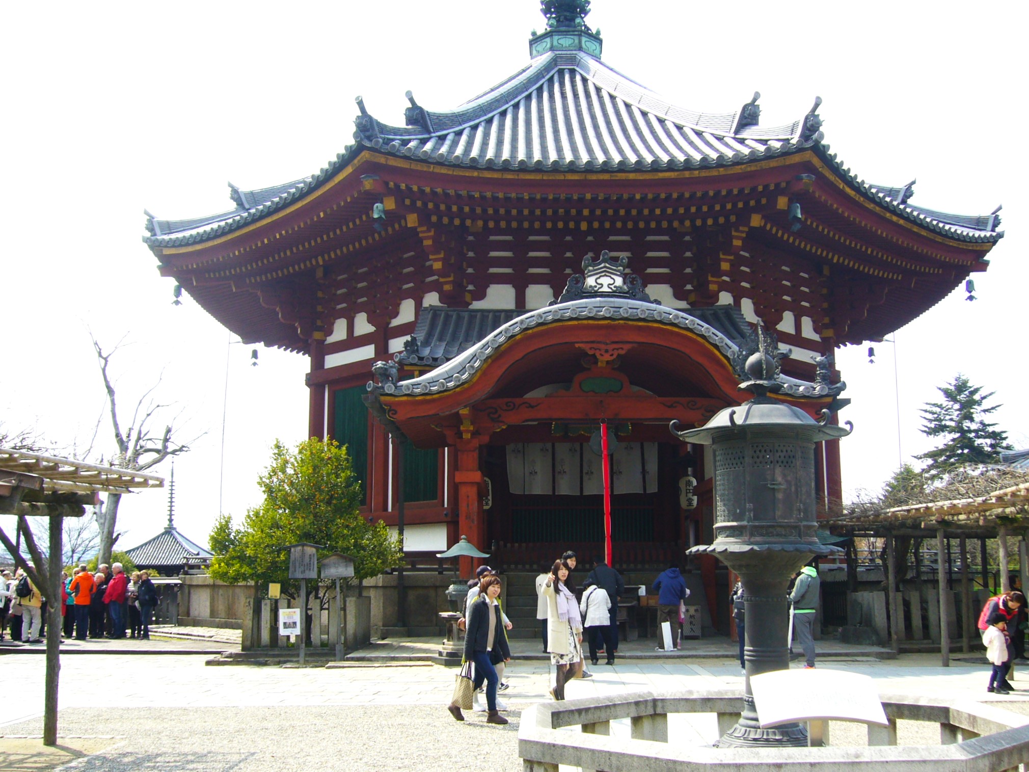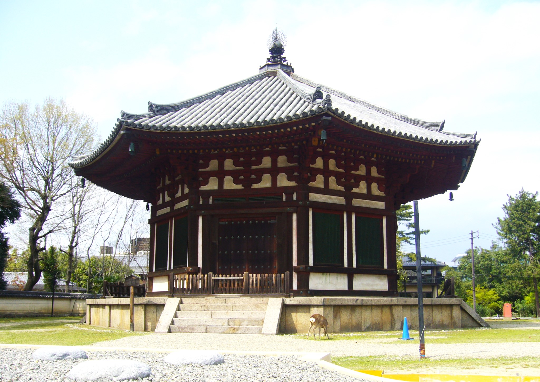 「興福寺」は京都山科の藤原鎌足の私邸に藤原鎌足婦人・鏡王女が創建した山階寺が始まりで、飛鳥藤原京では厩坂寺、和銅3年(710)平城京遷都に伴って遷都をリードした藤原不比等は自らの氏寺を現在の場所に移築し「興福寺」と名付けました。氏寺として藤原氏の勢力拡大と共に寺も繁栄、最盛期には175を超える堂塔があったという。平安時代には僧兵を擁し、大和国を支配して比叡山延暦寺とともに「南都北嶺」と呼ばれ畏れられたのでした。「北円堂」は養老5年(721)藤原不比等の一周忌に際し建立されたもので堂々とした八角円堂だが、現在の建物は鎌倉時代の再建です。堂内には運慶の晩年の作である無著・世親菩薩立像などを安置。
