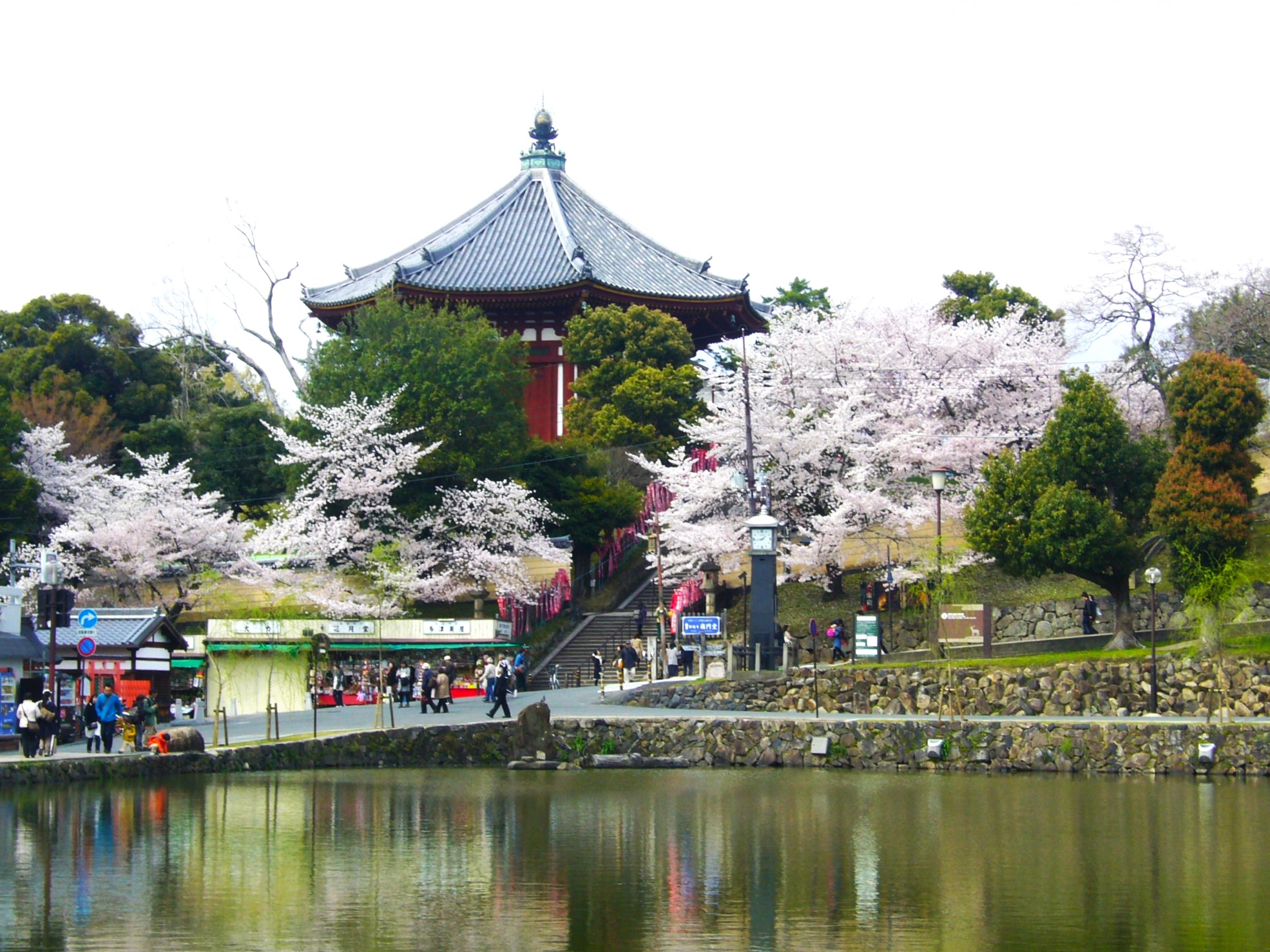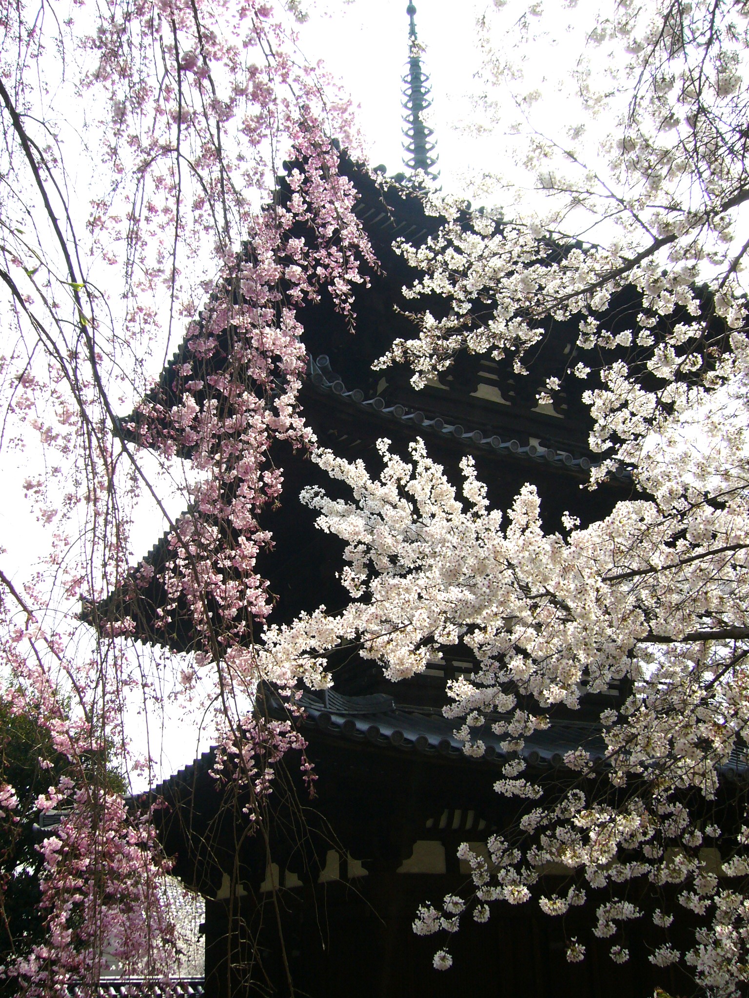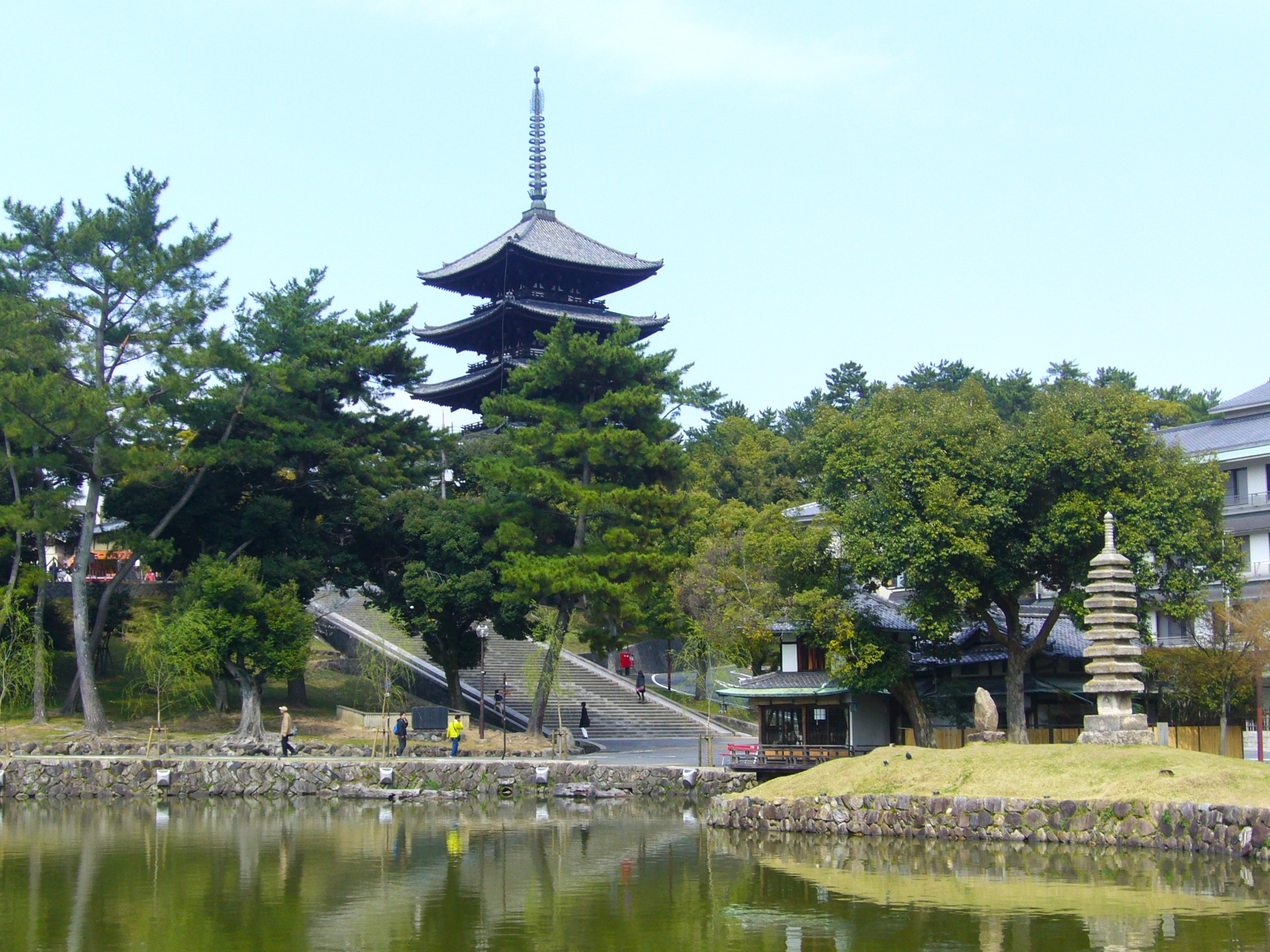 猿沢池への石段を下りる途中の右手に、ひっそりと佇んでいるのが「三重塔」である。目立たない場所にあるので訪れる人も少ないが、北円堂と並び興福寺に現存する最古の建物。興福寺境内には桜は多くないが、桜とマッチして、なかなか繊細で優美な塔です。康治2年(1143)崇徳天皇の中宮皇嘉門院が創建、現在の塔は鎌倉初期に藤原様式で再建されたもので高さは約19mあるらしい。本当にひっそりとしていて猿沢池からも見えない。