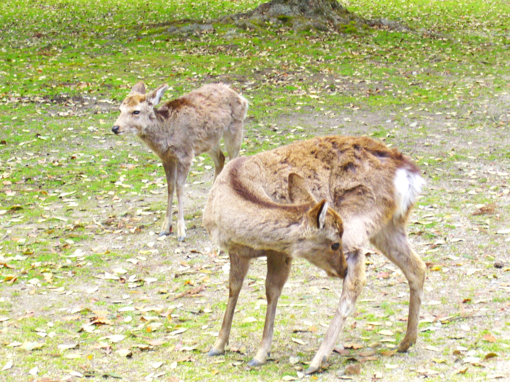 参道に戻り、長い参道を歩いて春日大社に近ずくと右手の鹿苑には神の使いとされる鹿もあちこちに出没し、鹿せんべいの販売スタンドもいっぱいで、このあたりは「飛火野」といいいます。武甕槌命が鹿島から白い鹿に乗って来られ、春日に着いて鹿から降りた場所といわれるのが左手の萬葉植物園近くの「鹿道の辻」。鹿道に着いたのが夜半で足元が暗かったため、お供の八代尊が口から火を出して道明かりとしたところ、火がが消えずに飛び回ったことから「飛火野」という名がつきました。鹿は古から神鹿として崇められ大切にされてきました。