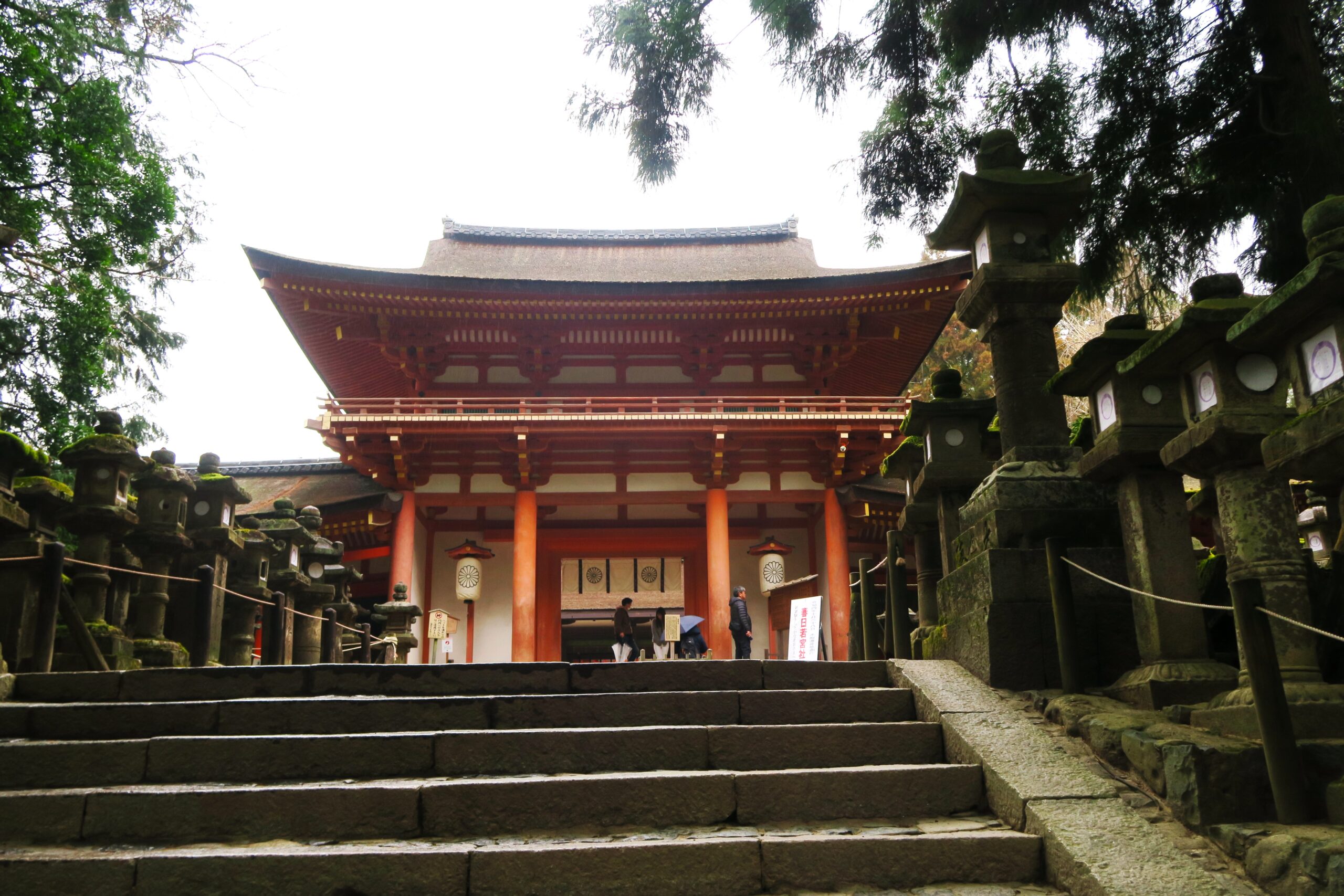 木を大切にする信仰もあって、街に近い立地ながら緑深い春日野と呼ばれる深い森に入り、石灯籠が並ぶ道から二之鳥居から南門をくぐれば本殿もすぐそこです。春日大社には皇室の尊崇も篤く、また庶民の信仰も集めたことから多くの灯籠が奉納されました。奉納された燈籠が石燈籠と釣燈籠と合わせて約3000基もあり、日本一燈籠の多い神社です。「一晩のうちに燈籠を間違えずに全部数え切ったら長者になれる」「“春日大明神”と記された燈籠を一晩で3基見つけたら大金持ちになれる」といった燈籠にまつわる言い伝えもある。